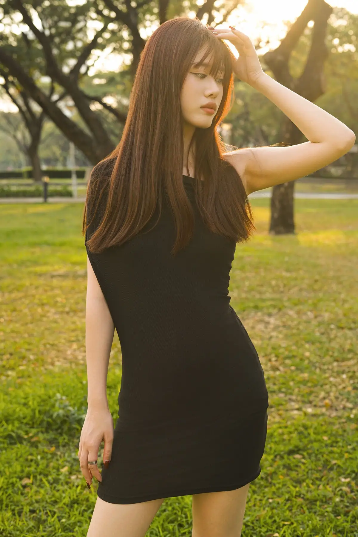 Chenaling_CL Vol.8609: Captivating Elegance in a Black Dress at Golden Hour