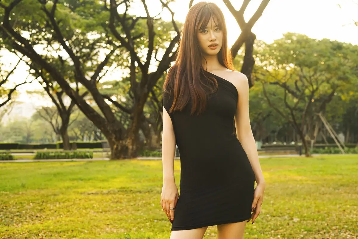 This stunning image from the YiTuYu Vol.8609 collection introduces the captivating muse Chenaling_CL in a truly enchanting moment. She exudes elegance and allure in a form-fitting black mini dress, beautifully accentuating her slender figure and graceful contours. The golden hour sunlight bathes the scene, casting a magical glow that highlights her lustrous long hair and smooth skin. A serene park setting with ancient trees in the background provides a natural, peaceful backdrop, enhancing her rustic yet sophisticated charm. Every detail, from her dreamy gaze to her delicate gesture, speaks a unique art language, inviting viewers to explore emotional depth. This is truly a refined and captivating artistic moment.#ChenalingCL #YiTuYu #BlackDress #GoldenHour #NaturalBeauty