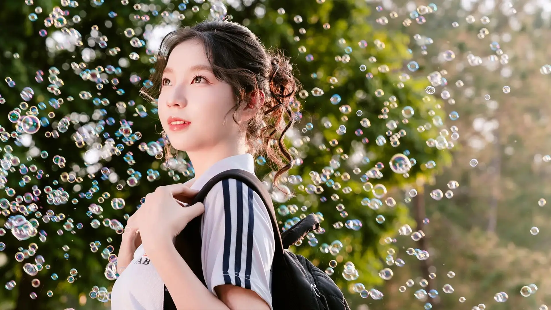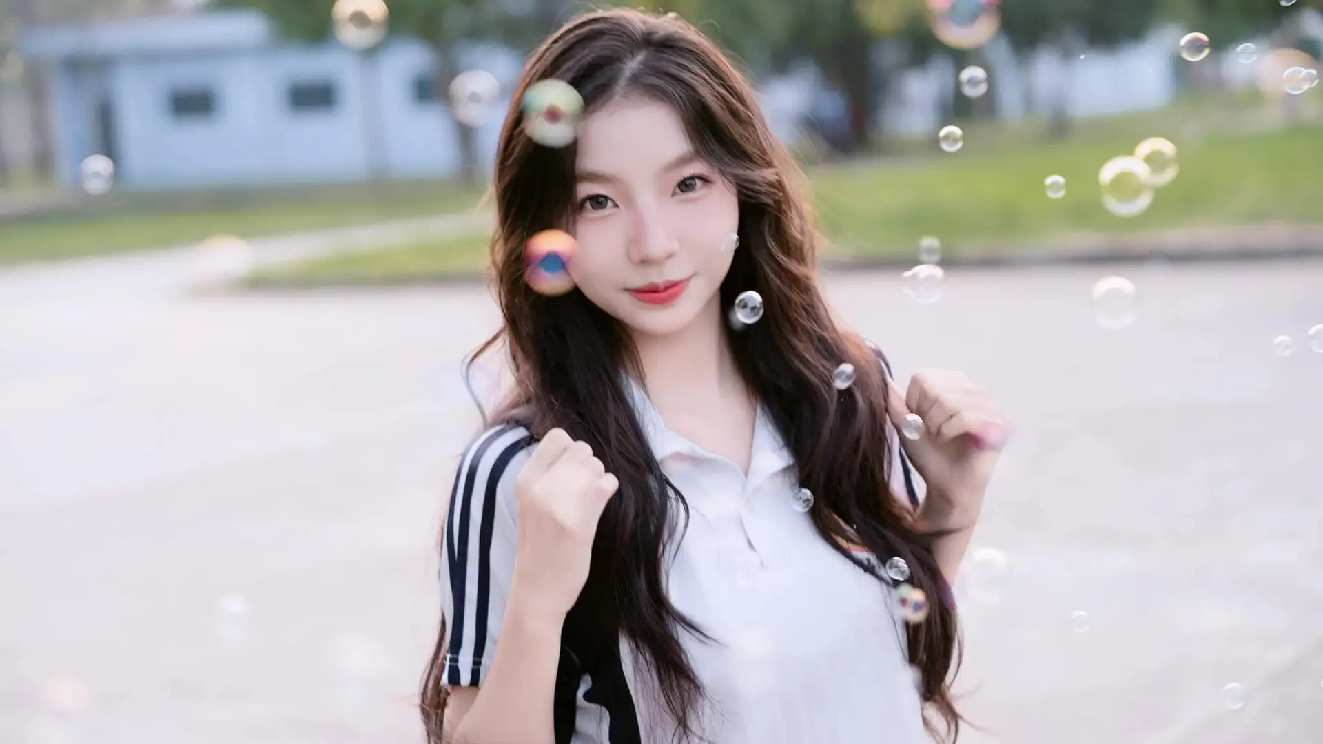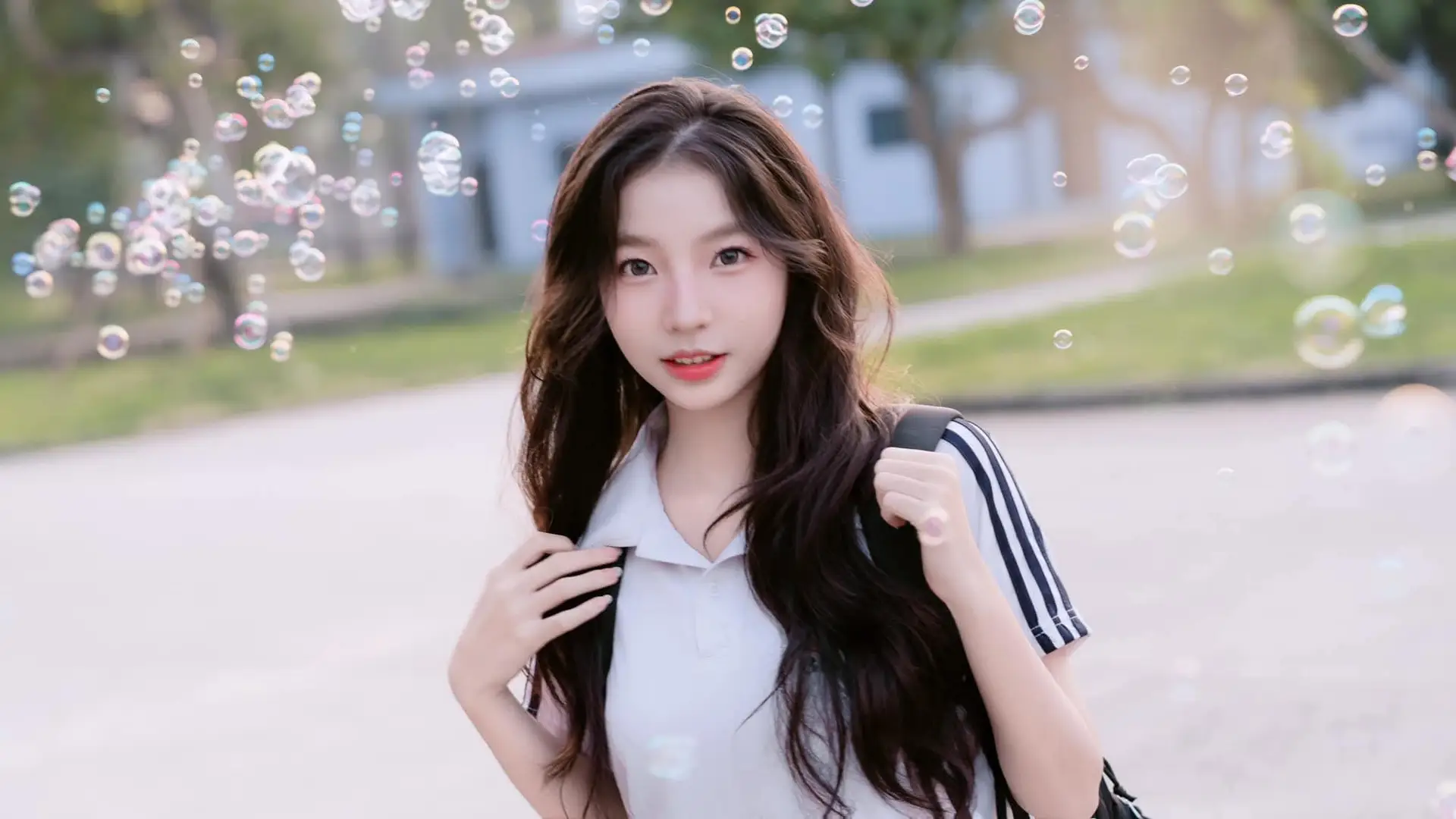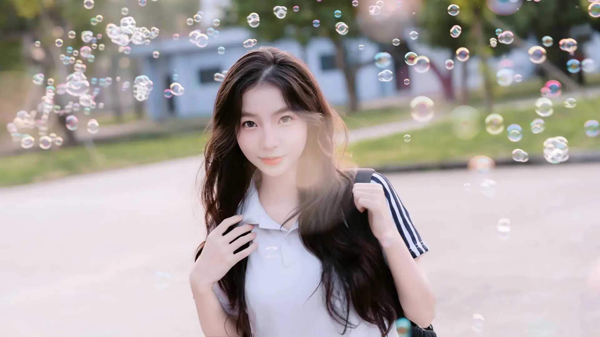 This photograph captures a beautiful moment of a young girl with a radiant smile, exuding the pure and gentle beauty of youth. She wears a pristine white shirt paired with a black skirt, creating a familiar yet captivating school-style look. Soft afternoon sunlight filters through her hair, creating a magical, shimmering effect that further enhances her natural charm. In her hand, she holds a colorful pinwheel, a symbol of innocence, dreams, and cherished childhood memories. This image evokes a sense of peace, freshness, and positive energy, like an invitation to discover the pure and elegant beauty of Vietnamese girls.#VietnameseGirl #YouthfulBeauty #BrightSmile #PinwheelDreams #AsianBeauty #JK #JKUniform