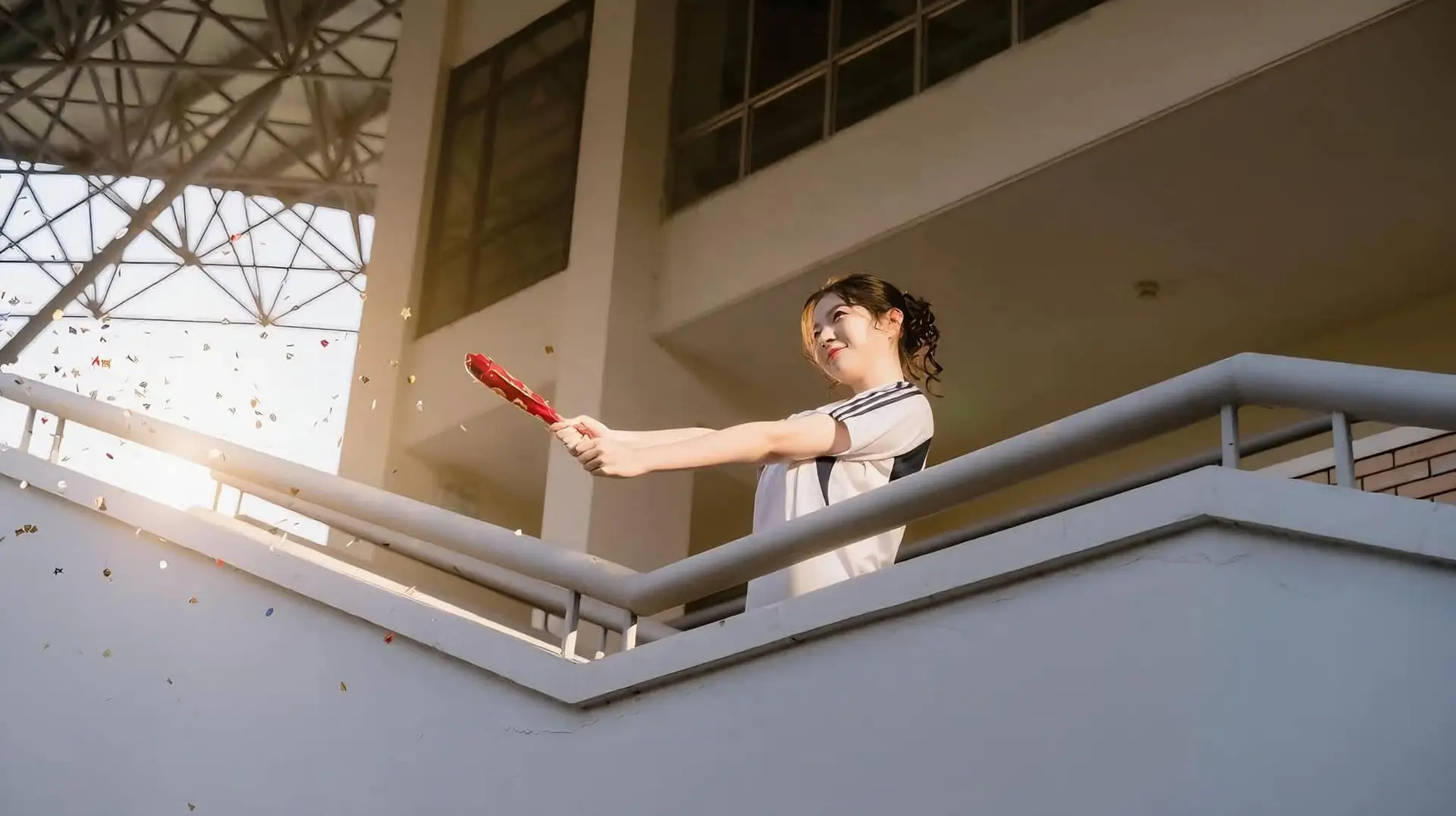 Radiant Youth: Vietnamese Girl's Bright Smile with Pinwheel in Golden Sunlight