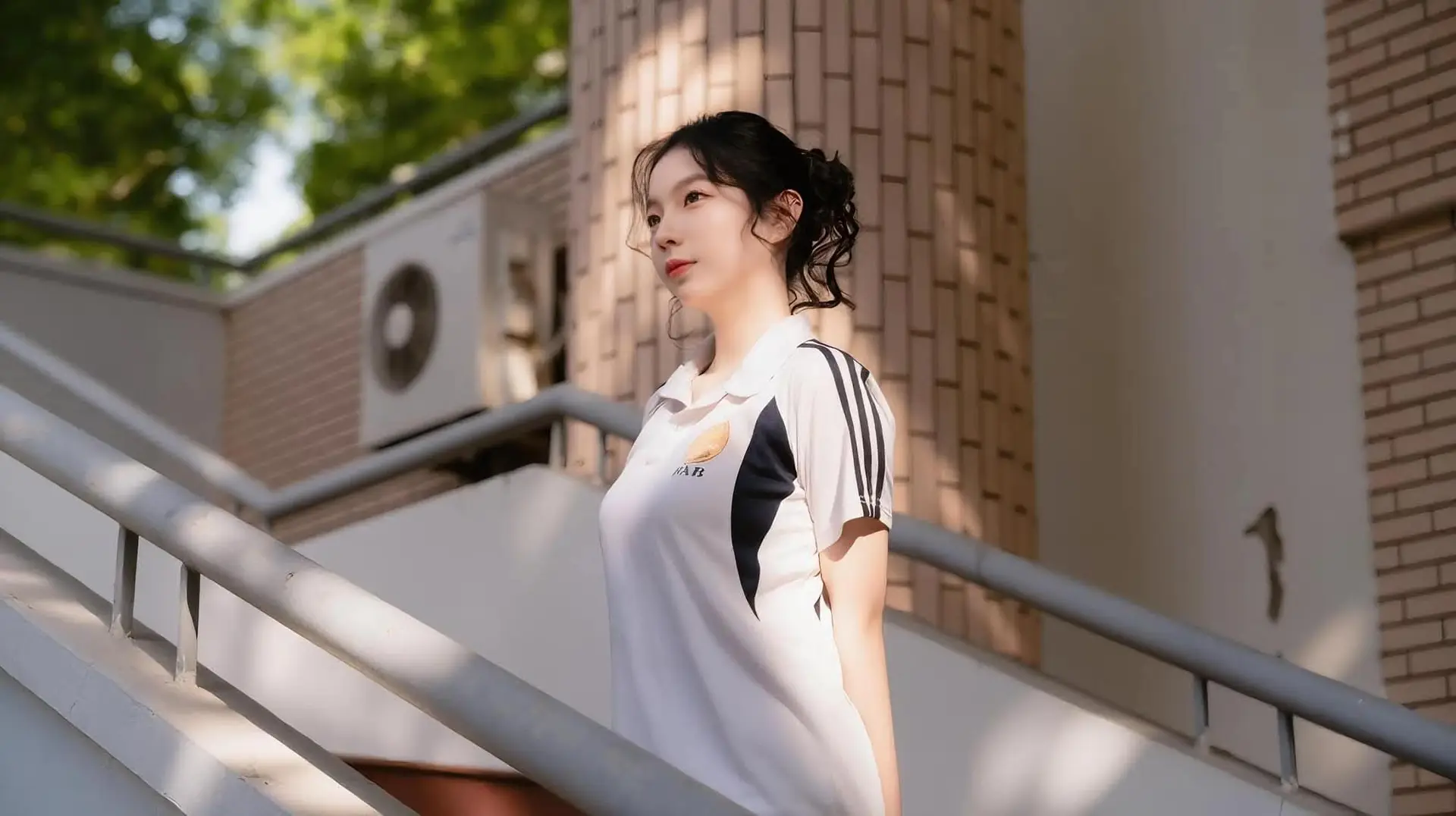 Charming Schoolgirl Embraces Street Style with Classic Uniform.