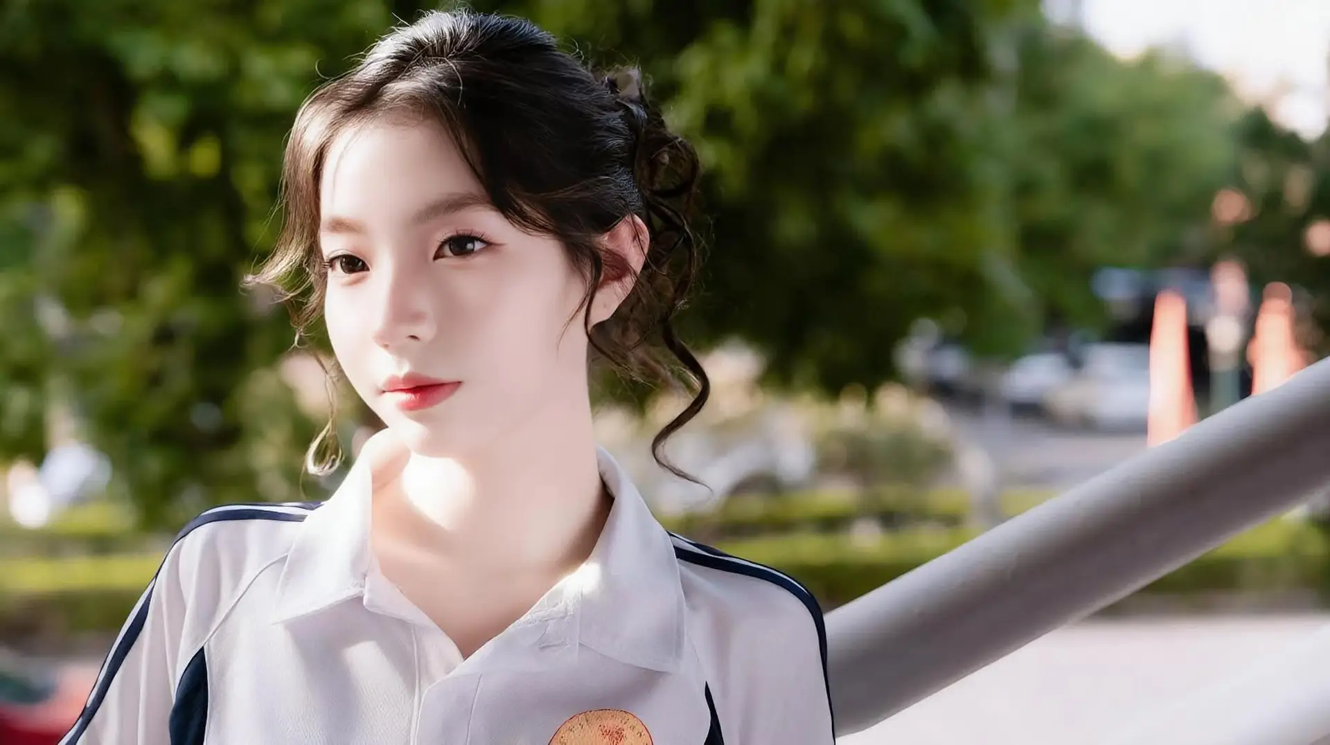 This captivating image portrays a beautiful young schoolgirl in her classic uniform featuring a white shirt and pleated skirt. She exudes a fresh youthful charm effortlessly blending tradition with modern street style elements such as her trendy platform sneakers and knee high socks. Standing gracefully on a bustling city street under the gentle sunlight she appears lost in thought creating a serene moment amidst the urban rush. Her natural beauty and poised demeanor perfectly encapsulate the essence of student life and the dynamic interplay between timeless academic attire and contemporary fashion trends. This snapshot celebrates the simple elegance of youth in an urban landscape.#Schoolgirl #SchoolUniform #StreetStyle #YouthfulBeauty #UrbanFashion #JK #JKUniform
