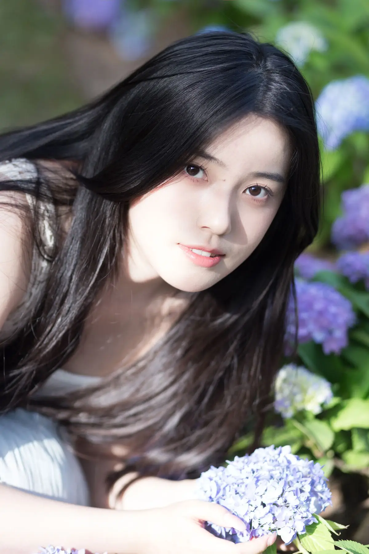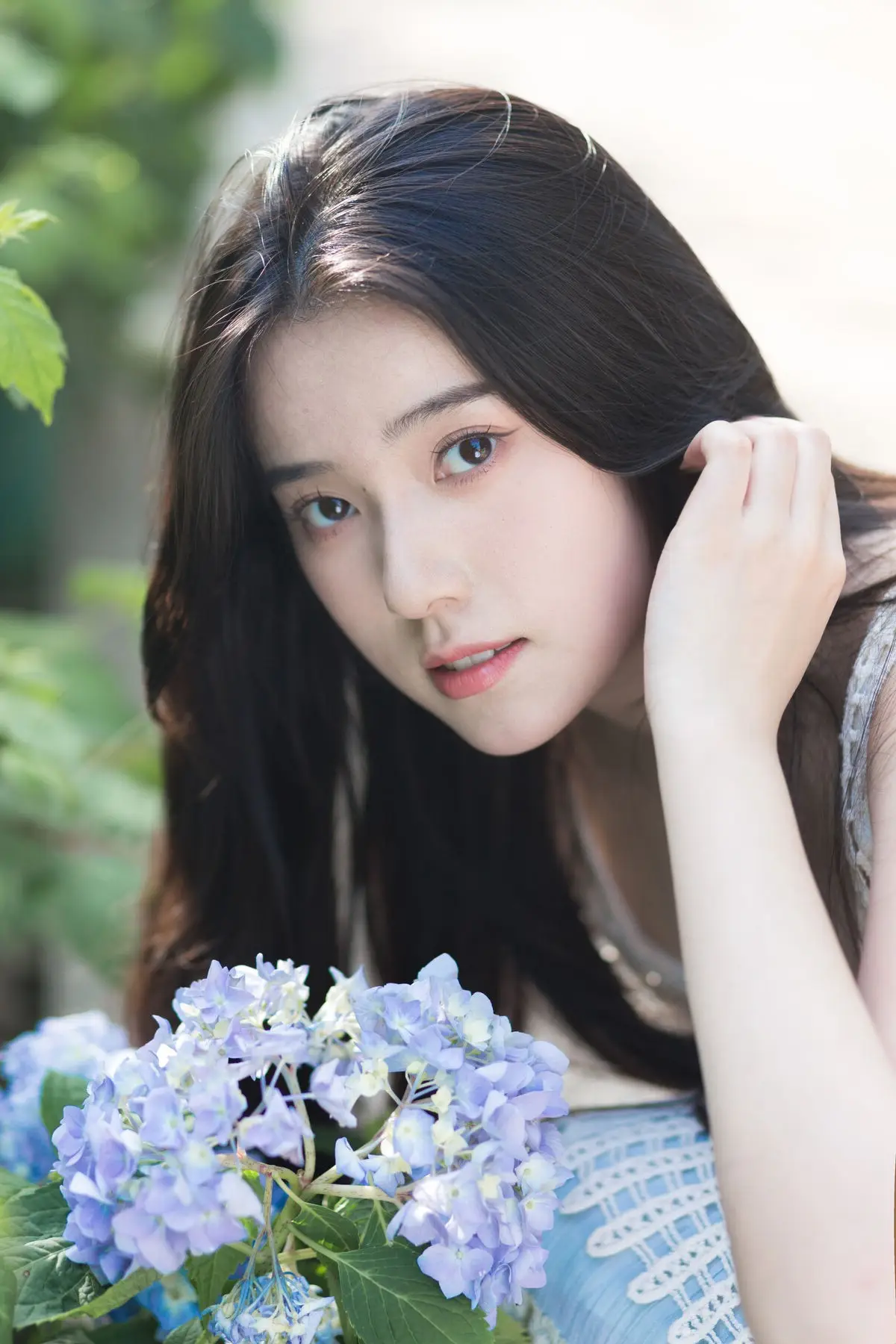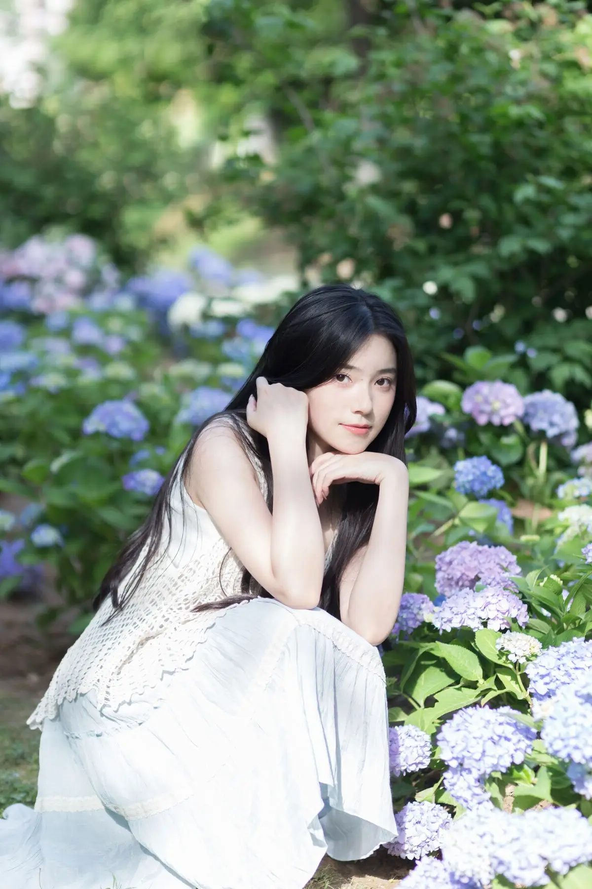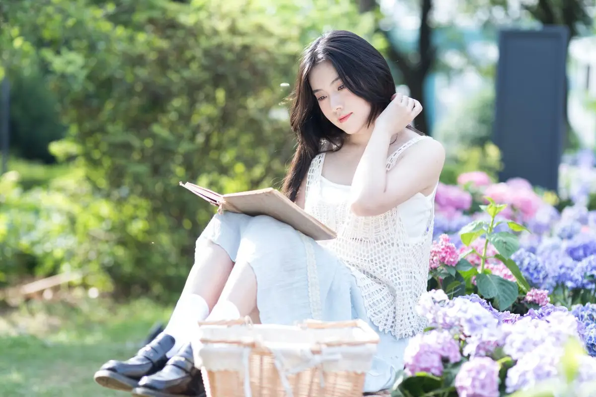 The YiTuYu Vol8624 series beautifully captures Jing Jing Jing as a muse lost in a vibrant hydrangea garden With her long dark hair and eyes gently closed she appears deeply immersed in the serene and pure beauty of nature Her light white dress and relaxed posture on the lush green grass create a harmonious poetic scene Each delicate blue and purple hydrangea bloom surrounds her embracing Jing Jing Jings dreamy and graceful presence The warm sunlight softly caresses her face highlighting her natural pristine beauty This is a tranquil moment where time seems to stand still leaving only the exquisite harmony between human and natural scenery This collection is more than just photographs it is a true work of art a language of genuine and profound beauty#JingJingJing #HydrangeaGarden #NaturalBeauty #AsianModel #YiTuYuArt