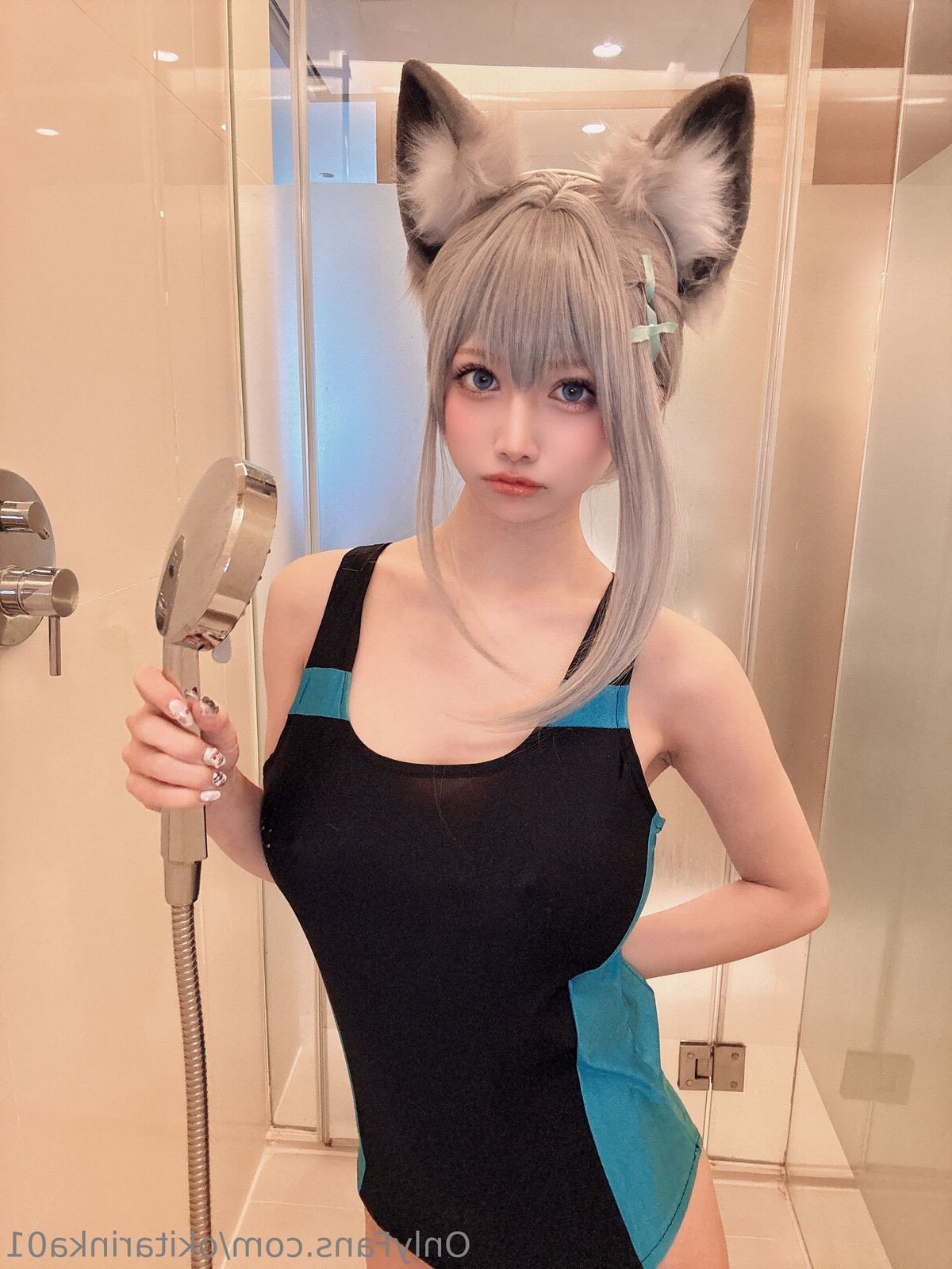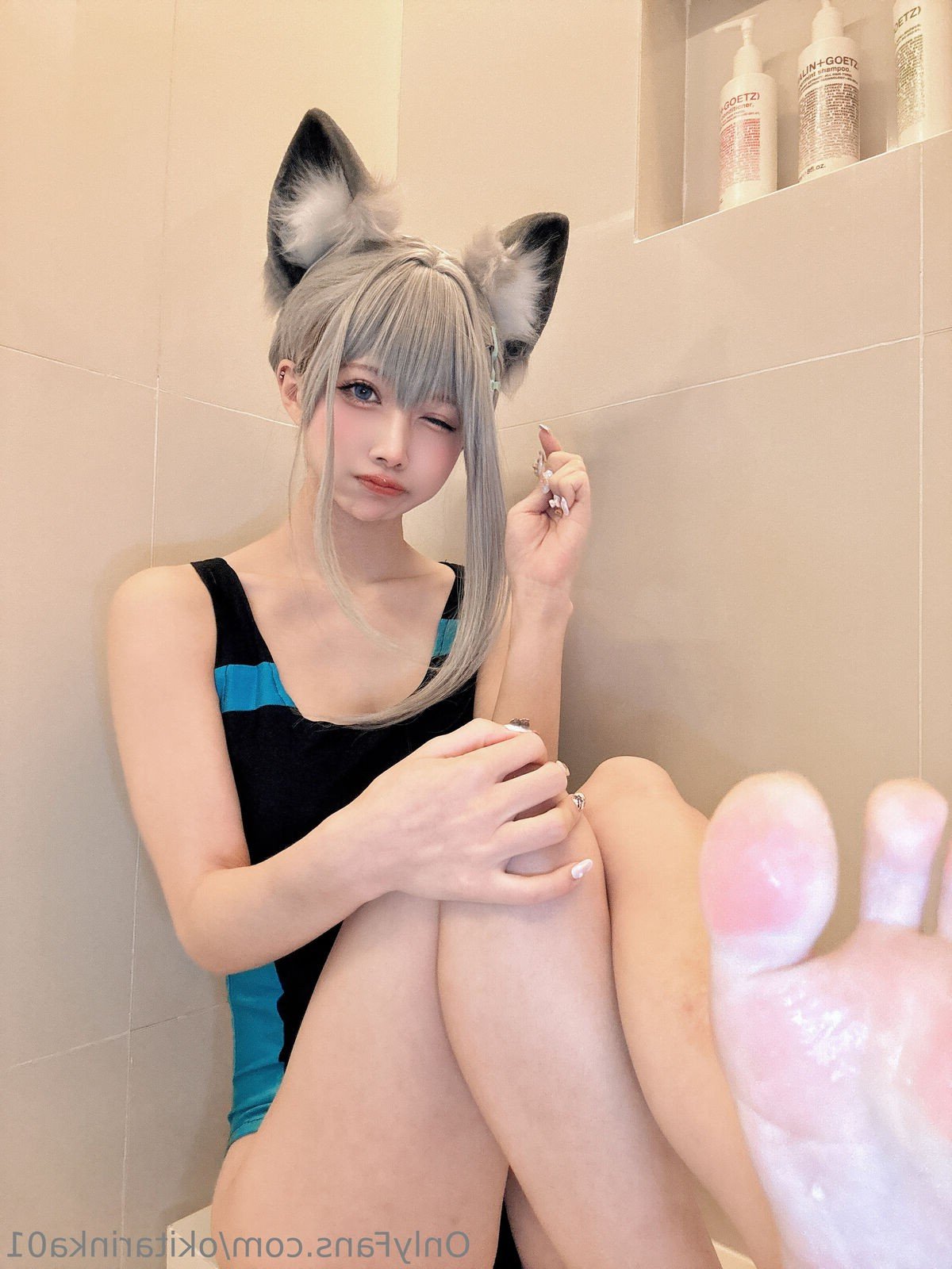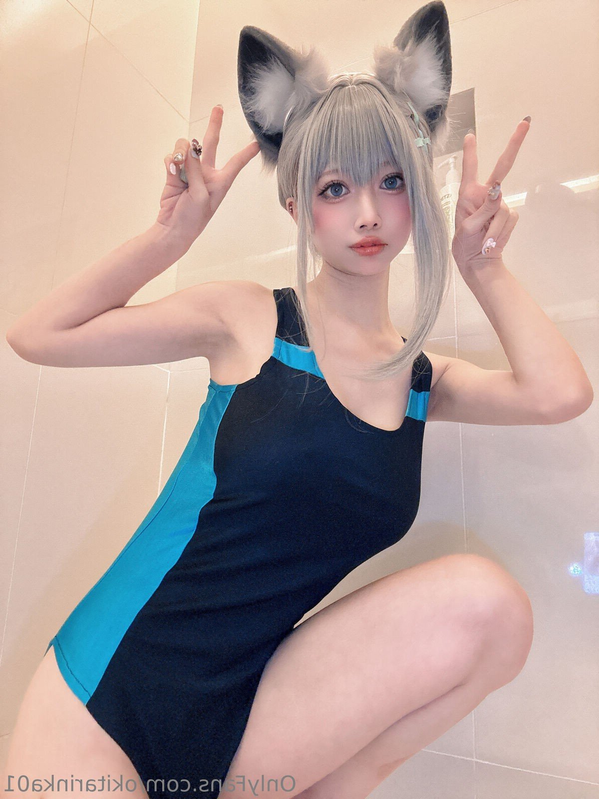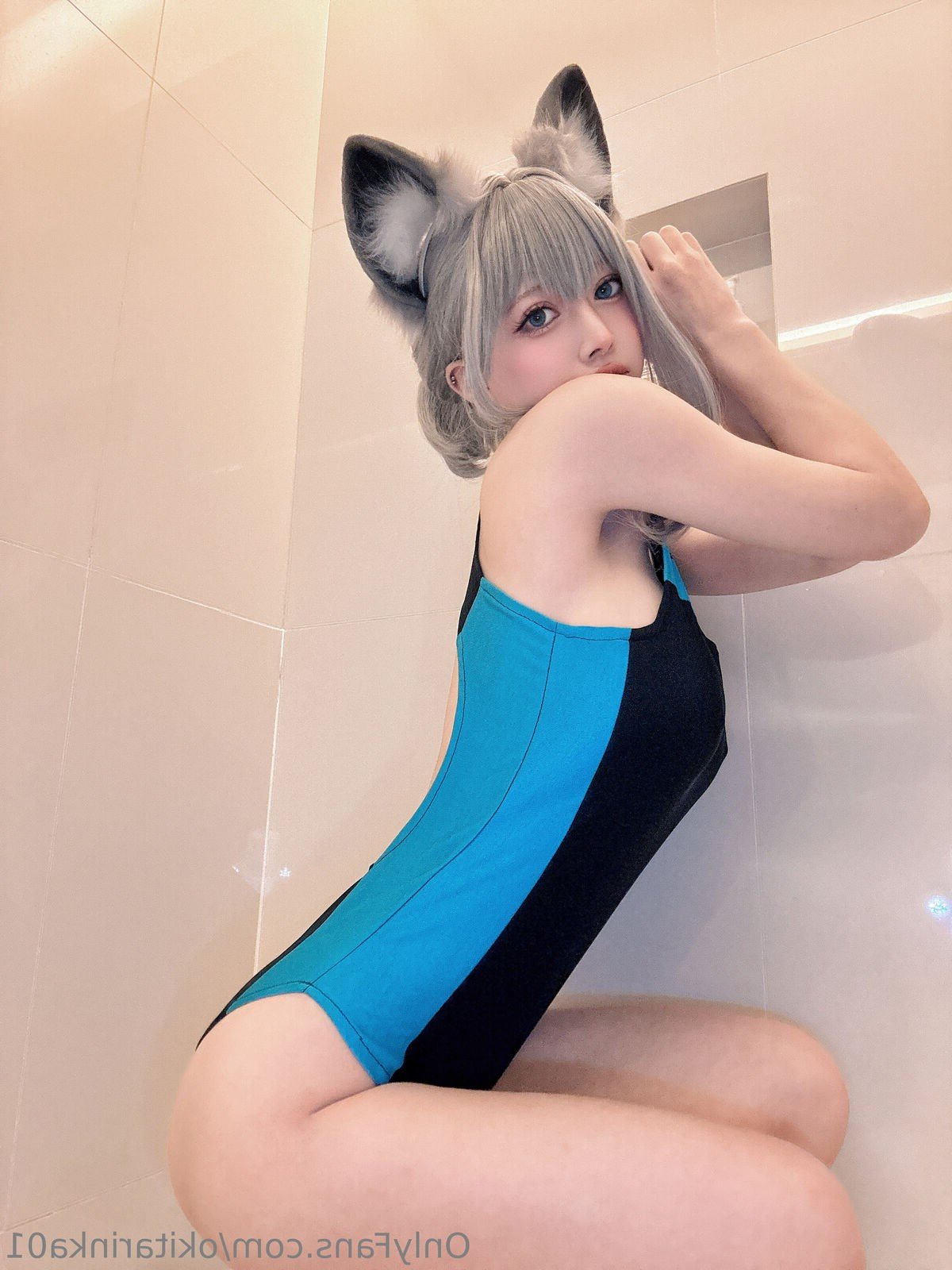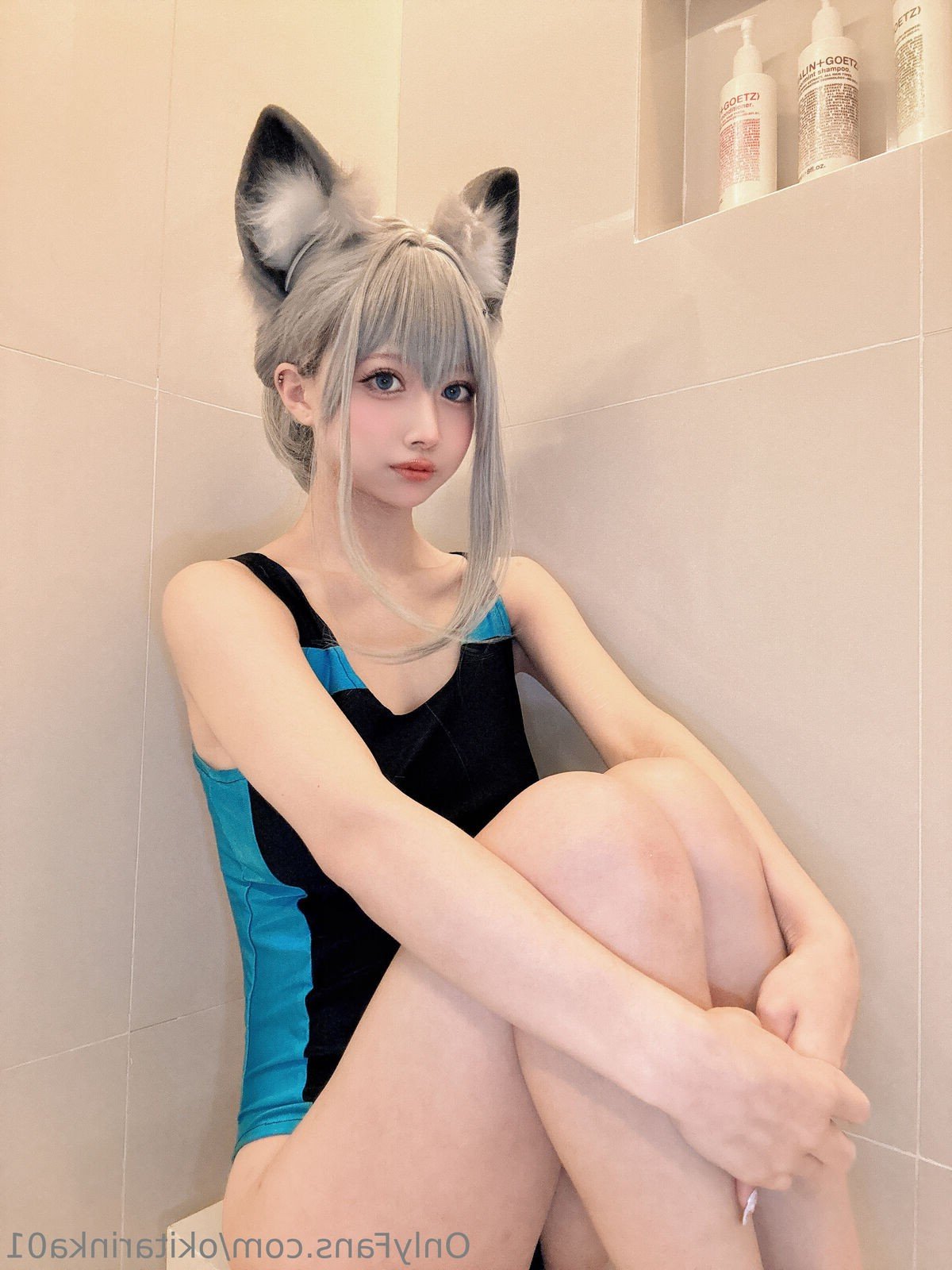 Discover this captivating Blue Archive cosplay photoshoot featuring coser Okita Rinka In a dynamic black and blue swimsuit Okita Rinka perfectly embodies the game character With adorable animal ears and distinctive silver hair she exudes a playful yet graceful charm Okita Rinkas gentle gaze and soft smile while posing highlight her elegance and allure This cosplay set showcases not only meticulous attention to the costume but also Okita Rinkas ability to convey the emotion and spirit of the Blue Archive character to viewers This is undoubtedly a beautiful and impressive piece of cosplay artistry