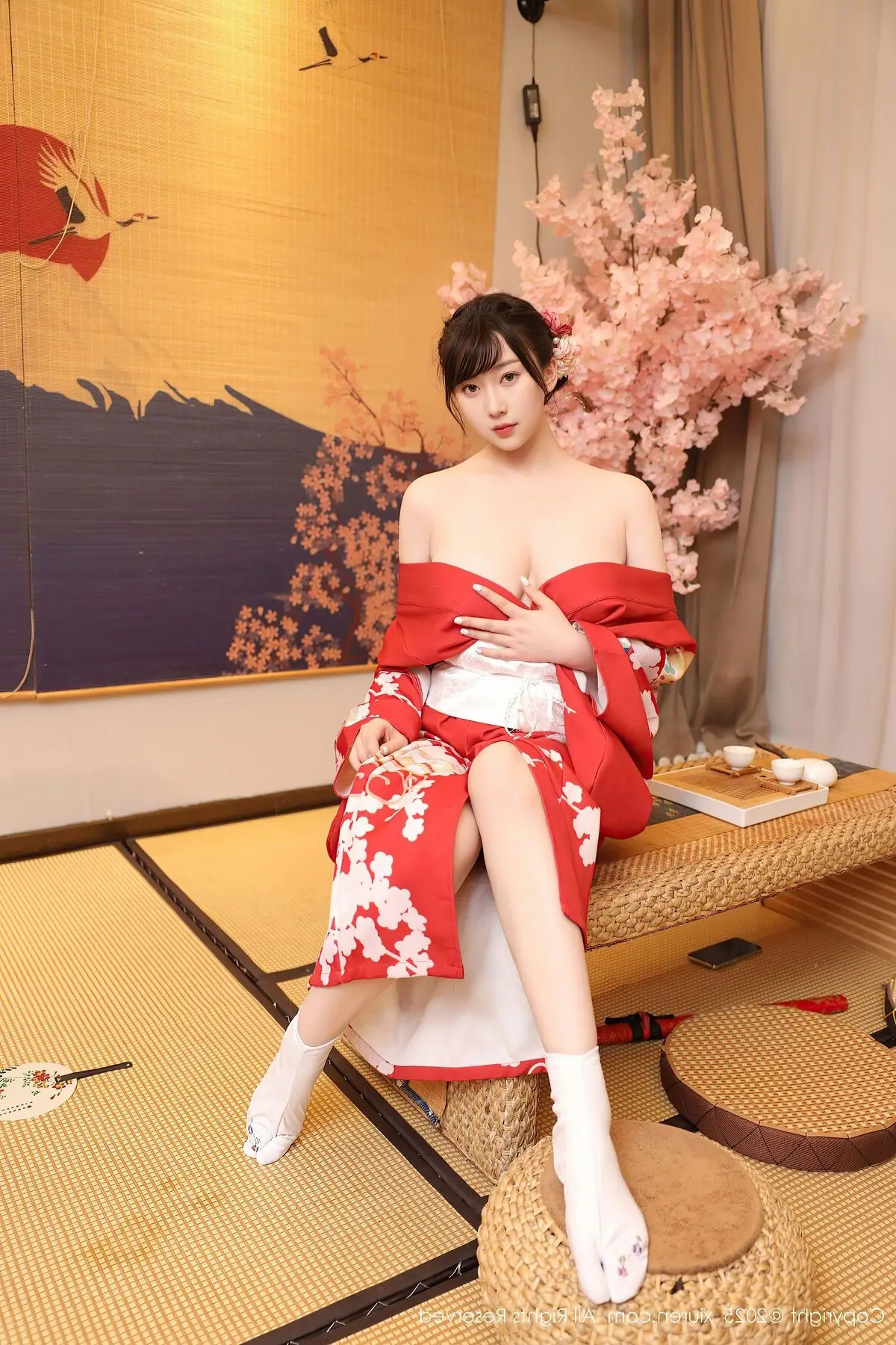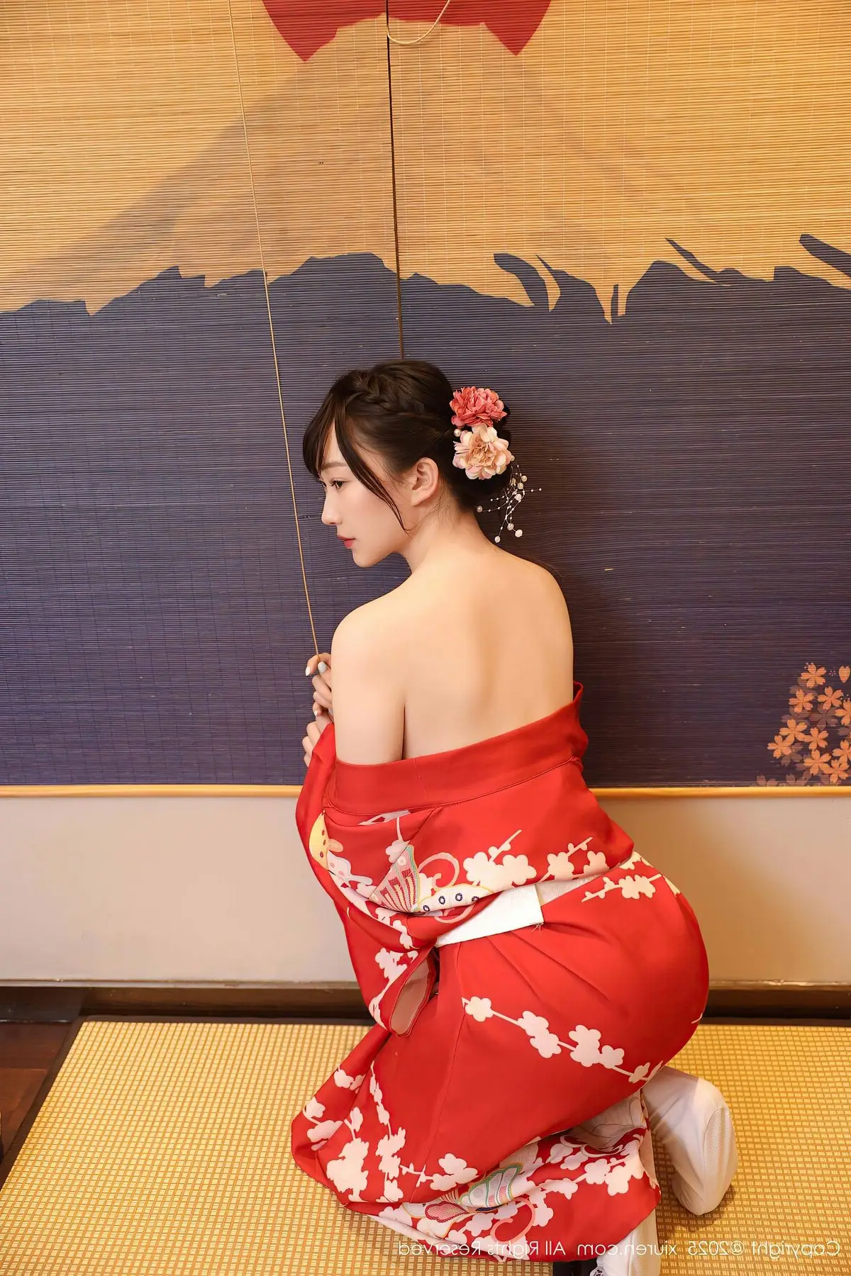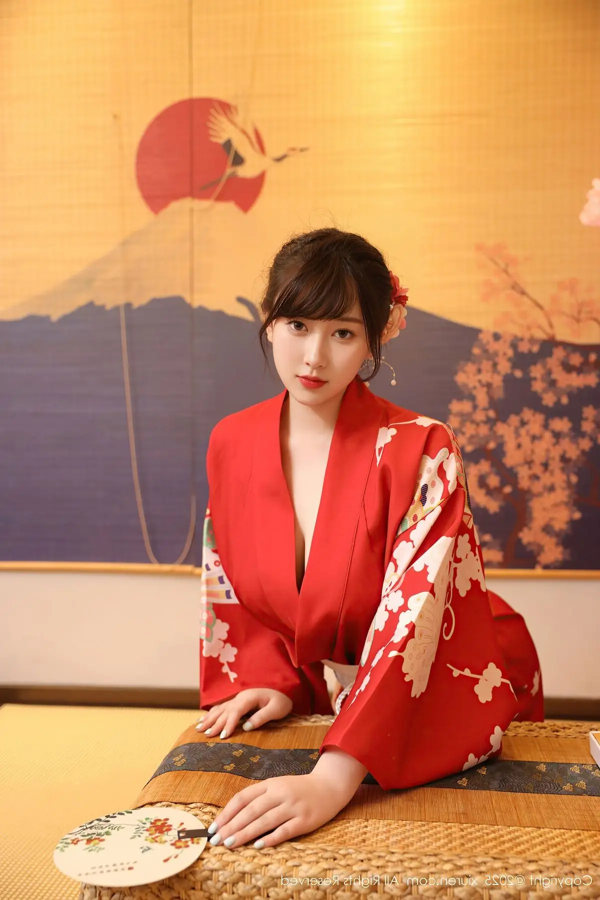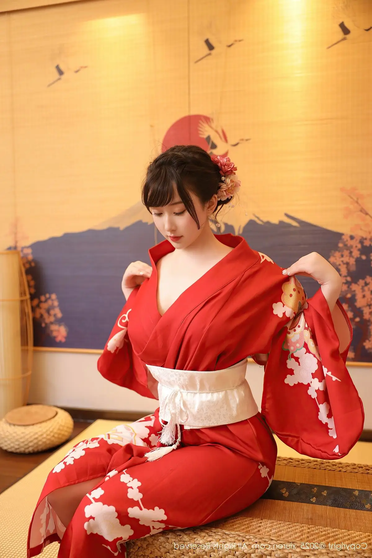 Li Gin En Irene (No.10624) Shines in Red Kimono: Captivating Asian Beauty by XiuRen秀人网