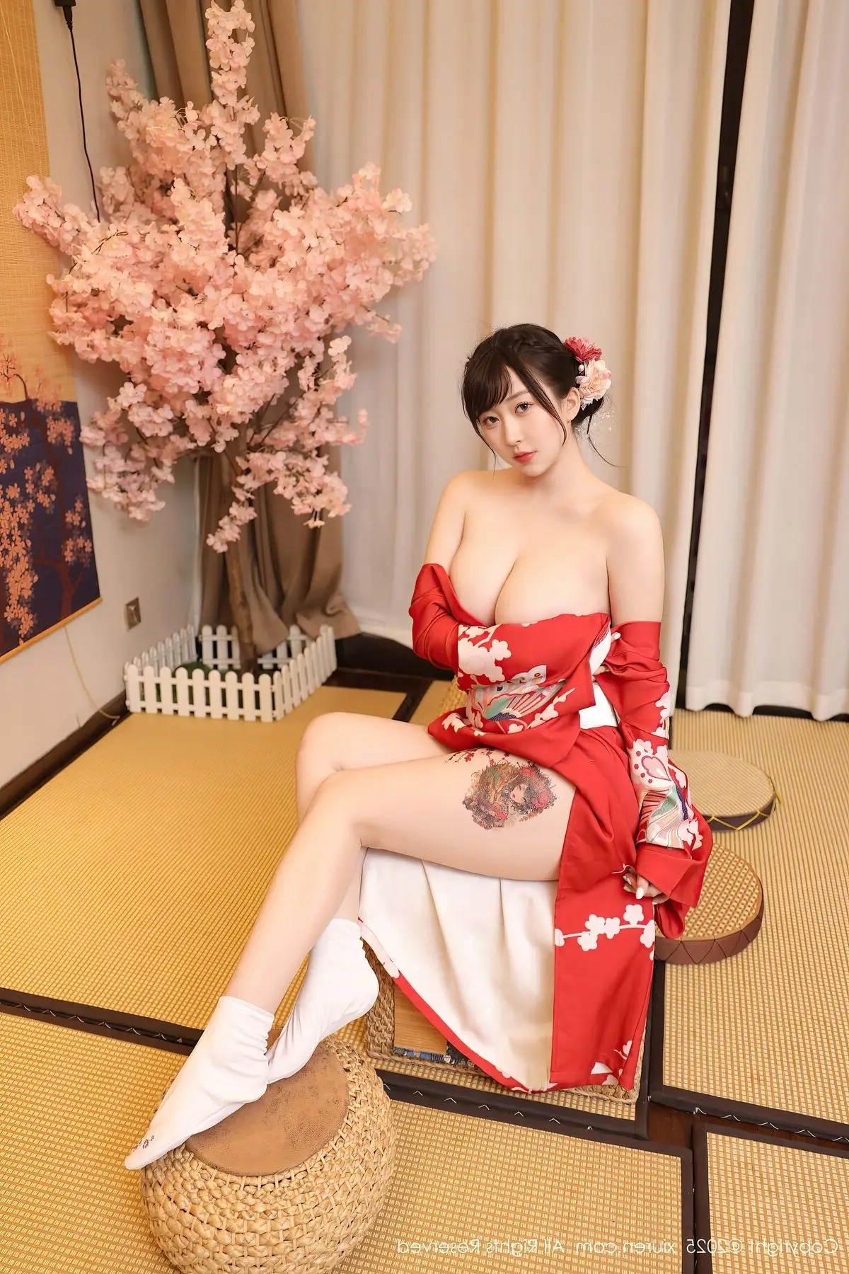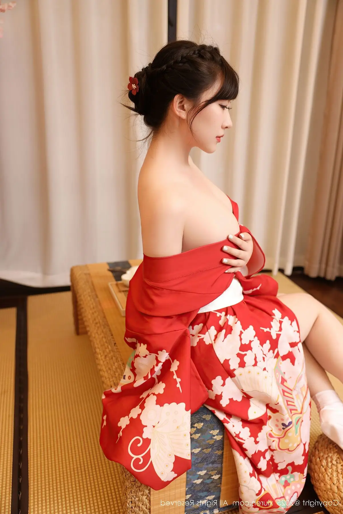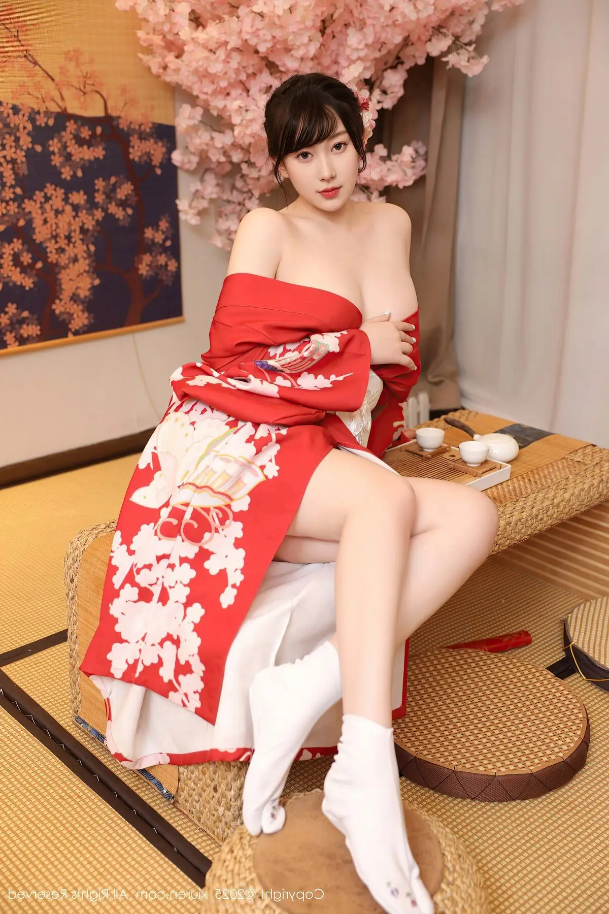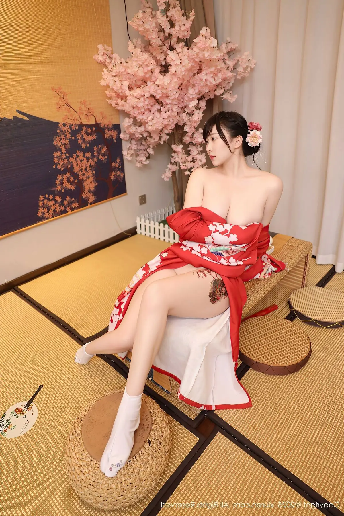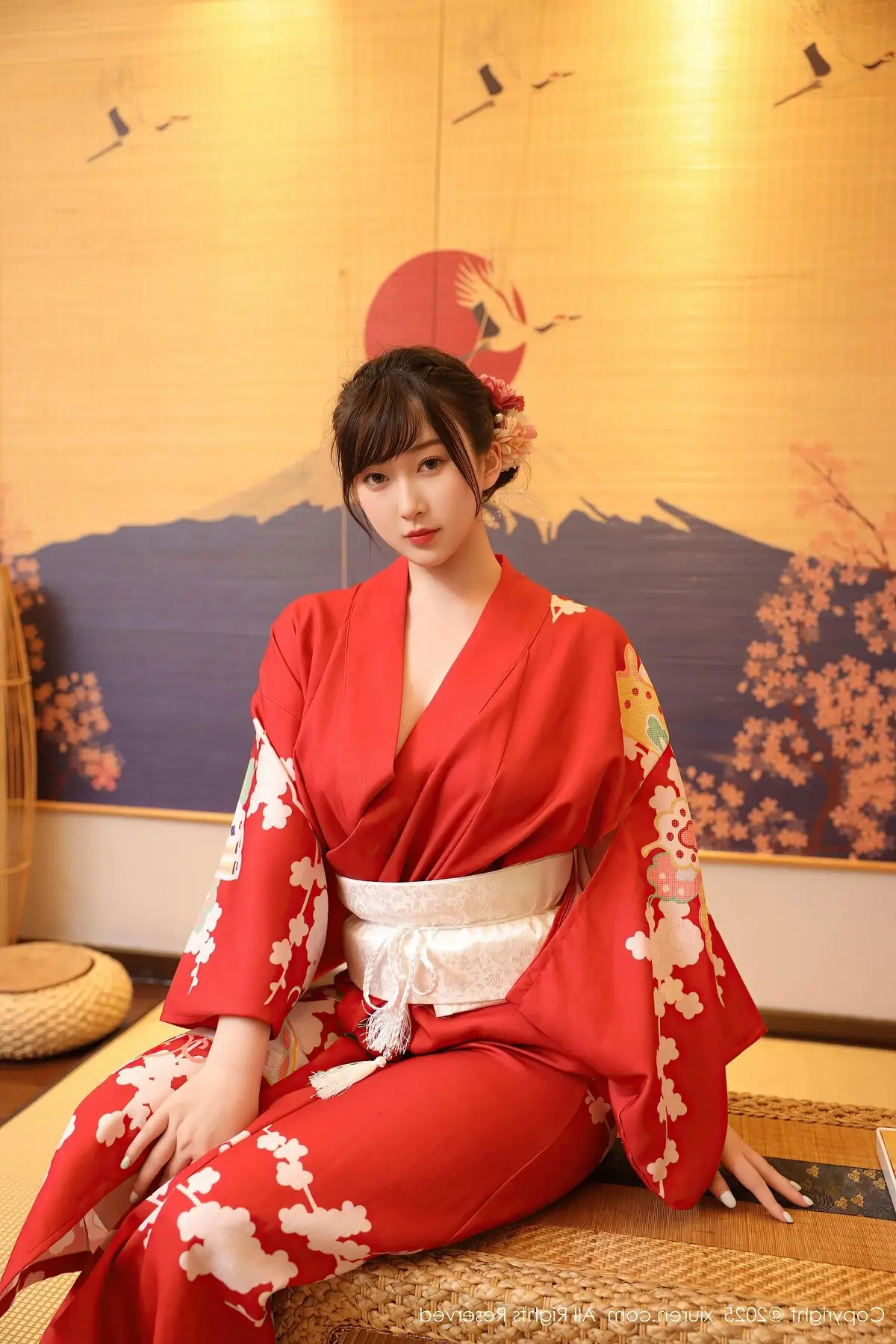 Li Gin En Irene (No.10624) Shines in Red Kimono: Captivating Asian Beauty by XiuRen秀人网