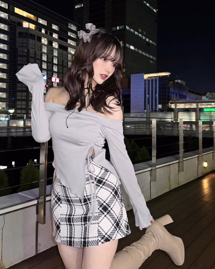 In this captivating photo Japanese hot girl Alalten showcases her alluring physique and striking fashion sense against a vibrant city night backdrop. With a supermodel like figure and confident aura this Japanese girl effortlessly draws all eyes to her. Her off shoulder top paired with a plaid mini skirt not only highlights her modern beauty but also reflects her refined fashion taste. Alalten is not just a hot girl beloved by fans for her attractive appearance but also for the confidence and positive energy she radiates. Influencers like Alalten on social media are creating a significant impact inspiring youth with their fashion and lifestyle choices.XVG No.46: Discover Natural Beauty: Young Woman in Linen Dress by a Serene Stream, a Moment of Pure Tranquility.