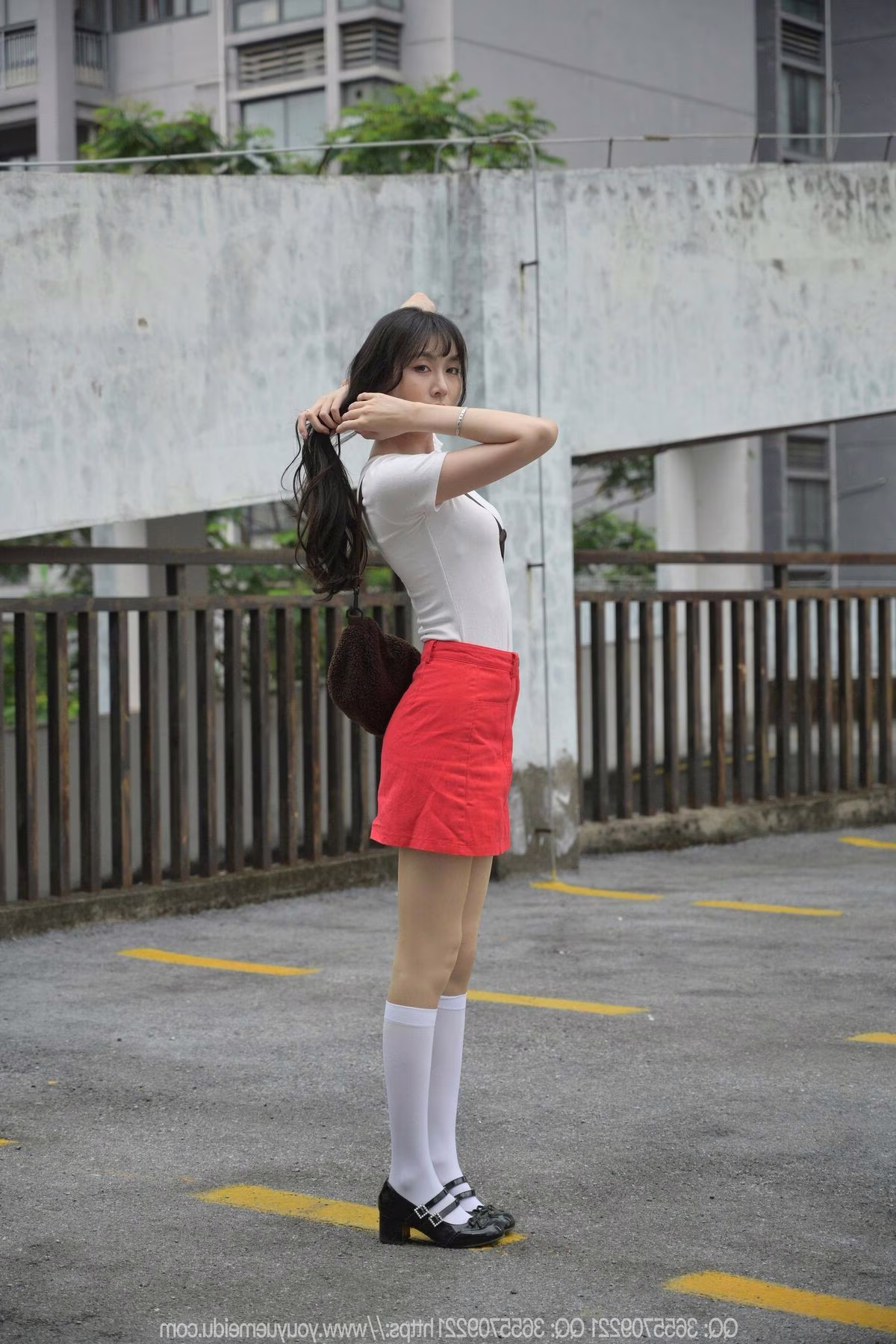 Discover the IESS SXJ No.2055 collection featuring model Tuan Tuan, who shines with natural beauty and captivating presence. The young woman sports a simple white t-shirt paired with a vibrant red mini skirt, creating an energetic and lively image. Tuan Tuan's gentle pose and contemplative gaze convey grace and a hint of mystery. The minimalist urban backdrop further accentuates her elegant features and refined fashion sense. This moment beautifully captures the harmonious blend of East Asian allure and contemporary style, showcasing her unique youthful charm.