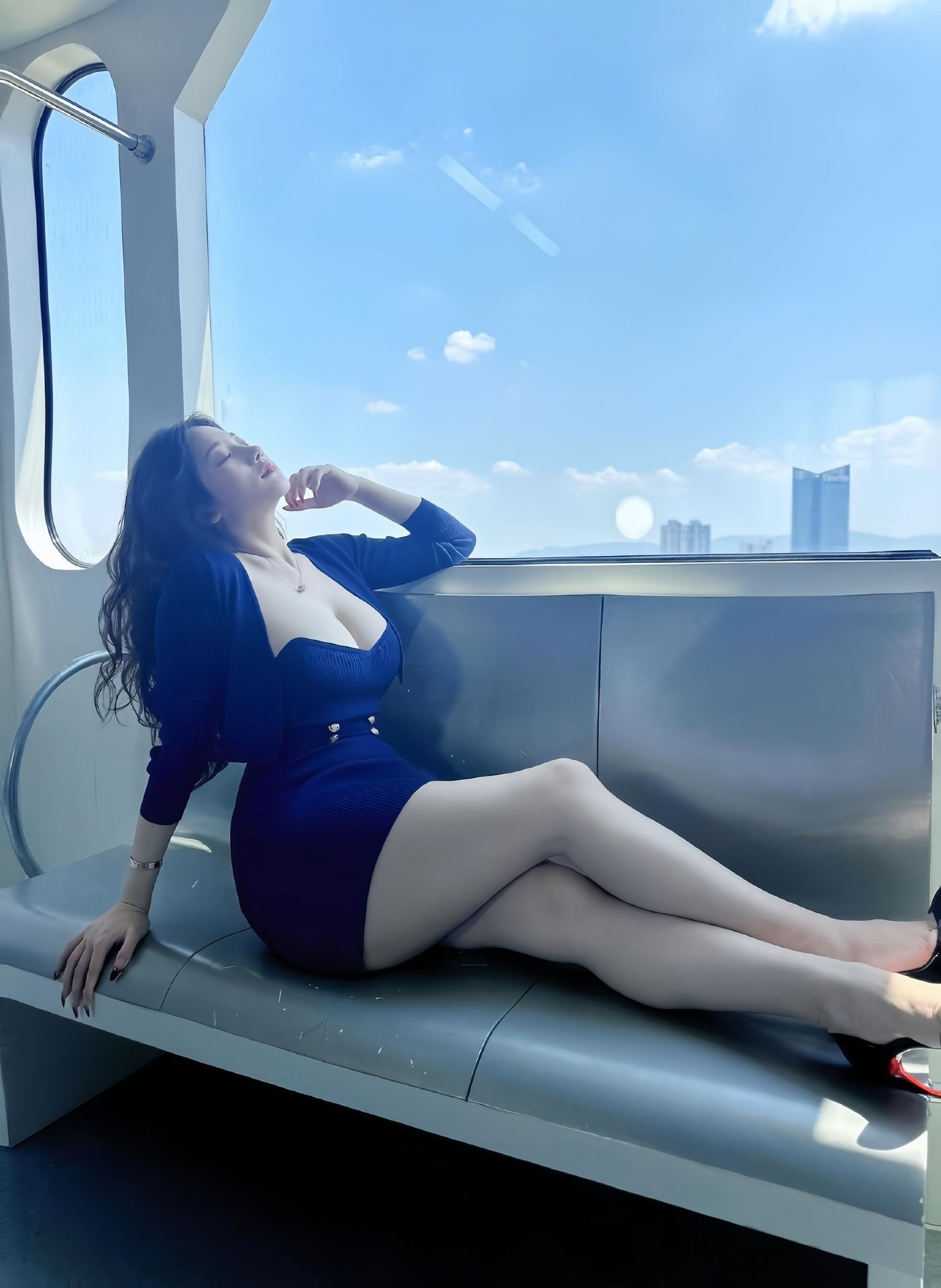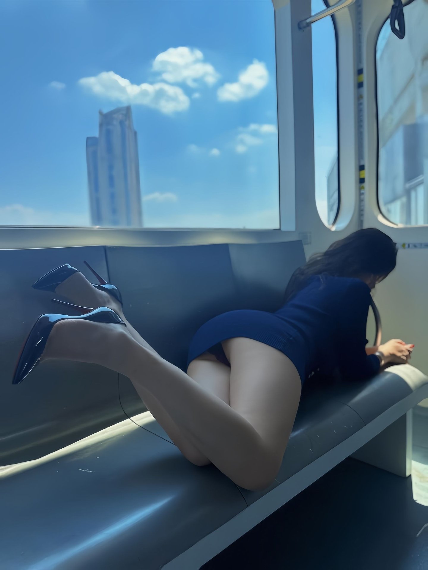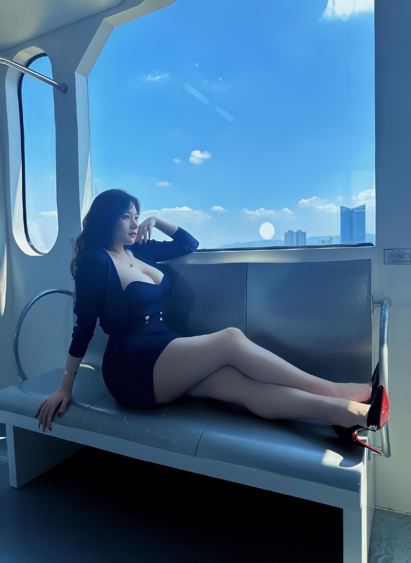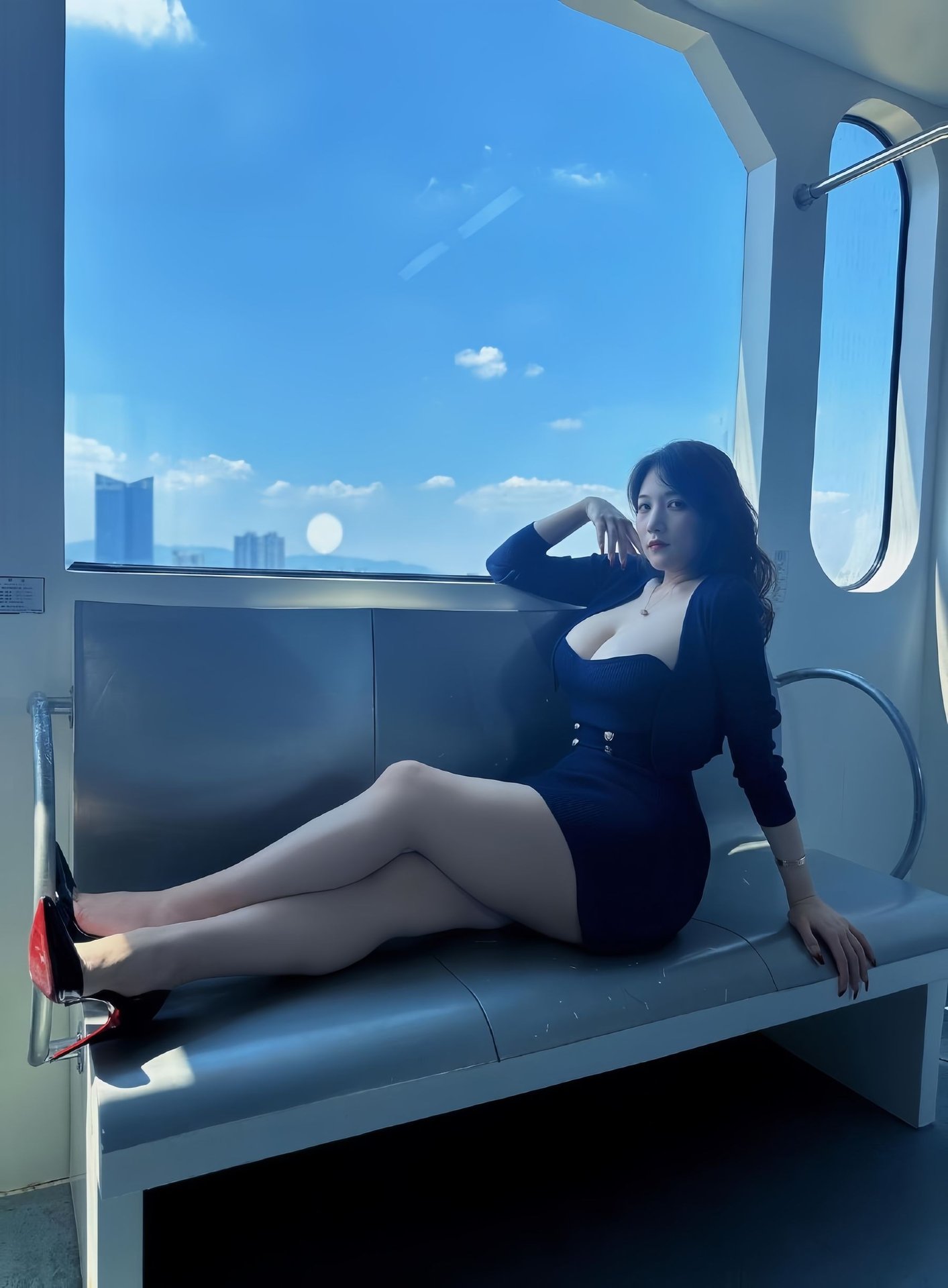 This stunning photograph captures Kekexi yyy, a beautiful woman, radiating captivating and modern style. She dons an elegant yet daring navy blue dress, skillfully showcasing her alluring figure. With flowing hair and a confident gaze, Kekexi yyy embodies self-possession and mature beauty. The subway setting adds an urban touch, highlighting her dynamic personality and distinctive charm. This image perfectly blends sophisticated elegance with confident allure, creating a memorable moment that draws all eyes. It's a true representation of contemporary fashion and urban grace, making it a must-see for enthusiasts of stylish portraiture.