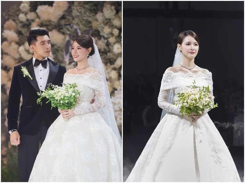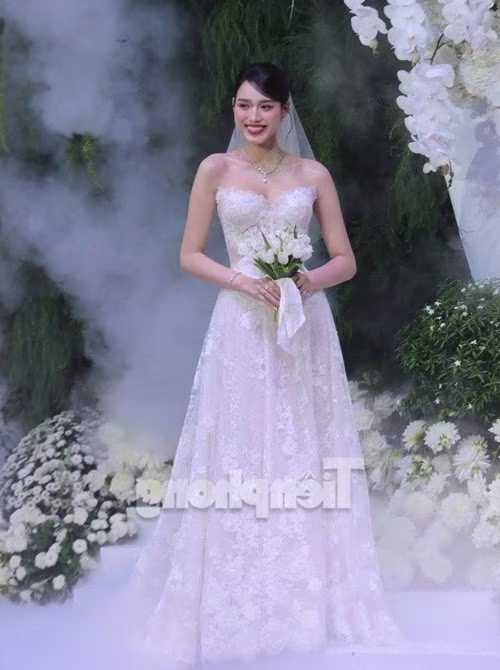 Witness Do Thi Ha's enchanting transformation into a radiant princess in a stunning white wedding gown