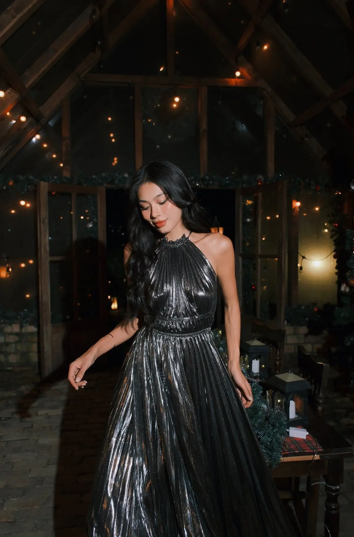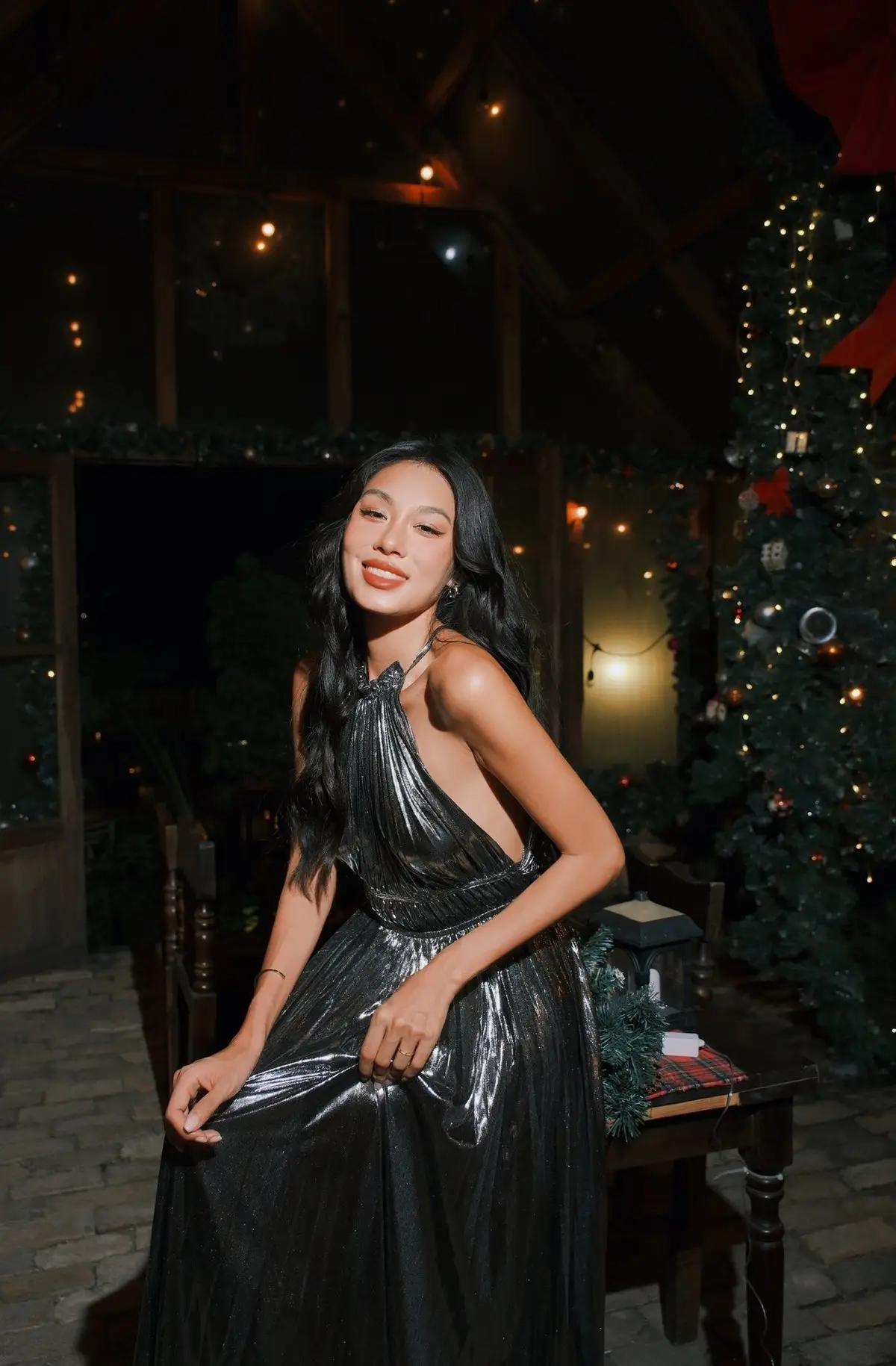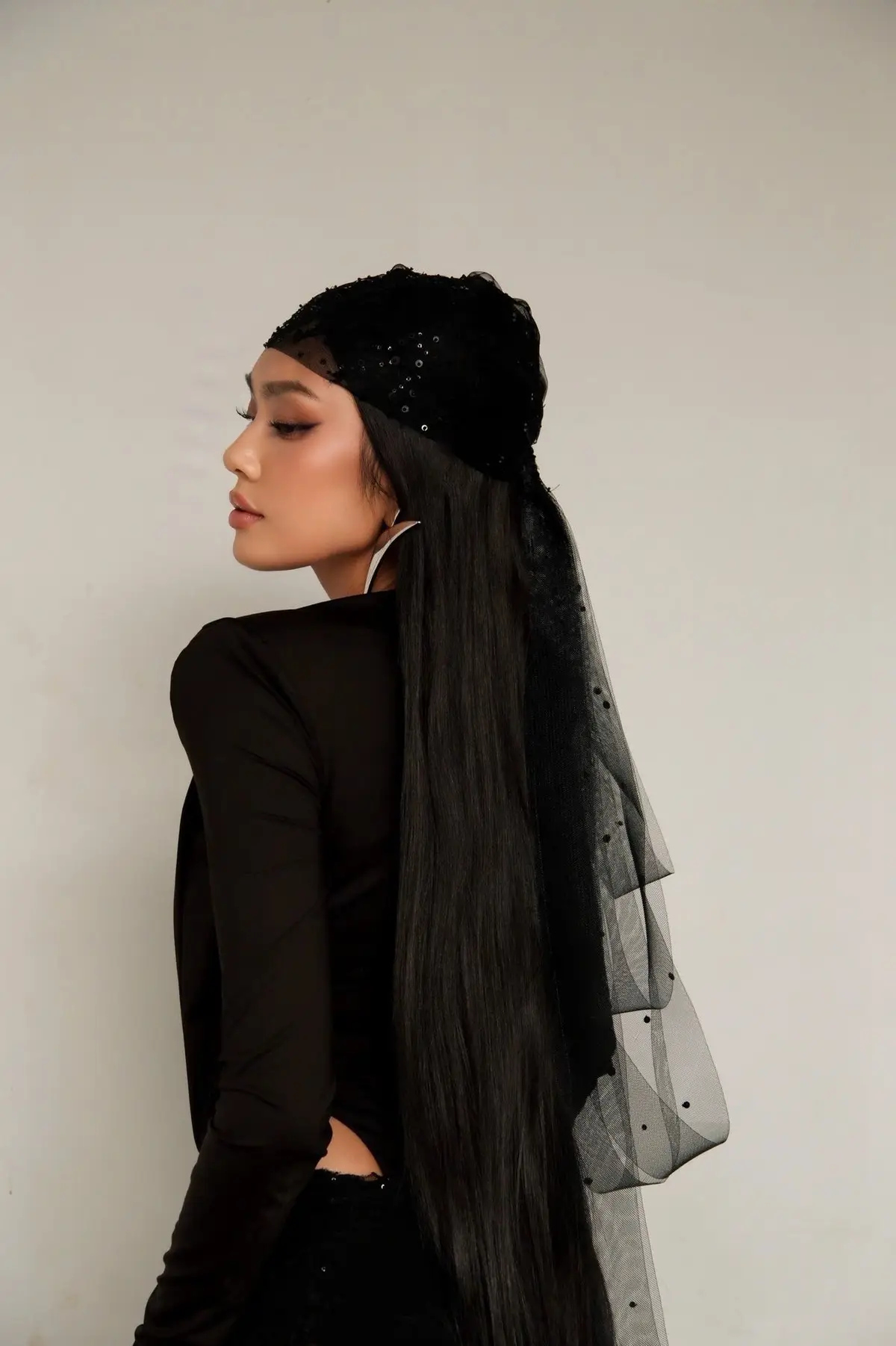 Runner-up Thao Nhi Le always knows how to shine, and this photo clearly demonstrates her captivating year-end festival fashion style. Adorned in a mysterious black outfit, complemented by a sparkling headscarf and sleek long hair, Thao Nhi Le exudes a regal and alluring beauty. She doesn't just wear clothes; she makes a statement about her personal style, showcasing confidence and refined aesthetic taste. This is the perfect inspiration for anyone seeking year-end outfit ideas to stand out at every party and assert their fashion prowess.#ThaoNhiLe #FestivalFashion #YearEndStyle #ChicOutfit #VietnameseBeauty