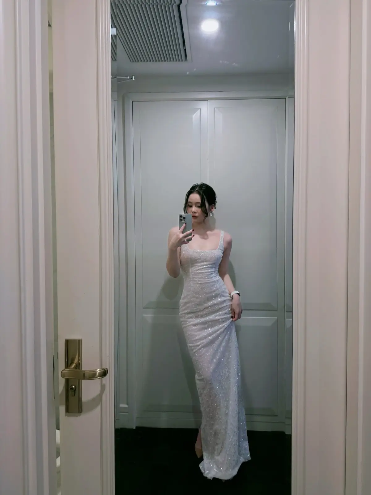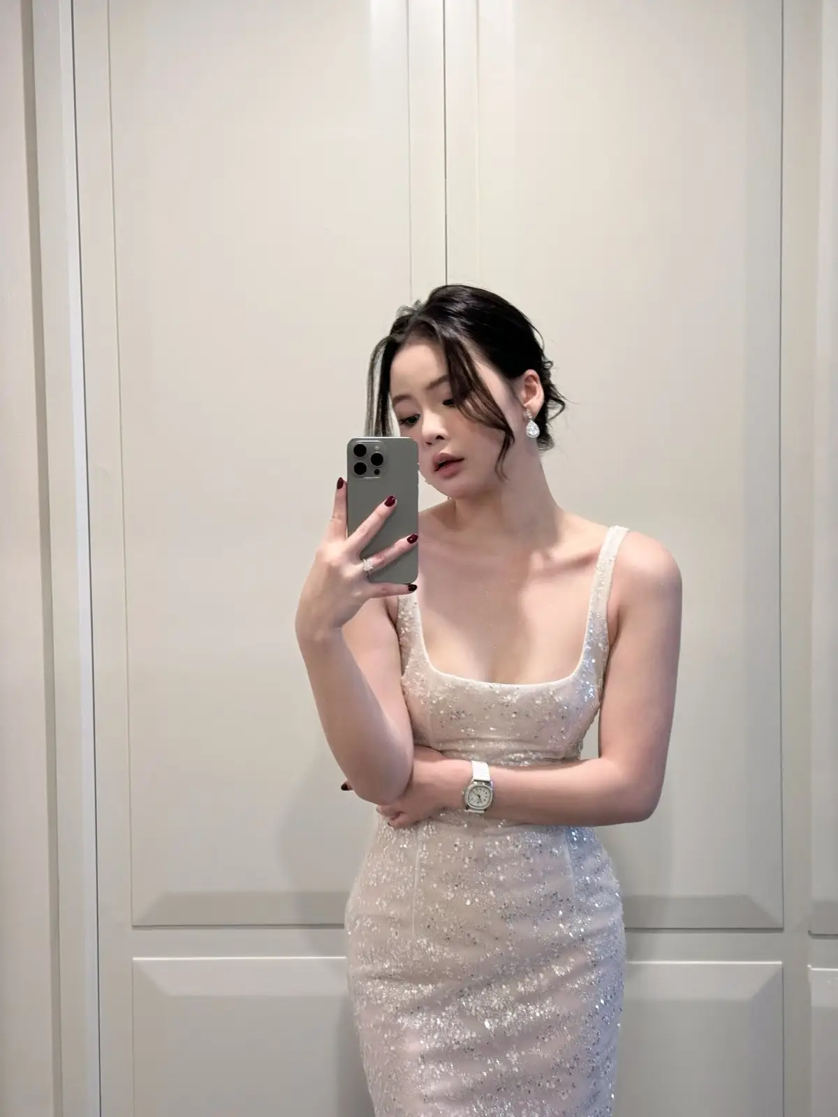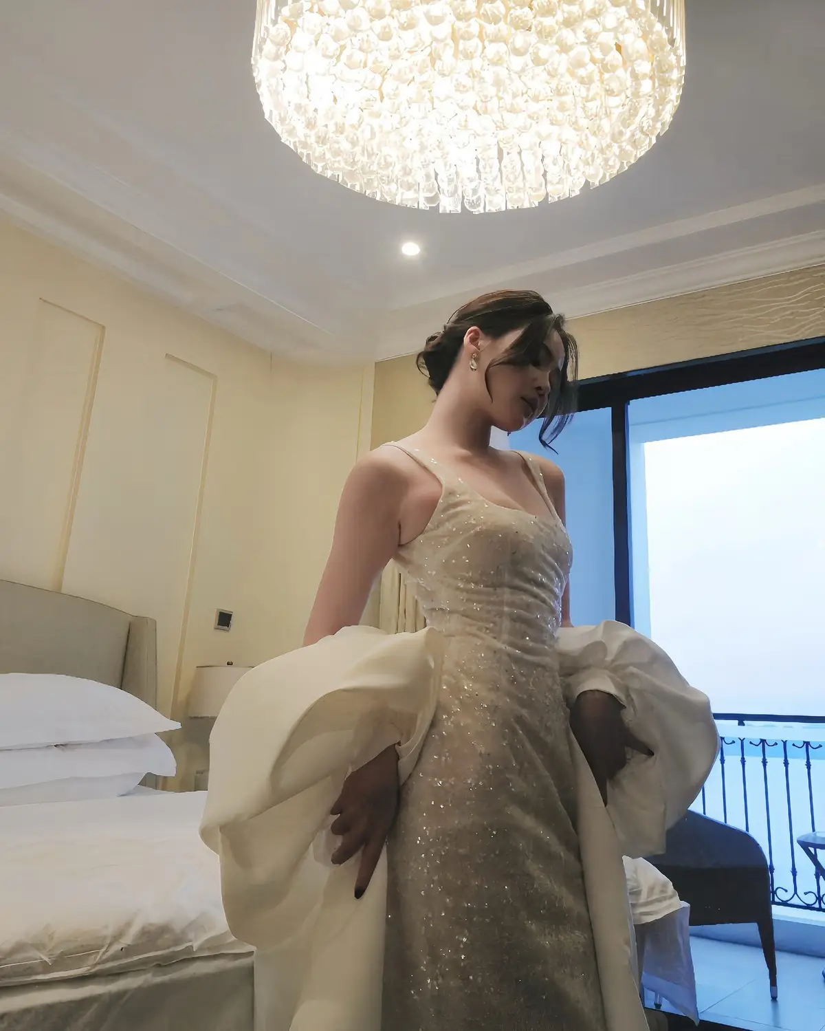 This stunning photo captures singer Bich Phuong glamorously preparing for an event. She wears a dazzling evening gown with intricate 'bling bling' details, shining brightly like a star. Bich Phuong's beauty truly transforms her into a muse stepping out of a fairytale, both elegant and captivating. Her outstanding fashion style and alluring beauty light up the entire space. From her elegantly styled hair to the sparkling jewelry, every detail is meticulously cared for, creating a perfect and enchanting image. Bich Phuong asserts her high-class fashion sense and supreme charisma.#BichPhuong #BlingBlingFashion #FairytaleMuse #VietnameseSinger #EventStyle