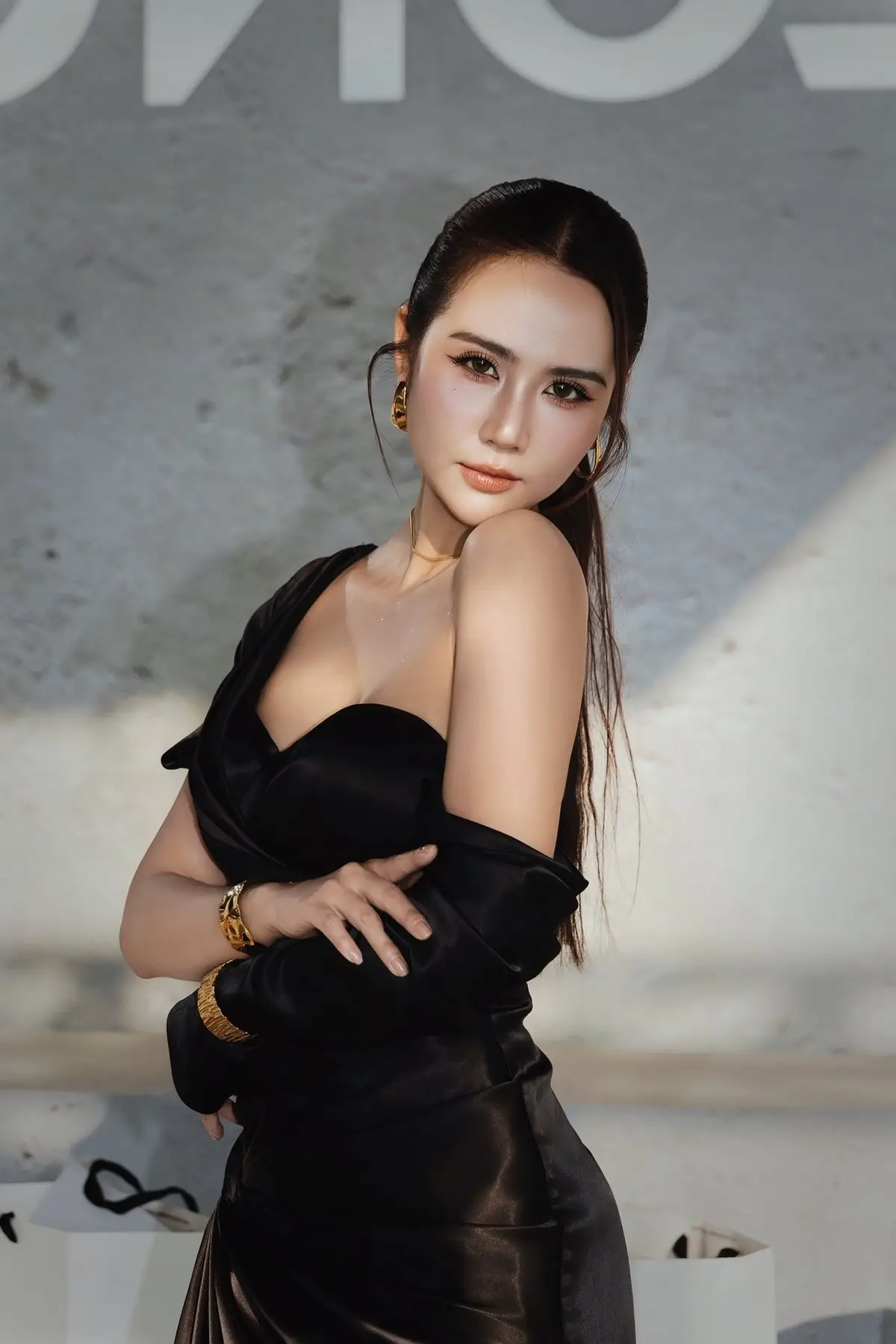 Actress Huyen Lizzie captivates in a stunning black outfit gracefully showcasing her delicate slender back. Her elegant fashion style is evident through the sophisticated strapless dress and chic long gloves. This image not only highlights her beautiful physique but also radiates Huyen Lizzie's confident and graceful aura. She consistently knows how to draw all eyes affirming her position as a star with impressive aesthetic taste. This truly demonstrates the actress's undeniable appeal in the Vietnamese entertainment industry.#HuyenLizzie #SlenderBack #VietnameseFashion #GlamorousActress #CelebrityStyle