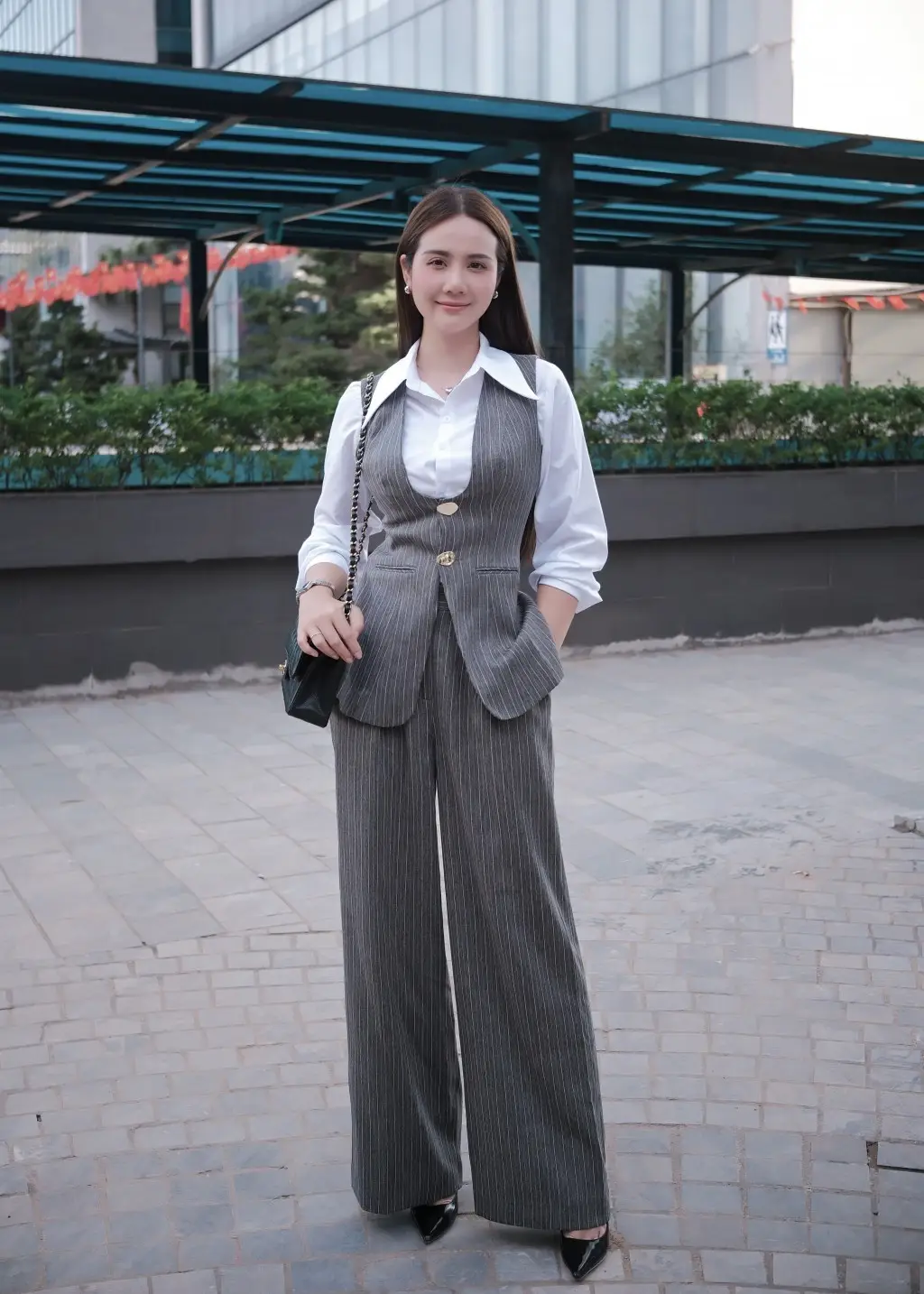 The beautiful Phan Minh Huyen captures every gaze with her elegant and professional fashion style. She wears a sophisticated grey vest suit paired with a white shirt, creating a look that is both modern and classic. The fitted vest accentuates her balanced figure, while wide-leg trousers offer comfort and luxury. Phan Minh Huyen's radiant smile and confident demeanor further highlight her natural, flawless beauty. This is not just a refined outfit choice but also reflects the actress's meticulous care for her image. To achieve perfect beauty down to every centimeter on screen and in real life, Phan Minh Huyen consistently maintains a scientific diet and exercise regimen. This discipline helps her keep a standard physique, contributing to her impressive and classy fashion sense. She is a testament to the harmonious blend of talent and beauty.#PhanMinhHuyen #ElegantFashion #VietnameseBeauty #ClassicStyle #RadiantBeauty