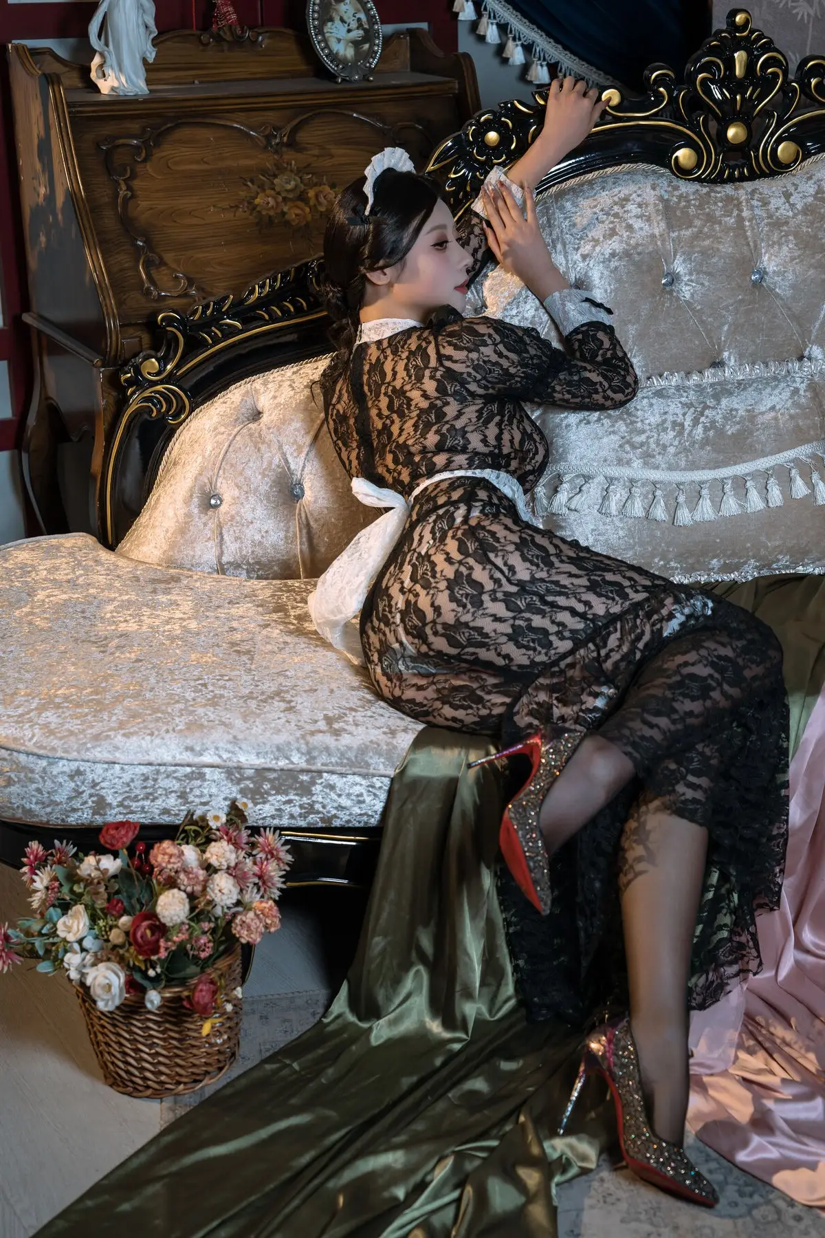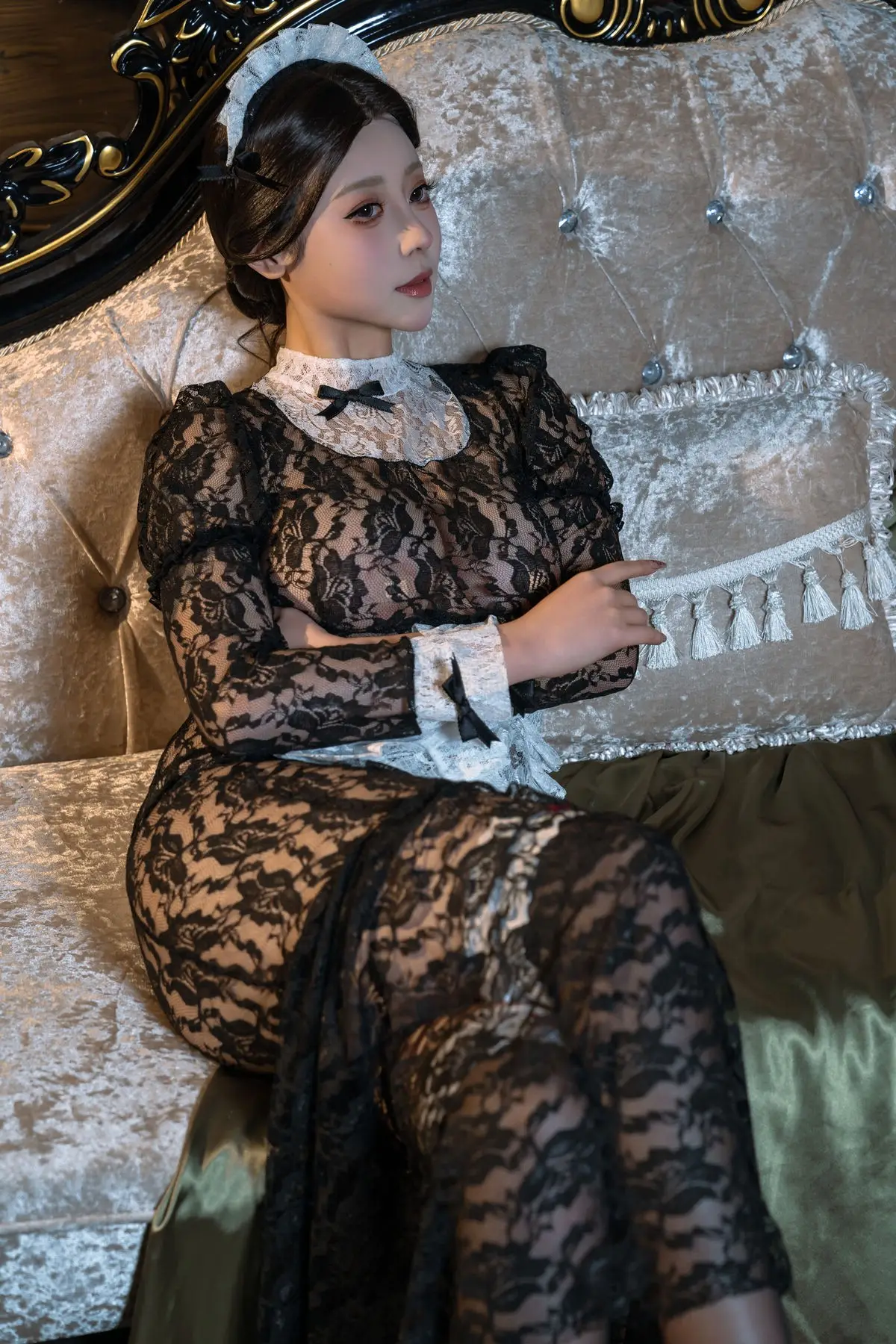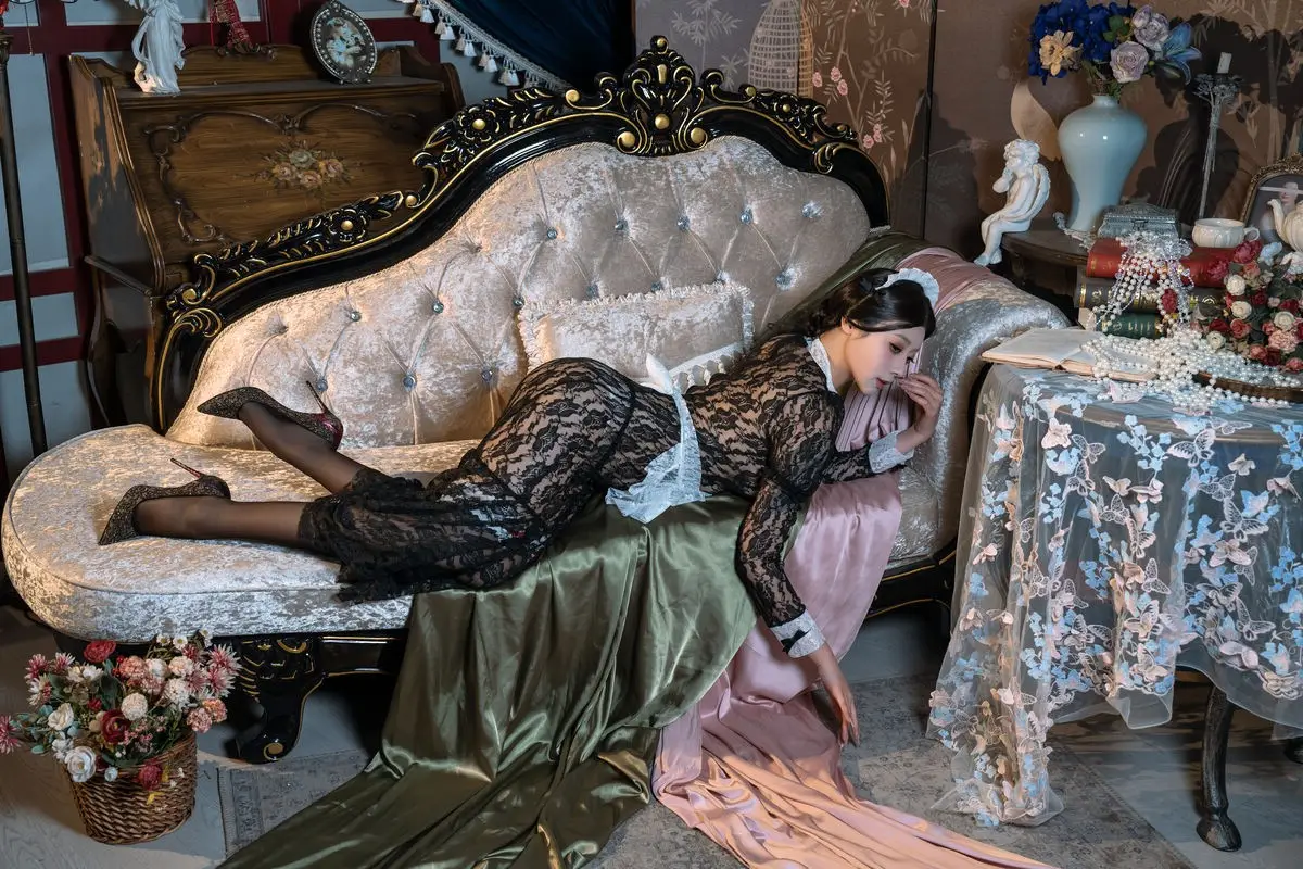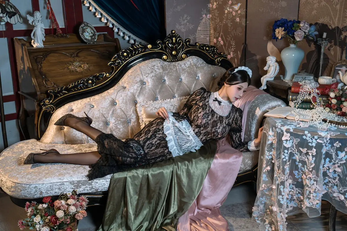 Step into an enchanting world with Coser Yunx1x1 elegantly portraying a classic maid in a sophisticated ensemble. This captivating image reveals a graceful and contemplative beauty amidst a luxurious vintage interior evoking romantic tales of old. Yunx1x1 exudes an air of refined elegance with every delicate gesture perfectly harmonizing with the opulent classical setting. From the intricate black lace dress to the pristine white apron every detail is meticulously crafted creating a mesmerizing and alluring visual narrative. Discover this emotionally rich artistic moment.#Coser #Yunx1x1 #MaidCosplay #VintageFashion #ElegantCosplay #CosplayPhotography