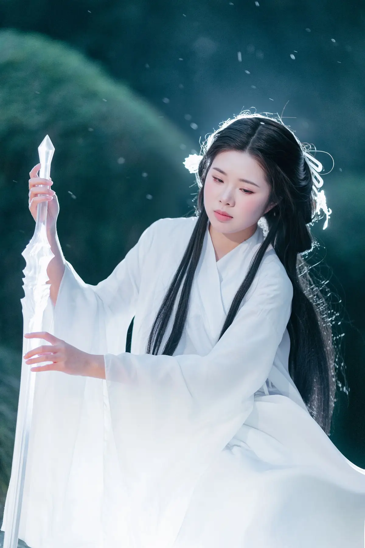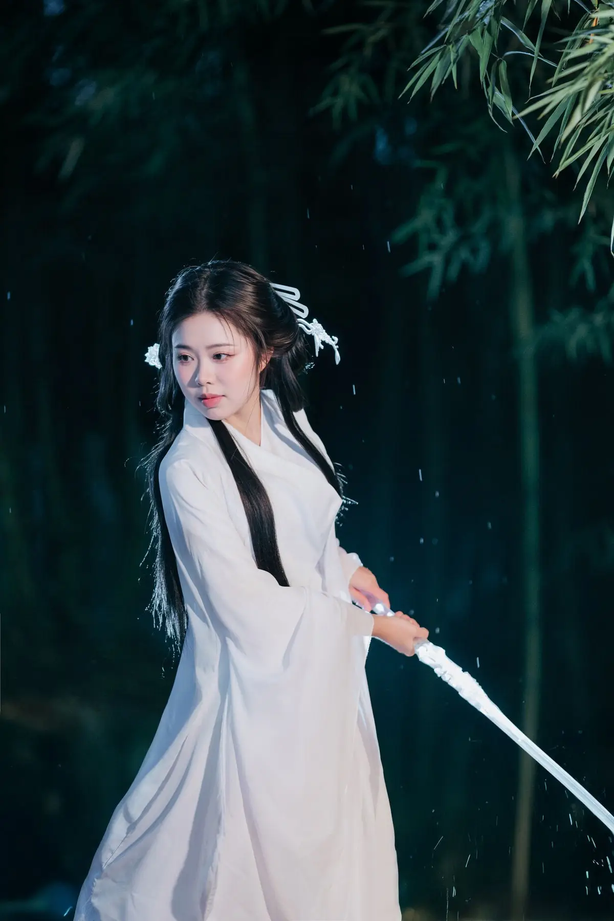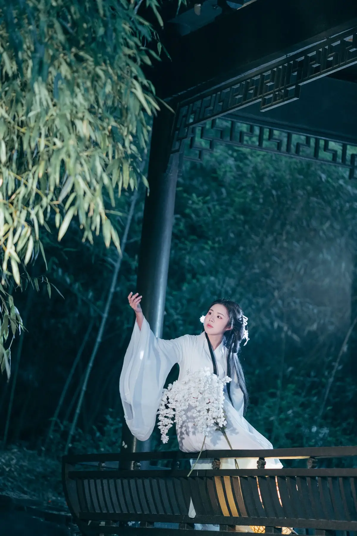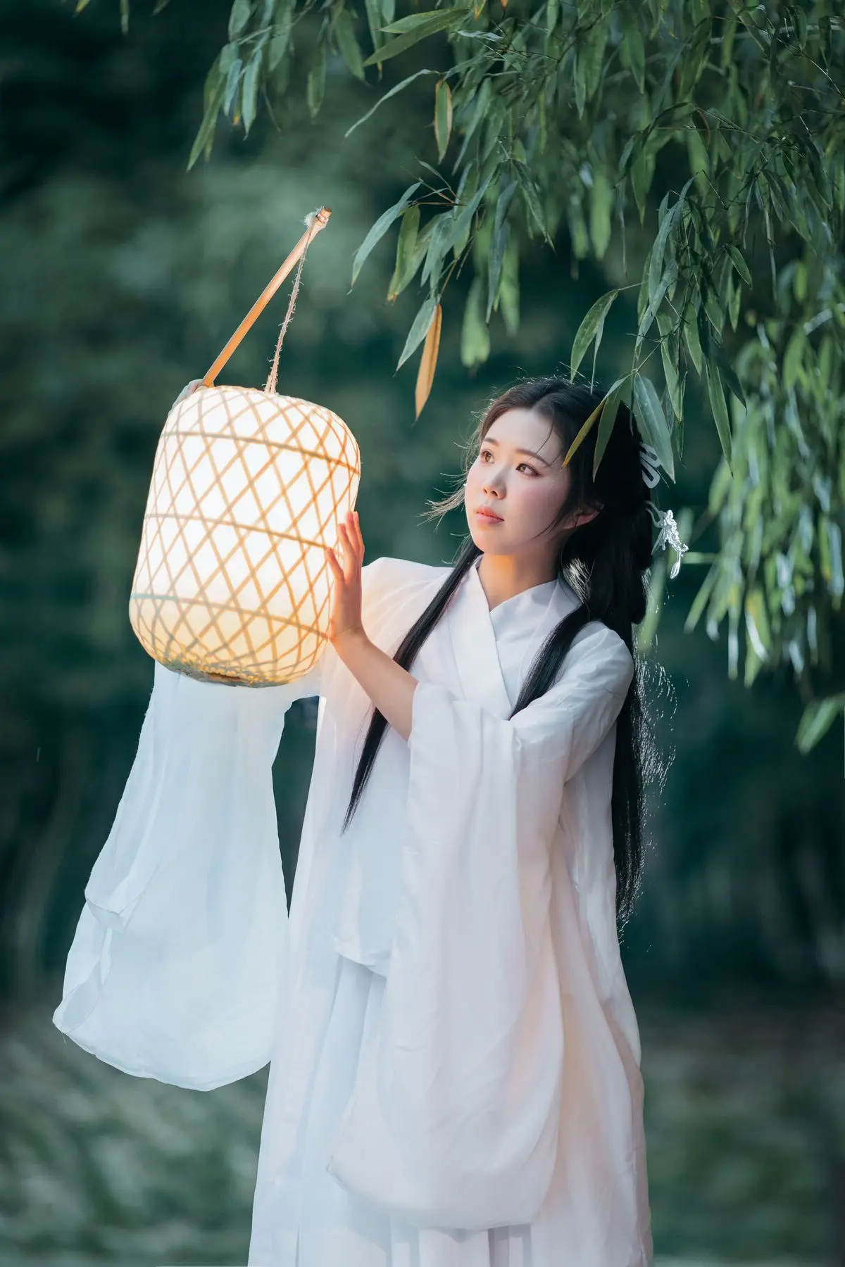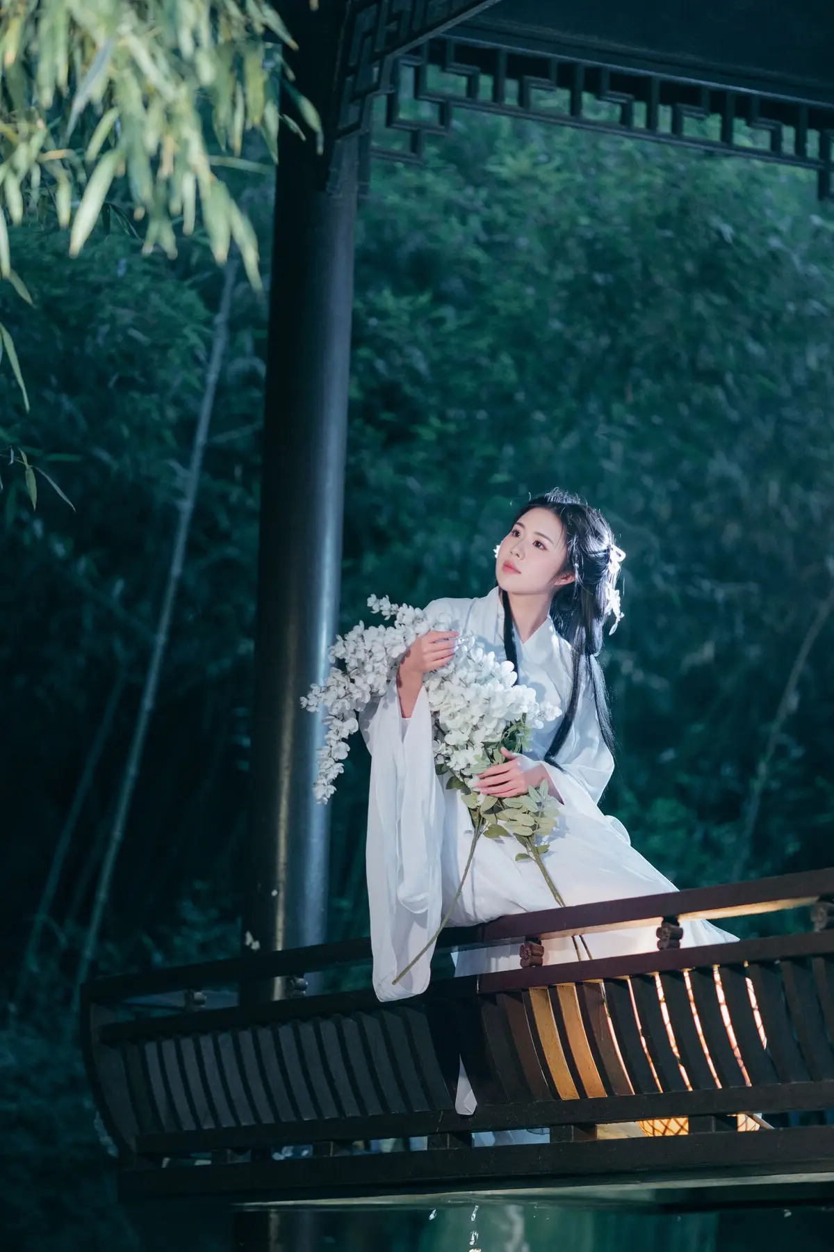 Immerse yourself in the enchanting art world of YiTuYu Vol.8687 featuring the muse Su Su. In this captivating photo set, Su Su emerges as a living painting, adorned in pristine white traditional attire, symbolizing purity and classical beauty. Amidst the mystical night, under the soft glow emanating from a white paper umbrella and an ancient lantern, Su Su evokes a sense of profound tranquility and depth. Her gaze, directed upwards, suggests contemplation of the night's beauty or a search for something within a dream. This Art Language collection transcends mere photographs; it is a visual narrative where every detail contributes to an emotional work of art, sparking curiosity and admiration for East Asian aesthetics.