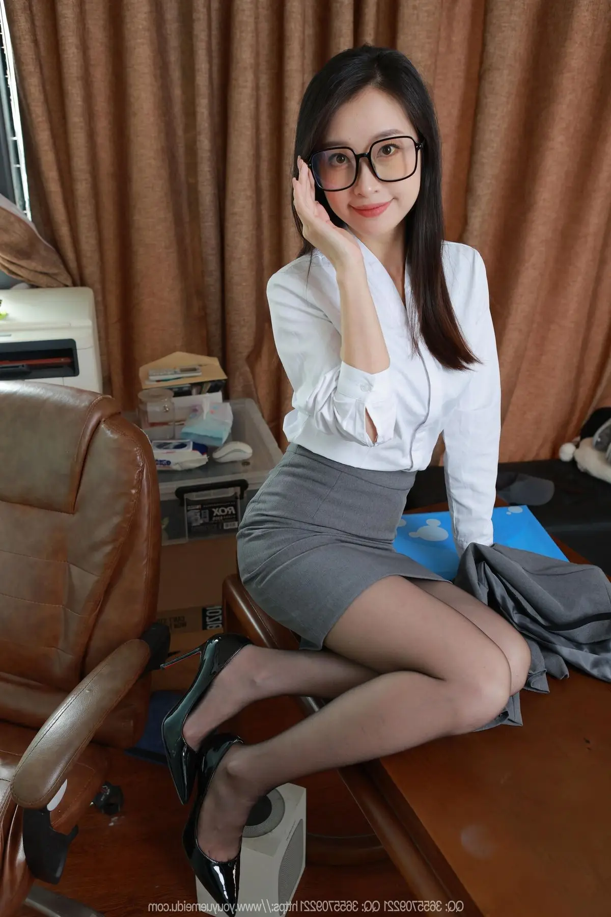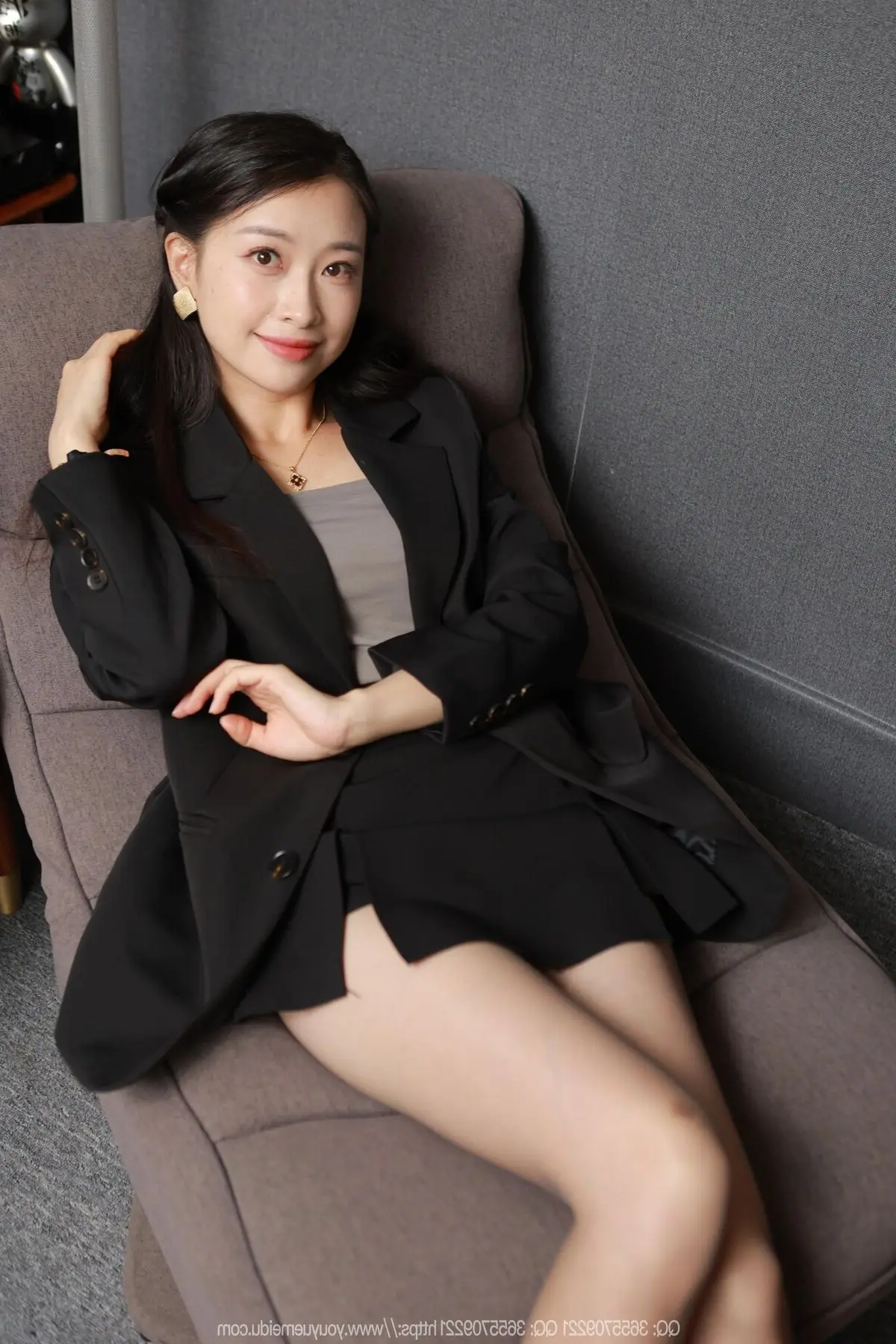 This captivating image from the SXJ No.2095 series features secretary Xiao Jie exuding an aura of elegance and professionalism. She is seated gracefully, dressed in a sophisticated black blazer and skirt, perfectly complemented by delicate black sheer stockings and stylish high heels. This ensemble not only accentuates her graceful figure but also showcases the confident and modern essence of an office lady. Xiao Jie's radiant face and gentle smile create a charismatic yet approachable demeanor, inviting viewers to explore the narrative behind this alluring portrait.#CharmingSecretary #BlackSheerStockings #XiaoJie #OfficeFashion #ProfessionalStyle #OfficeLady #OL #Secretary