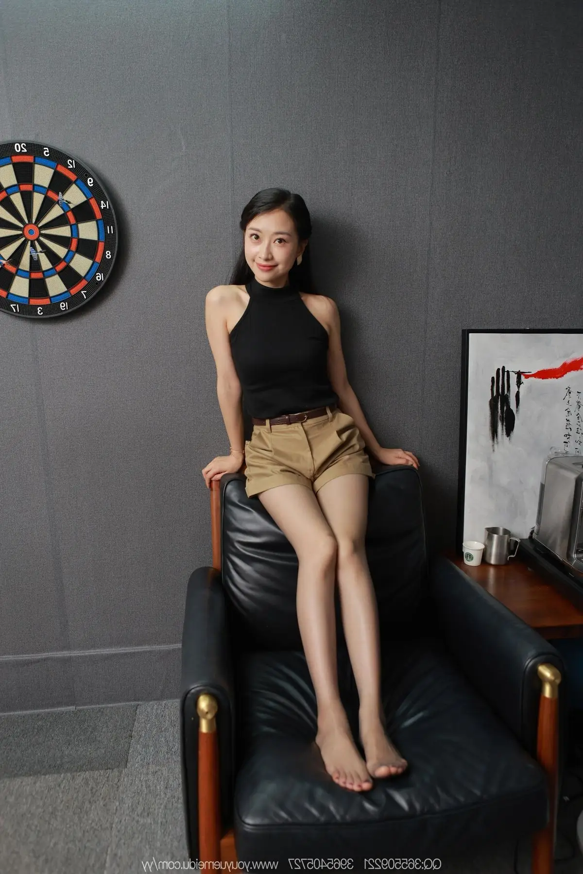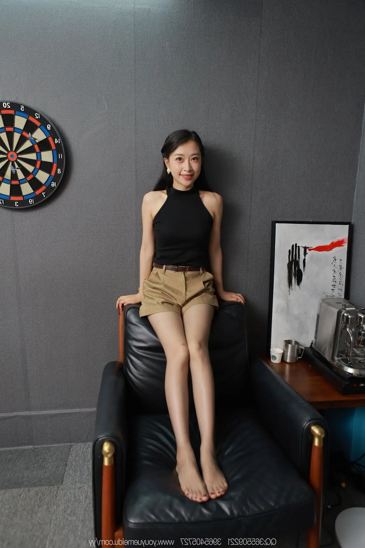In this IESS SXJ No.2103 photoshoot, model Xiao Jie exudes an elegant charm and confident allure. She poses gracefully on a luxurious black leather armchair, dressed in a simple yet sophisticated ensemble: a chic black sleeveless top paired with stylish khaki shorts. Her long, slender legs are accentuated by fashionable high heels. A gentle gaze and subtle smile highlight her serene demeanor and professional grace. The minimalist modern setting further emphasizes Xiao Jie's natural beauty and captivating presence, creating artistic moments filled with emotion and timeless style.#IESS #XiaoJie #ChineseModel #ElegantStyle #FashionPhotography #OfficeLady #OL #Secretary