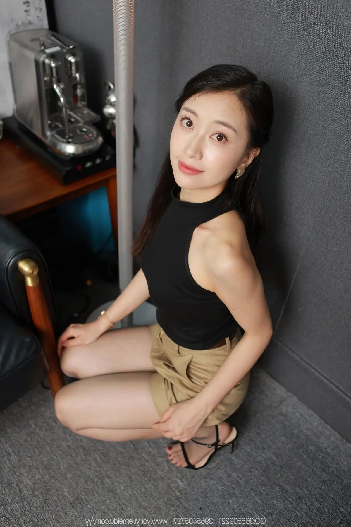 In this IESS SXJ No.2111 photo collection Chinese model Xiao Jie captivates with her elegant and charming presence. Dressed in a simple yet chic black sleeveless top and a short khaki skirt Xiao Jie gracefully showcases her slender legs and confident demeanor. She is comfortably seated on the floor striking a natural pose with a gentle smile gracing her lips. Her captivating gaze and flowing dark hair further accentuate her delicate Asian beauty. This image not only highlights her professionalism as a model but also captures Xiao Jie's unique allure offering viewers a visually engaging and refined experience.#IESS #XiaoJie #ChineseModel #ElegantStyle #SXJ2111