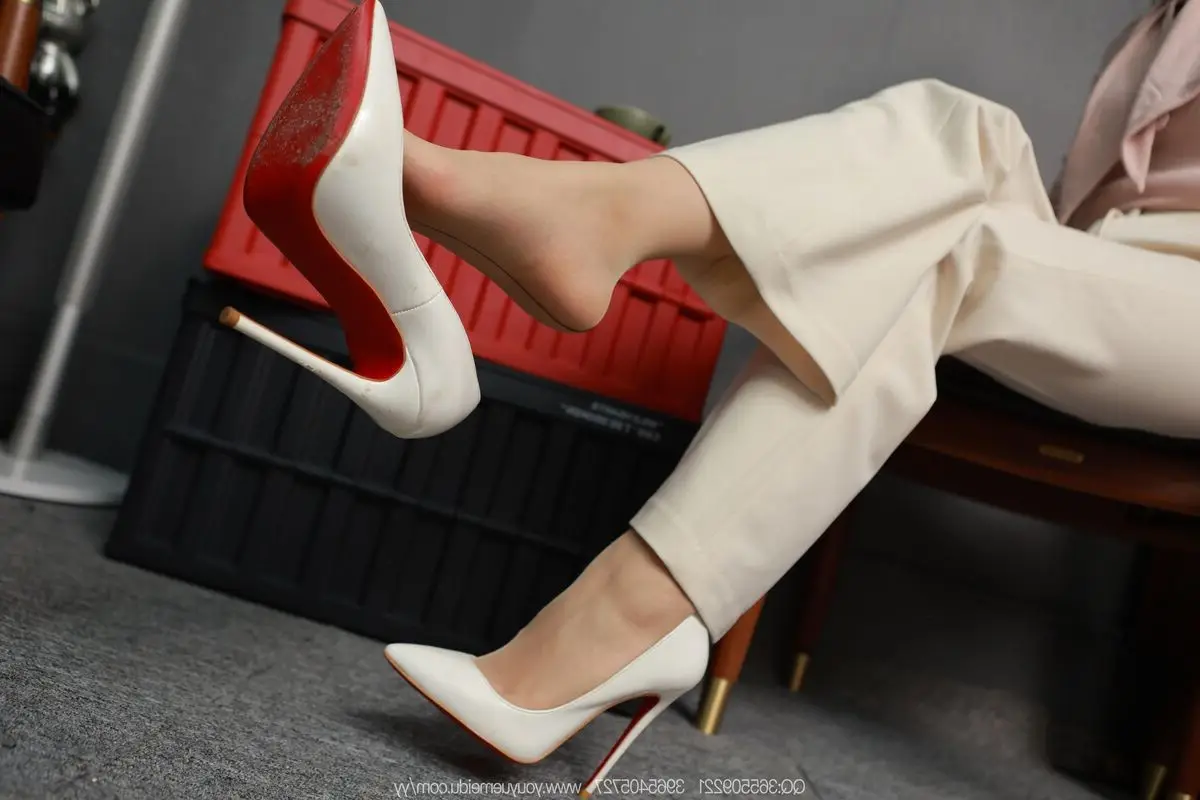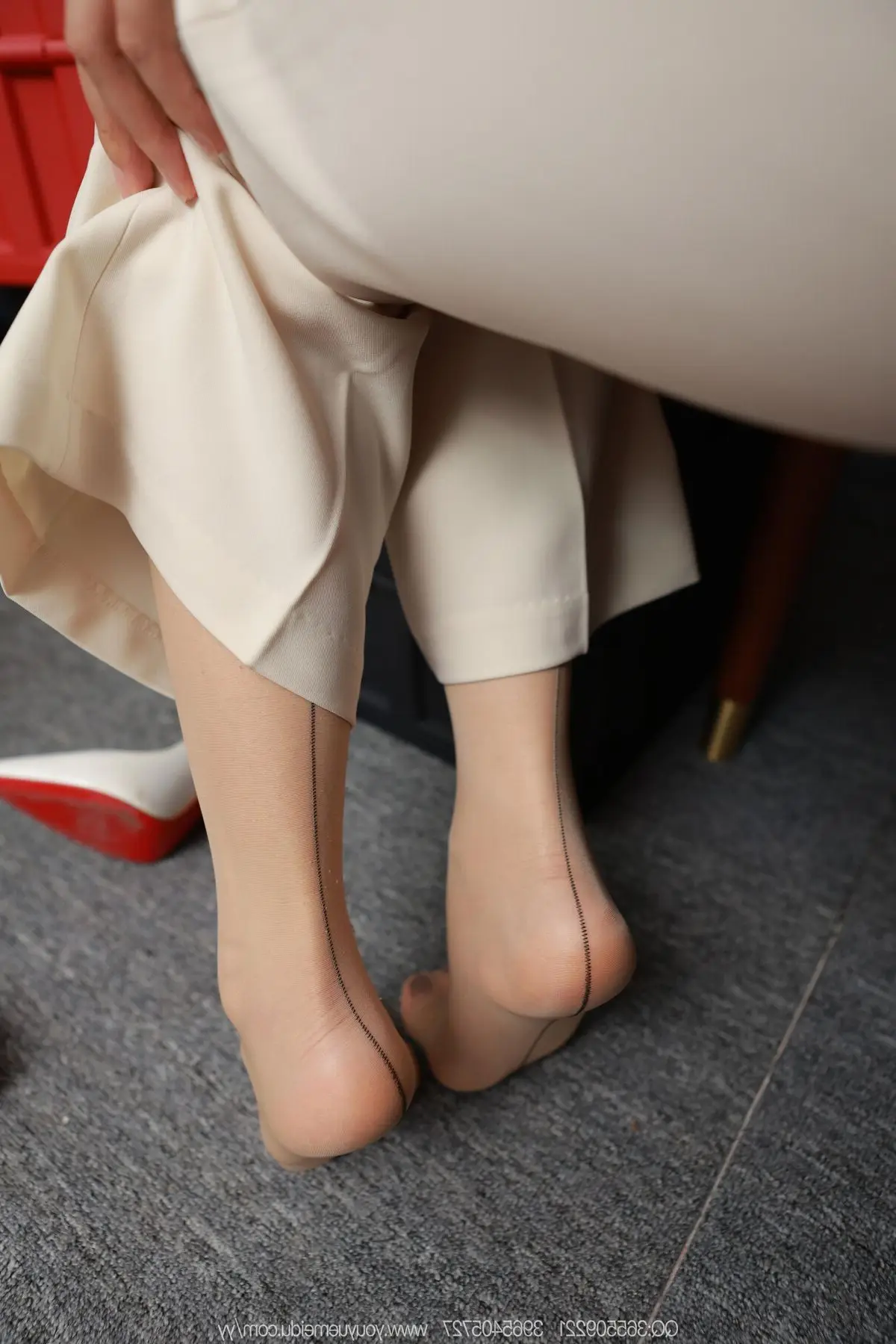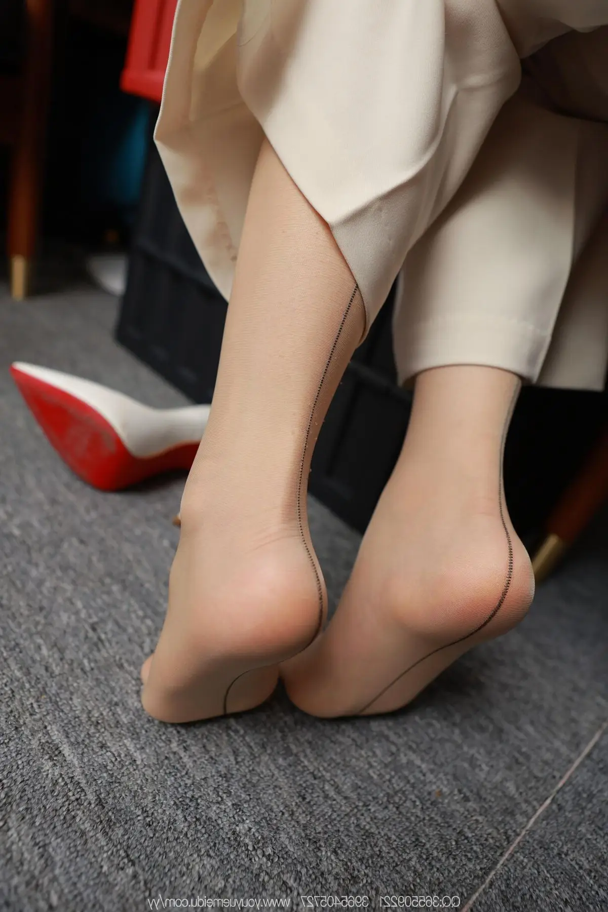 This captivating image is a highlight from the IESS Yisiquxiang collection, showcasing the refined elegance of Chinese model Xiao Jie. The focus is drawn to her gracefully posed legs, clad in chic cream trousers and delicate sheer stockings. A striking red-soled high heel adds a touch of luxurious allure, emphasizing her sophisticated style. Xiao Jie's relaxed yet poised stance exudes confidence and grace, making this a truly compelling visual. As part of the extensive SXJ No.2098 series, this photograph offers a glimpse into her distinctive charm and fashion sensibility, capturing every intricate detail. It's an artistic portrayal of beauty and poise.#IESS #XiaoJie #LegsAndHeels #SheerStockings #ChineseModel #ElegantFashion #OfficeLady #OL