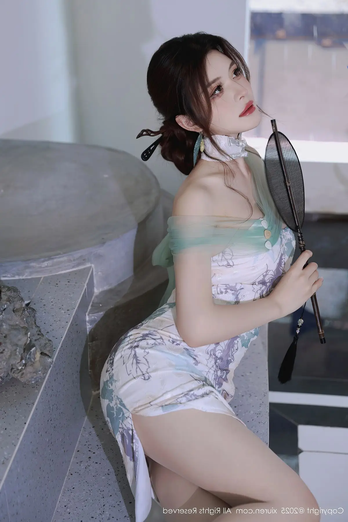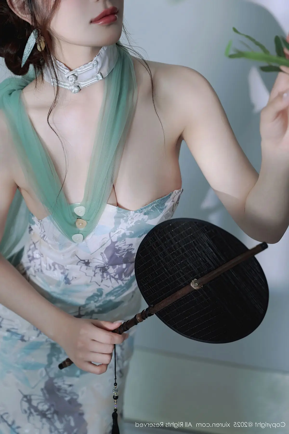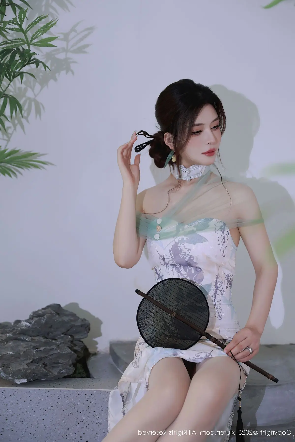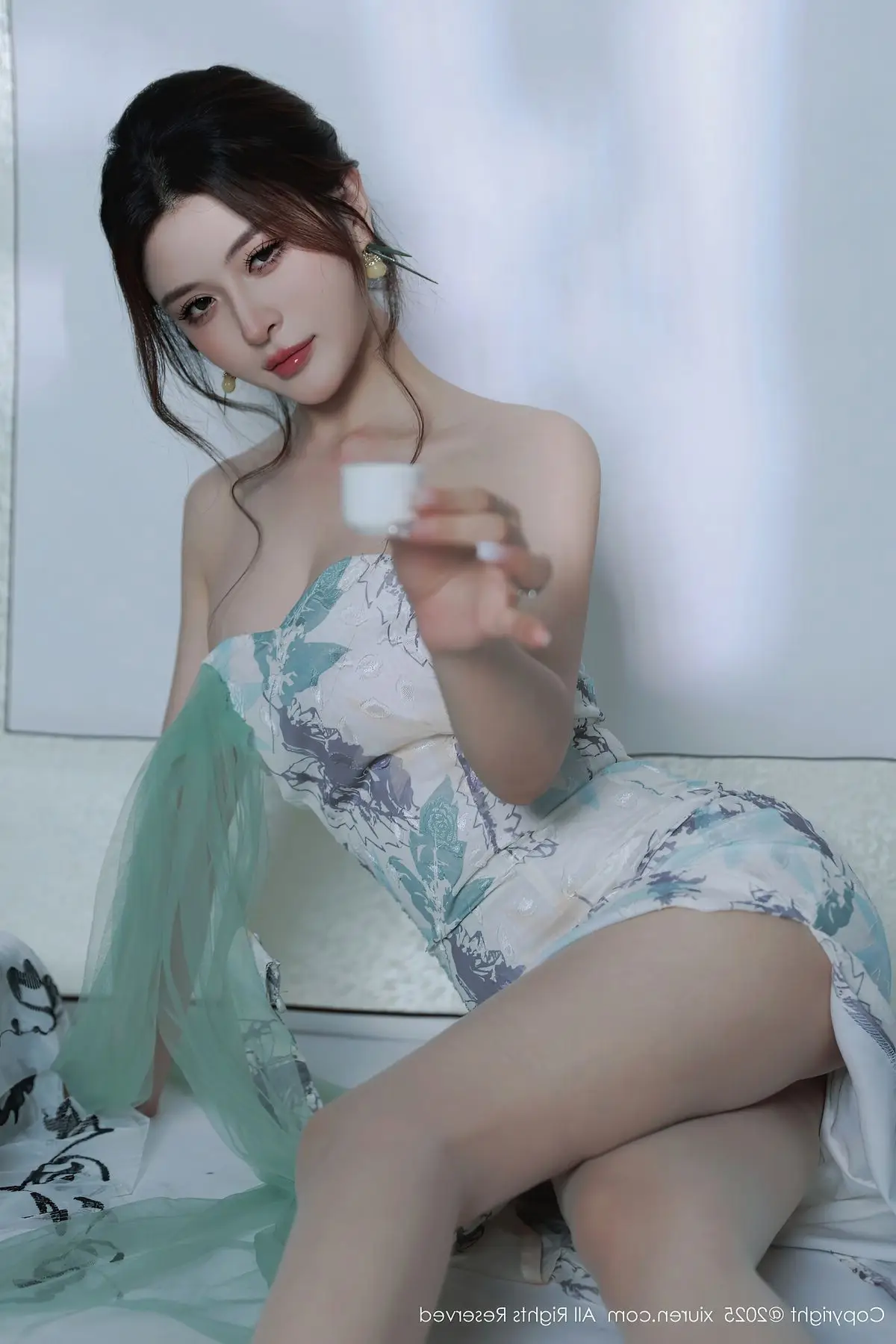 In this enchanting capture from XiuRen No.10694, model A Yi Sha radiates a serene yet captivating beauty. She is adorned in an exquisite halter-neck dress, featuring delicate patterns and soft, muted colors that gracefully highlight her slender silhouette. Her dark hair is elegantly styled upwards, complemented by a traditional hairpin, creating a harmonious blend of classic charm and contemporary fashion. A Yi Sha's gentle gaze and demure expression, coupled with her graceful pose, evoke a sense of intrigue and admiration. This image beautifully showcases not only a unique fashion statement but also the alluring, sophisticated, and poetic essence of Oriental beauty, inviting viewers to delve deeper into its exquisite details.#AyiSha #XiuRen #OrientalBeauty #ElegantFashion #HalterDress