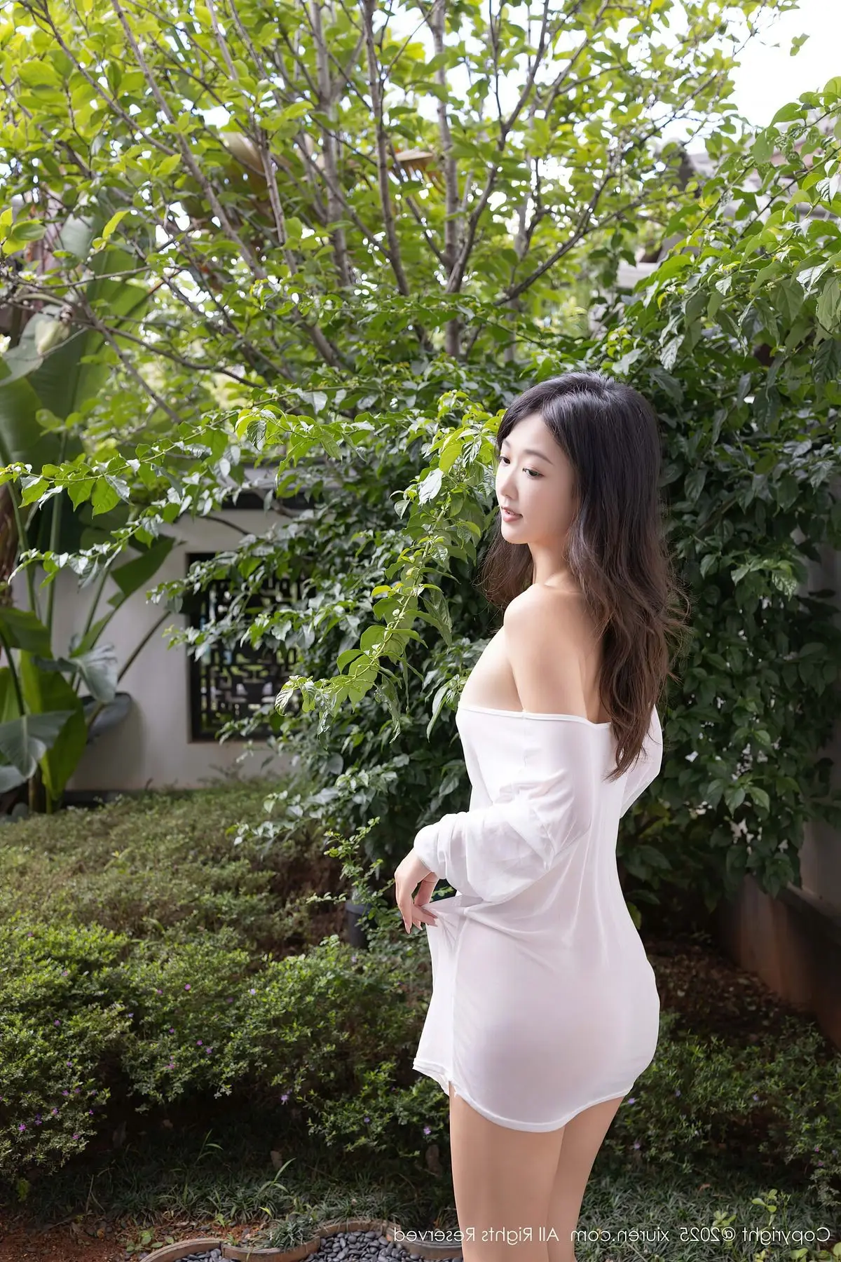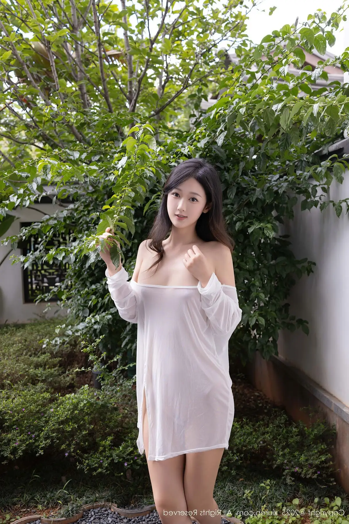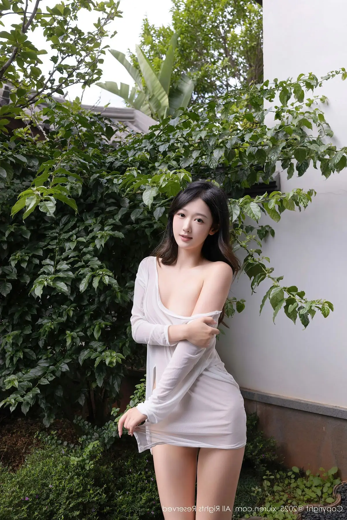 Immerse yourself in the gentle and ethereal beauty of Tang An Qi through the unique XiuRen photo set No.10662. Against a lush green natural backdrop, Tang An Qi captivates with her delicate white sheer attire, highlighting her slender figure and captivating long legs. Every gesture and gaze exudes natural grace and charm, blending seamlessly with the vibrant greenery. The soft sunlight filtering through the leaves further enhances the model's pure beauty. This collection not only portrays her physical allure but also conveys a sense of peace and tranquility in an outdoor setting, inviting viewers to admire. These are exquisite moments showcasing professional model photography and the photographer's artistic flair, offering a visually stunning experience.#TangAnQi #XiuRenModel #AsianBeauty #NaturalElegance #OutdoorPhotoshoot