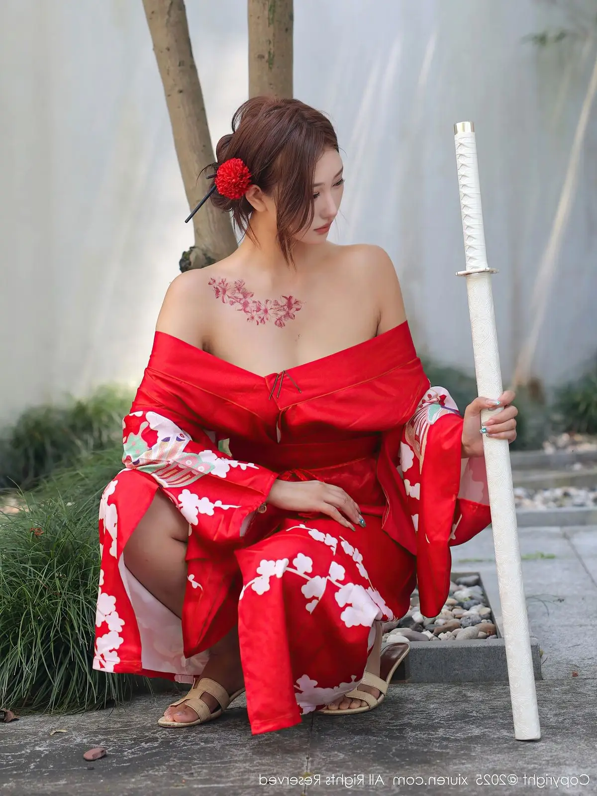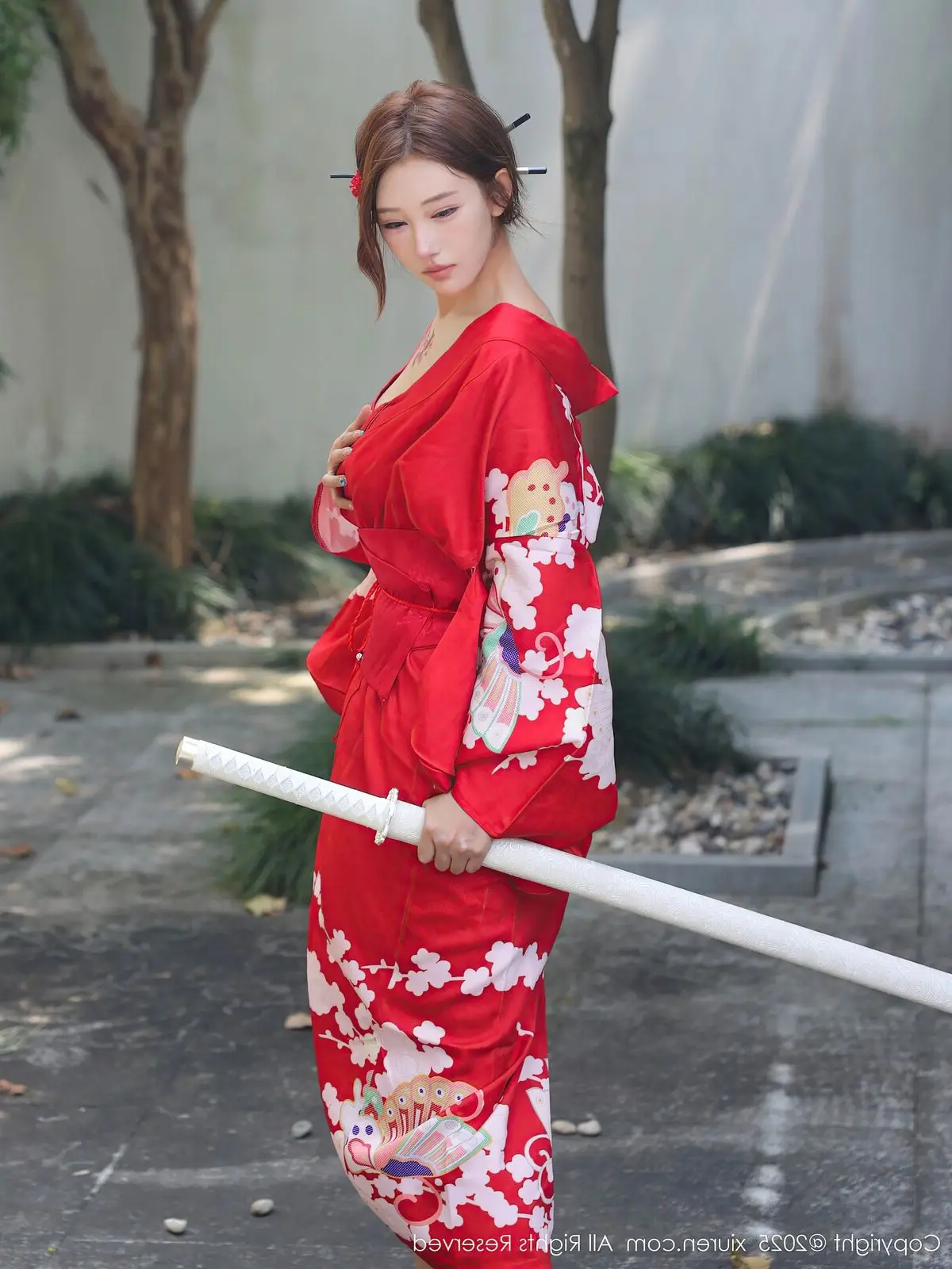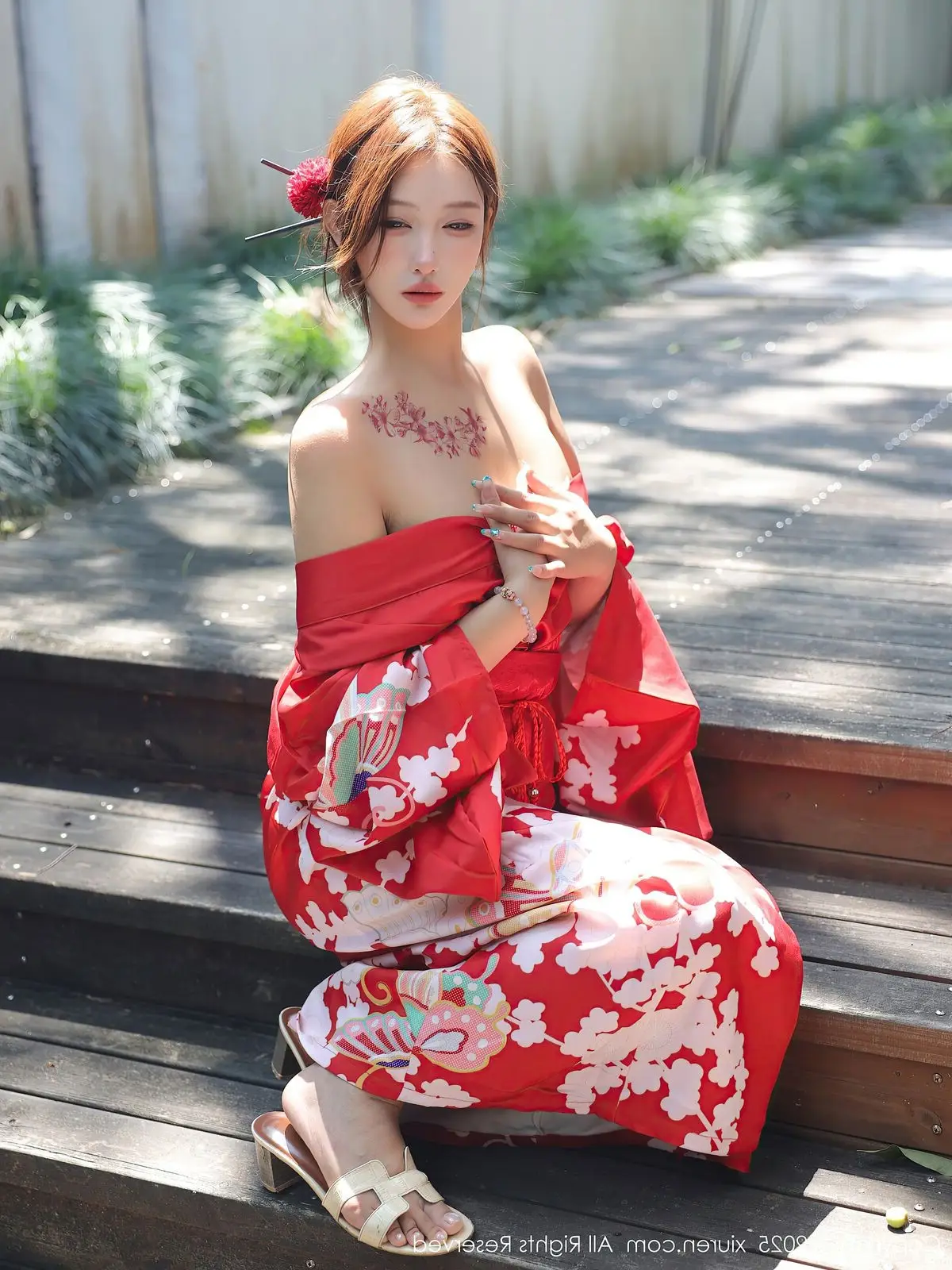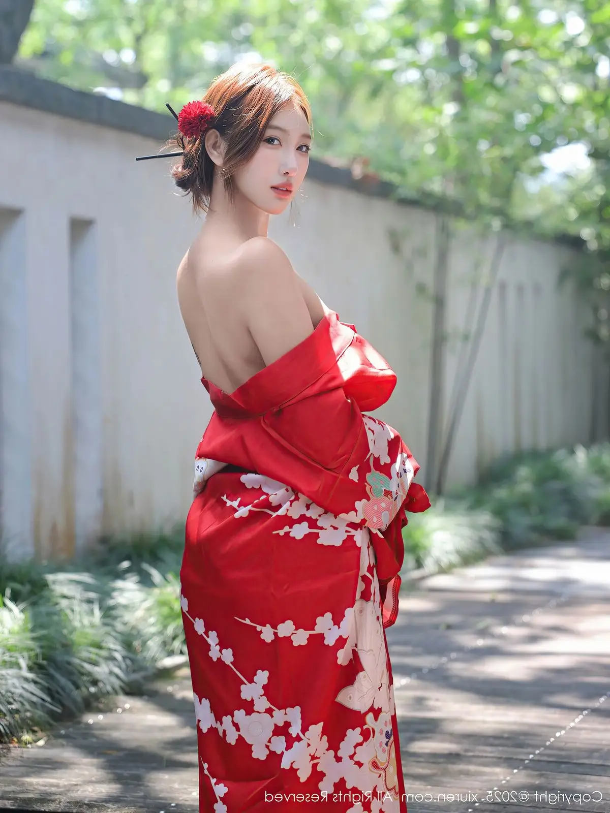 Jin Yun Xi Yuki: Enchanting Beauty in a Fiery Red Kimono, Captivating Every Gaze - XiuRen No.10683