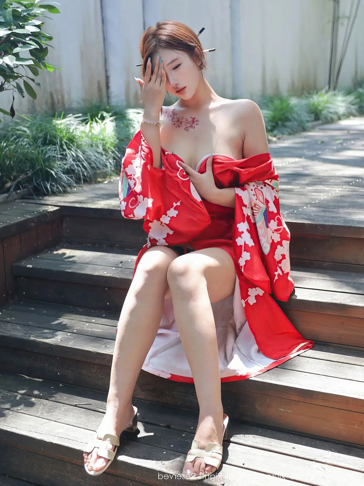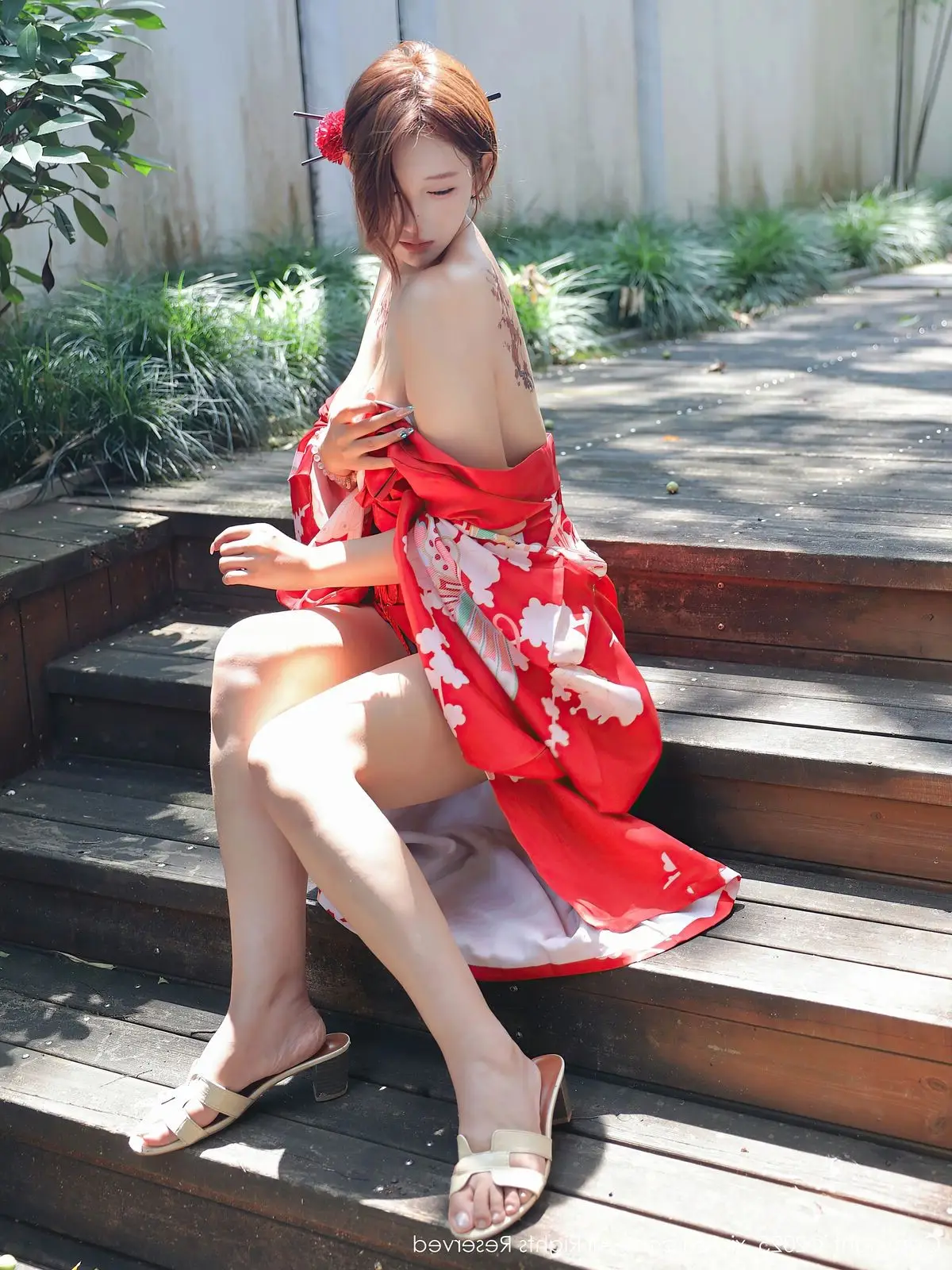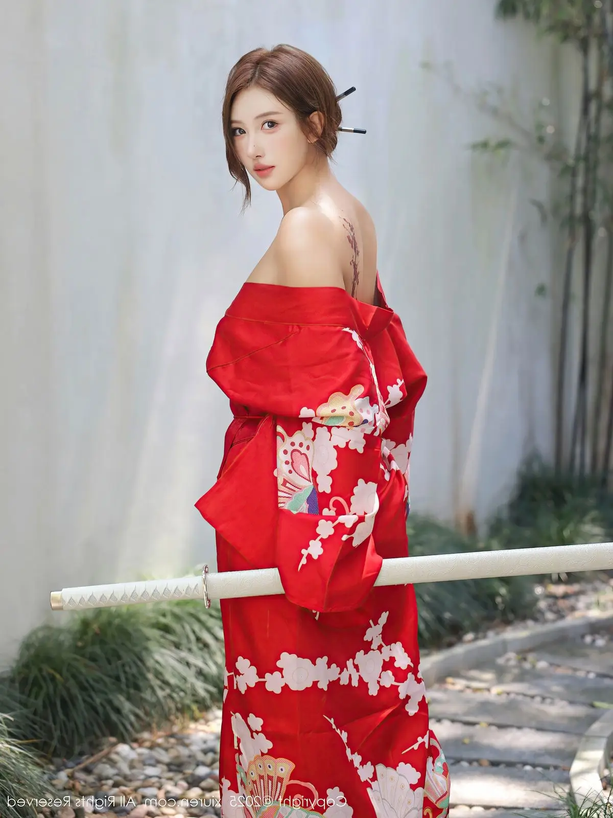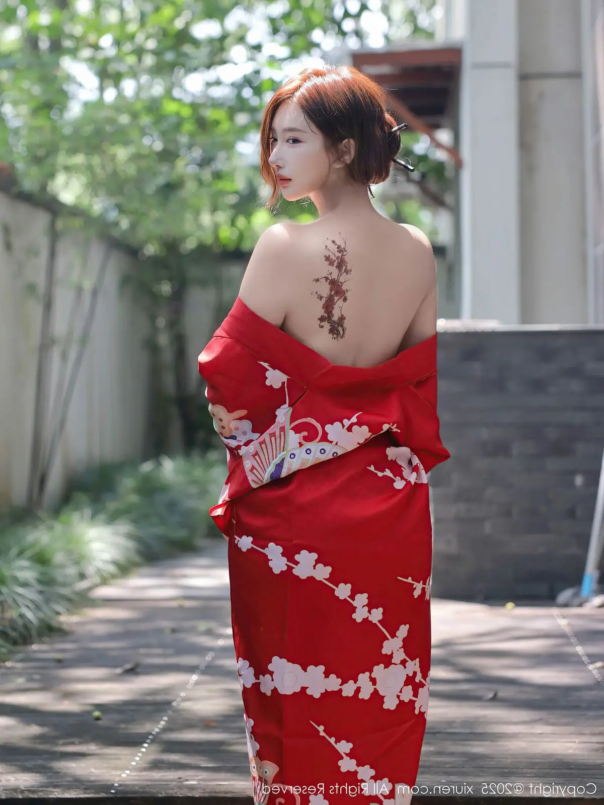 Jin Yun Xi Yuki: Enchanting Beauty in a Fiery Red Kimono, Captivating Every Gaze - XiuRen No.10683