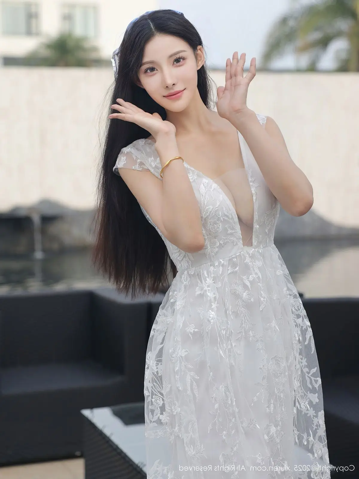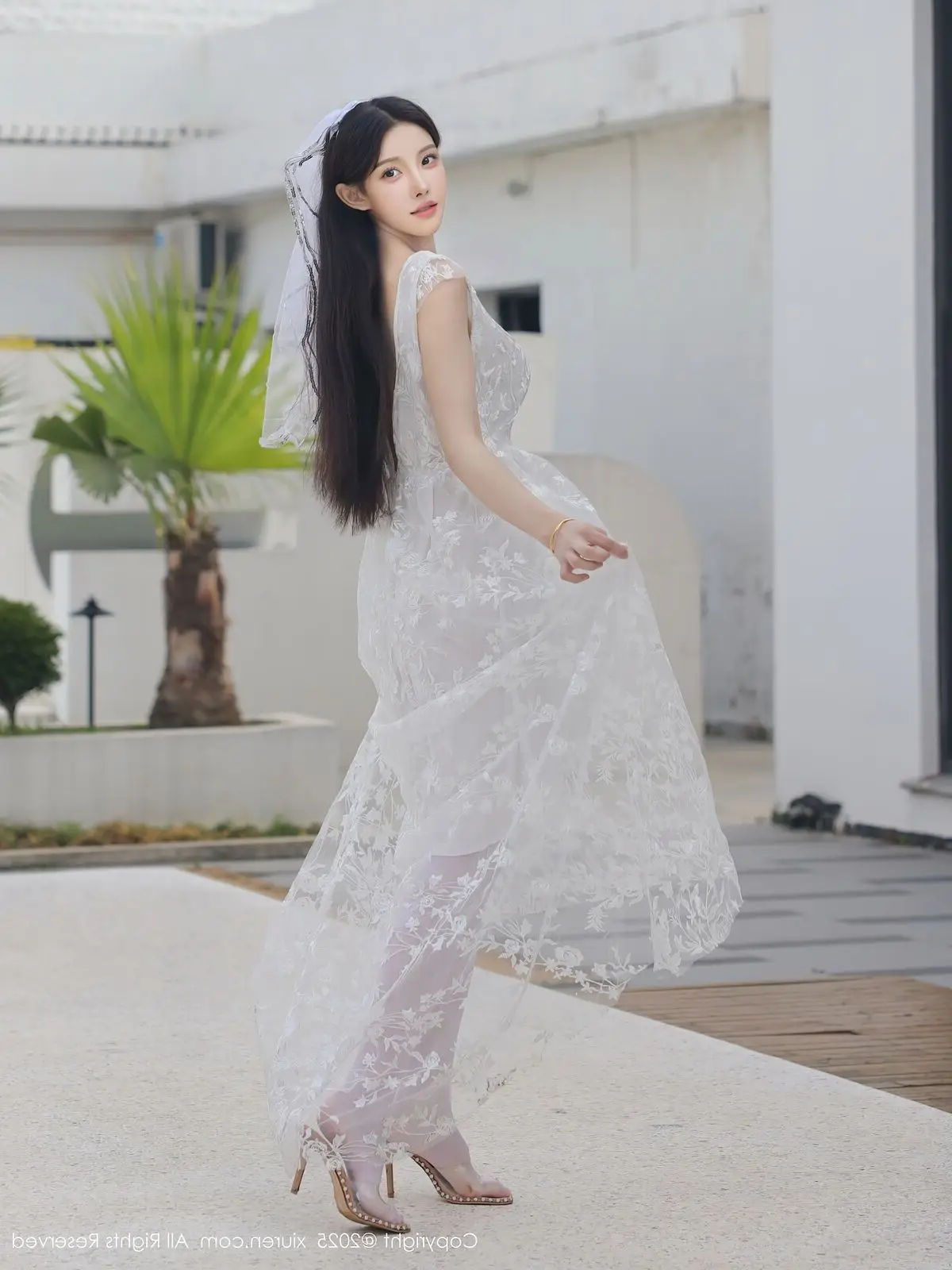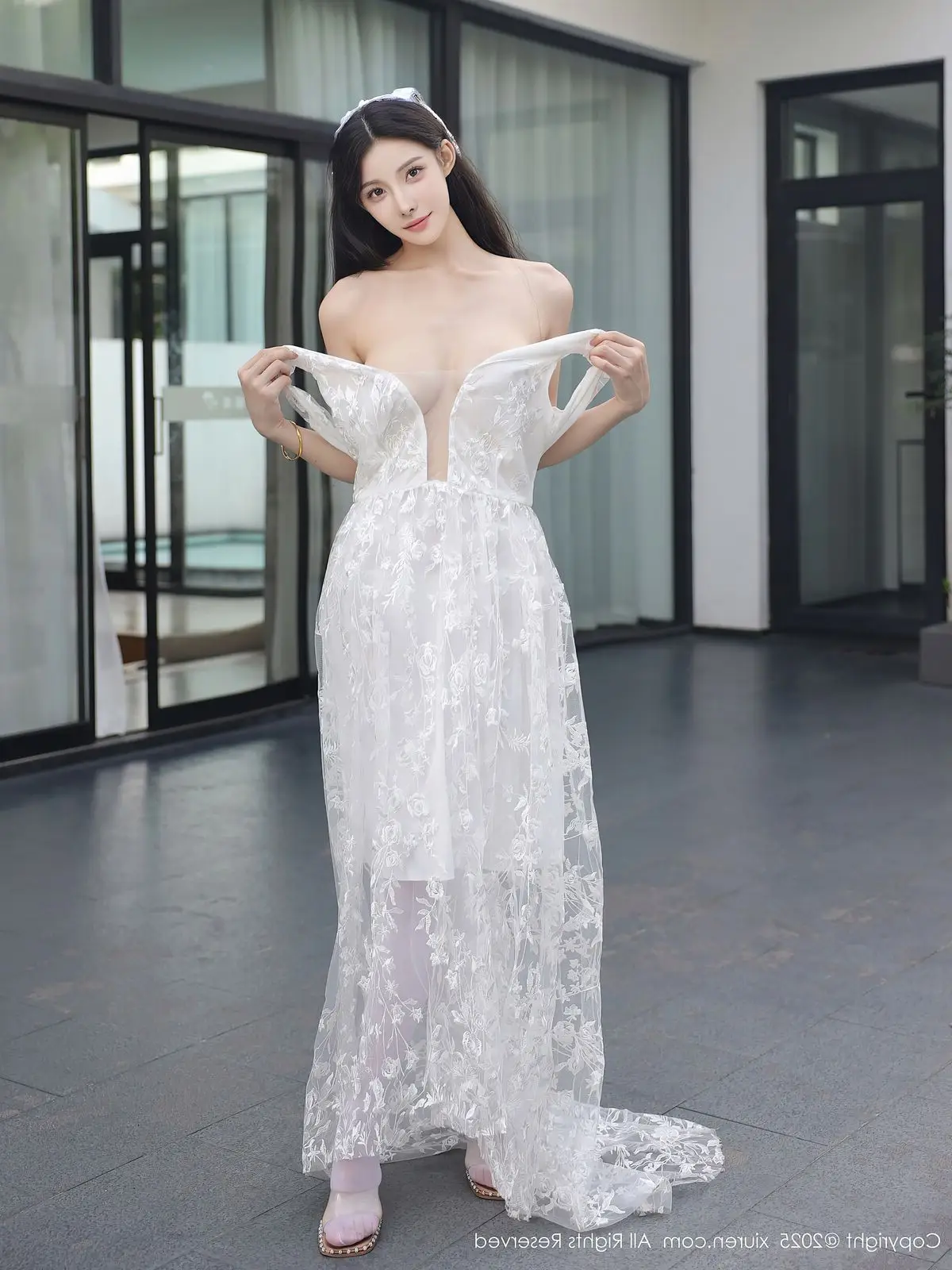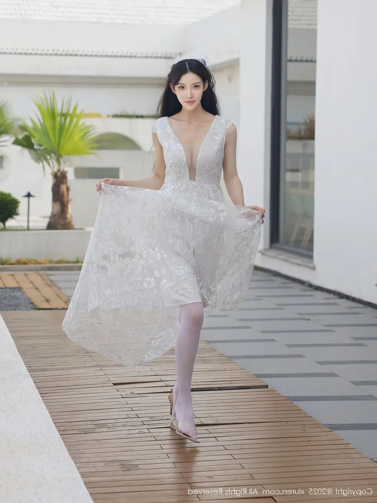 In this captivating XiuRen No.10661 collection model Li Shuang Er showcases her enchanting presence. She gracefully poses in a pristine white gown featuring an alluring design and delicate lace fabric. The flowing dress billows with her every step creating an elegant and refined silhouette. Li Shuang Er's long dark hair gently sways in the breeze highlighting her delicate features and an expressive gaze that draws viewers in. Against a backdrop of modern white architecture and reflective glass her pure beauty truly shines. This harmonious blend of fashion poise and setting crafts an enchanting visual narrative embodying Li Shuang Er's unique blend of allure and sophistication.#LiShuangEr #XiuRenNo10661 #SexyWhiteDress #ElegantModel #AlluringStyle
