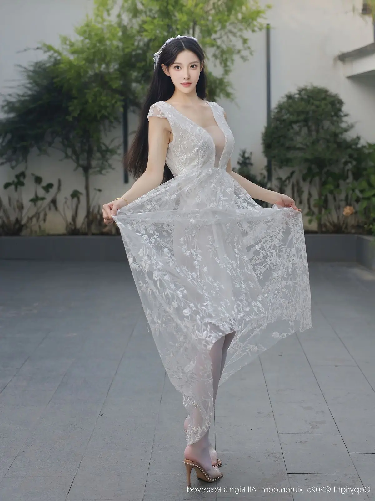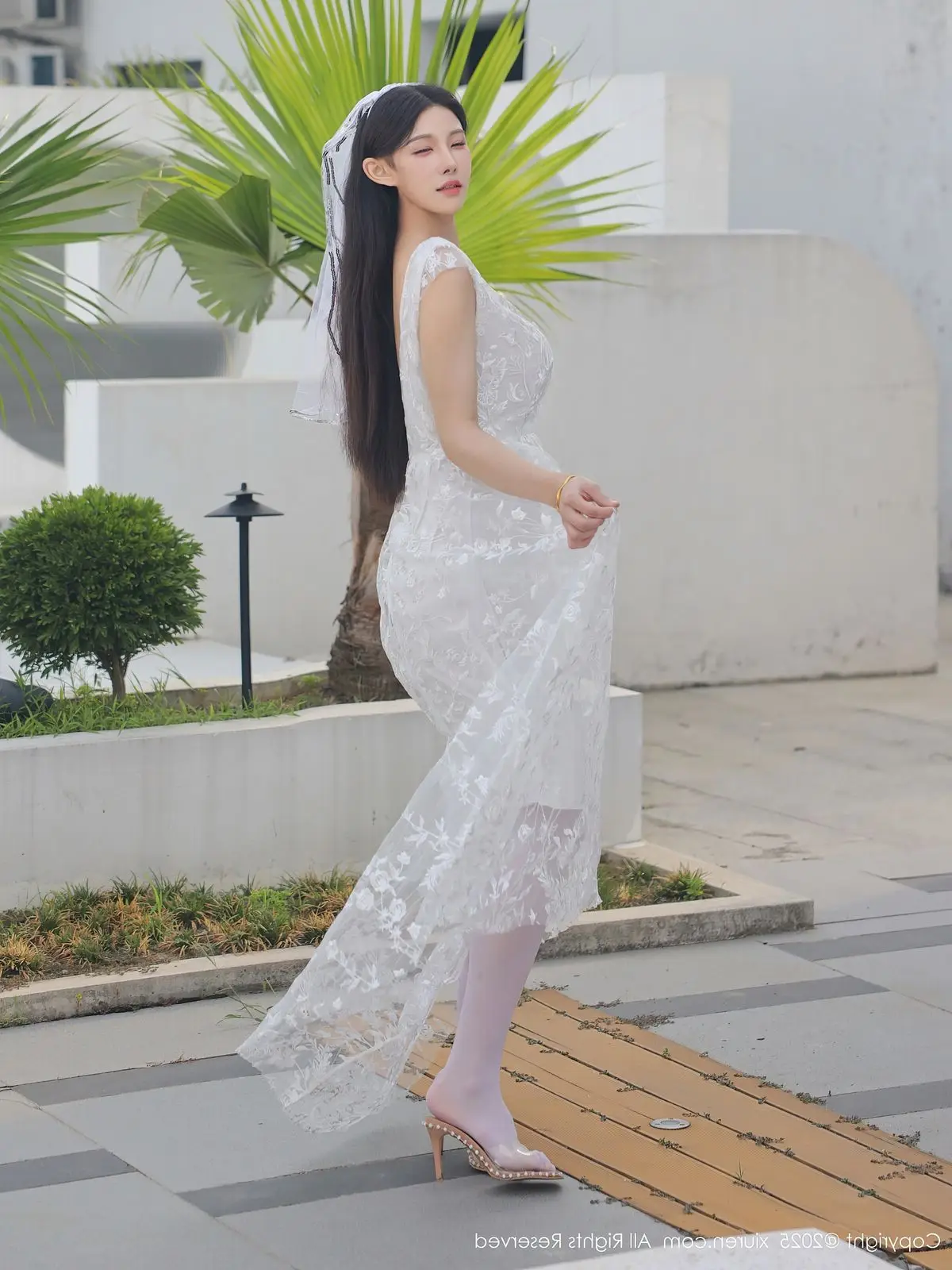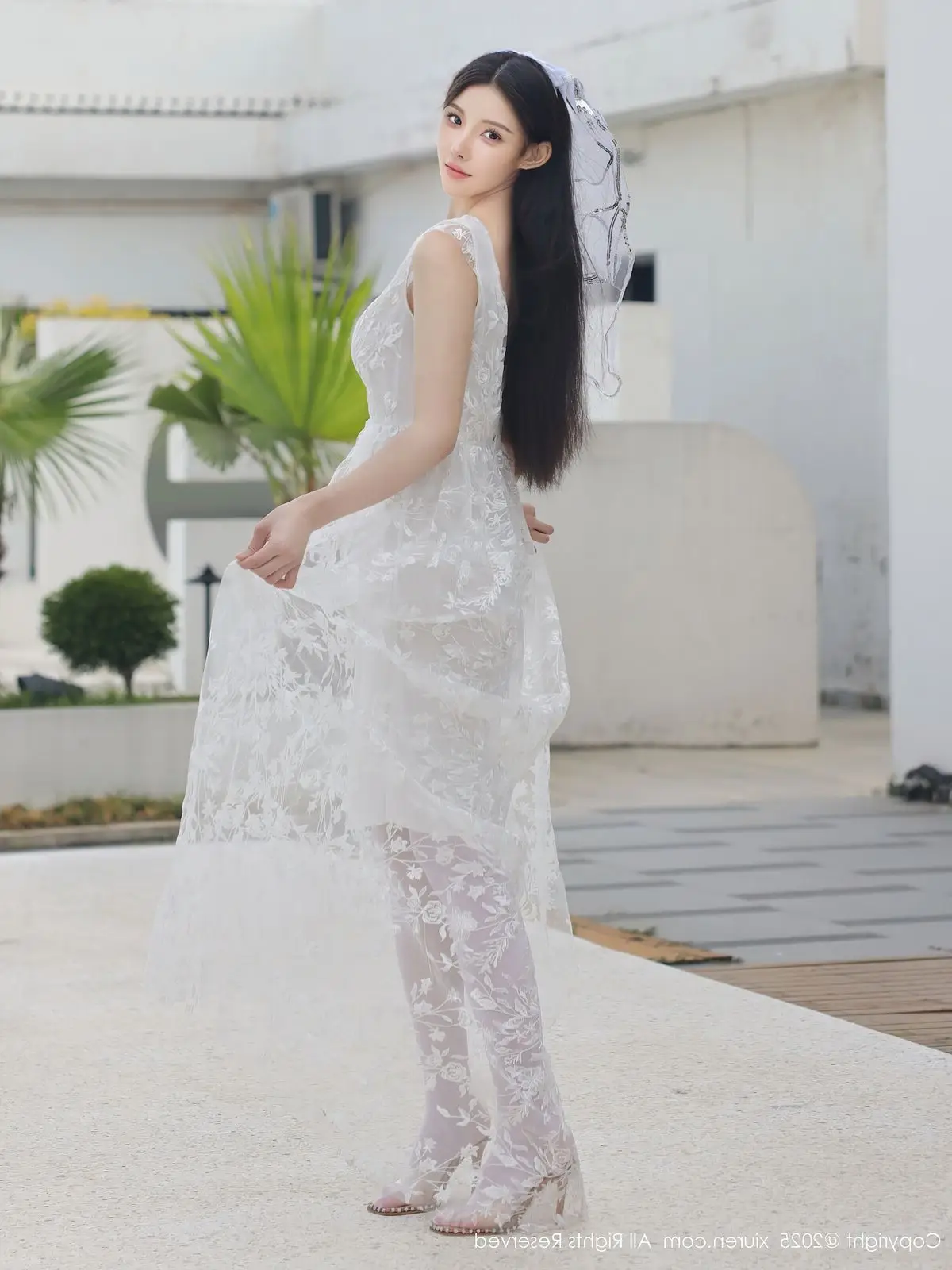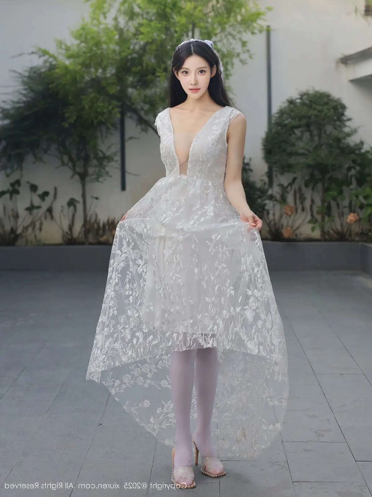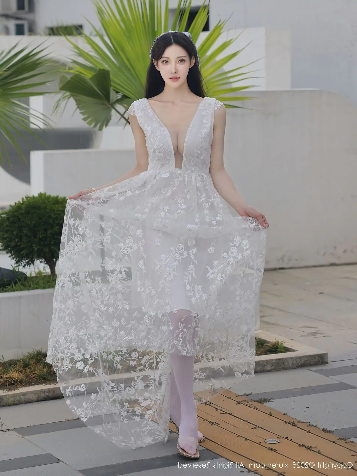 In this captivating XiuRen No.10661 collection model Li Shuang Er showcases her enchanting presence. She gracefully poses in a pristine white gown featuring an alluring design and delicate lace fabric. The flowing dress billows with her every step creating an elegant and refined silhouette. Li Shuang Er's long dark hair gently sways in the breeze highlighting her delicate features and an expressive gaze that draws viewers in. Against a backdrop of modern white architecture and reflective glass her pure beauty truly shines. This harmonious blend of fashion poise and setting crafts an enchanting visual narrative embodying Li Shuang Er's unique blend of allure and sophistication.#LiShuangEr #XiuRenNo10661 #SexyWhiteDress #ElegantModel #AlluringStyle
