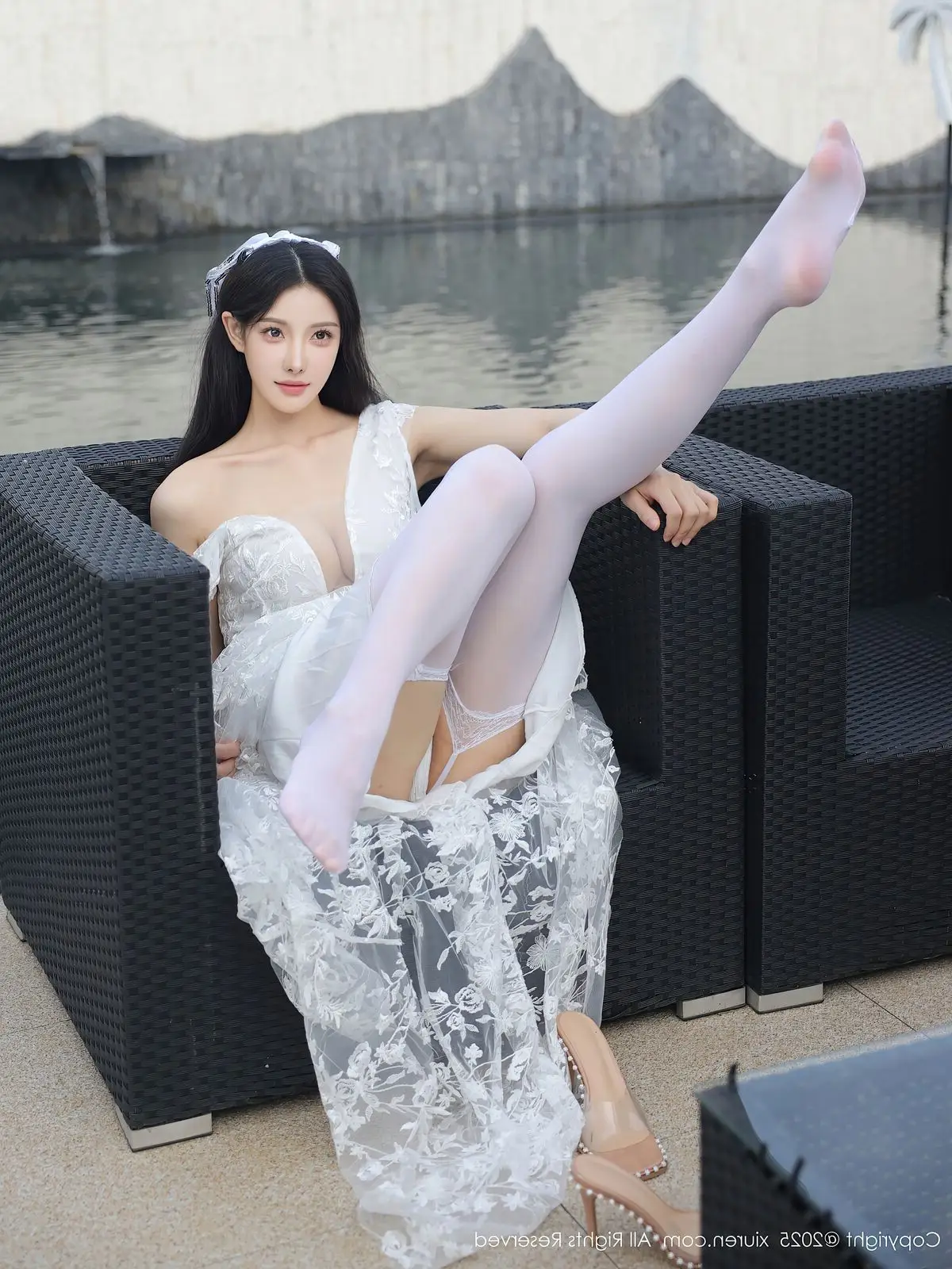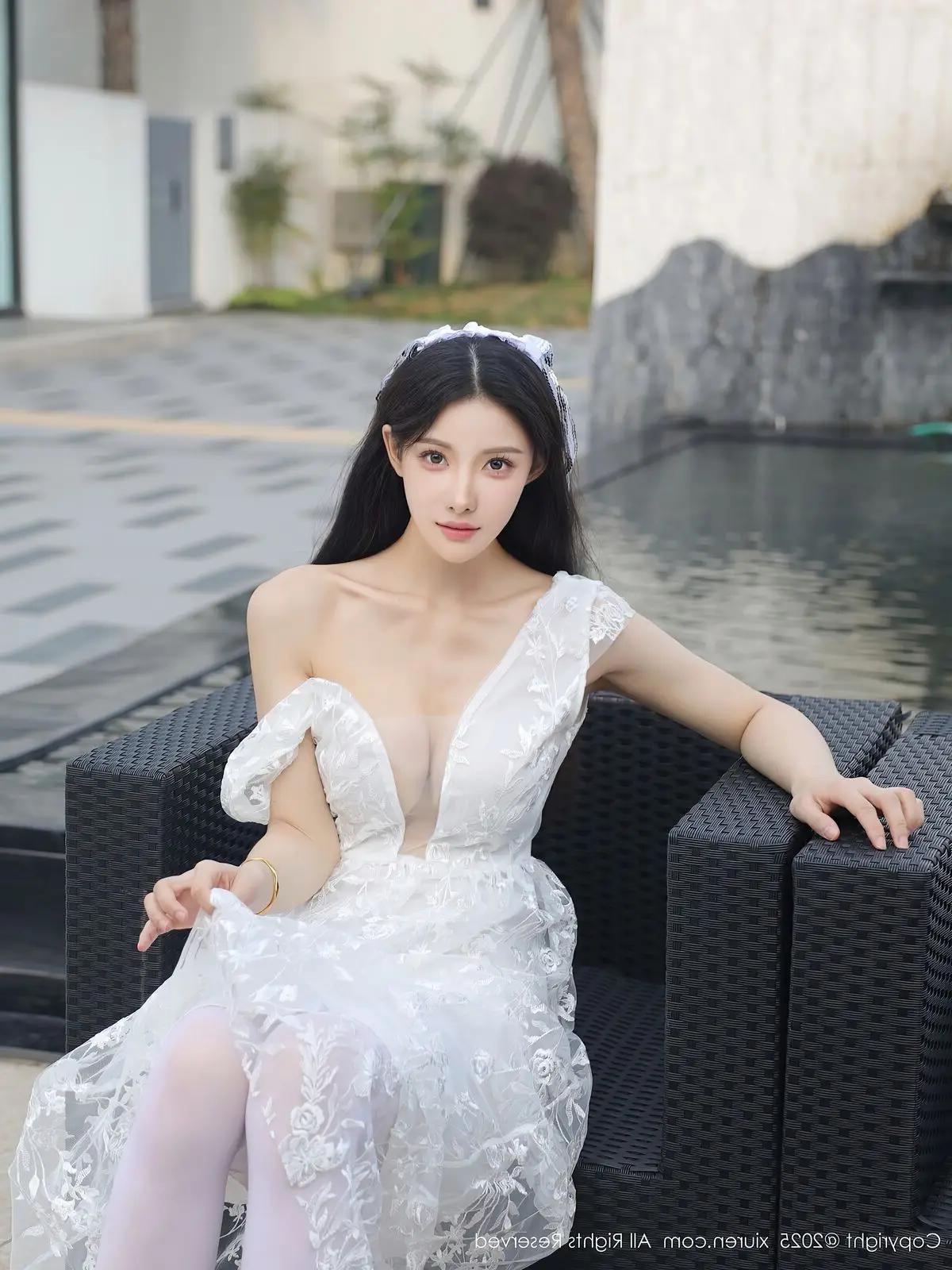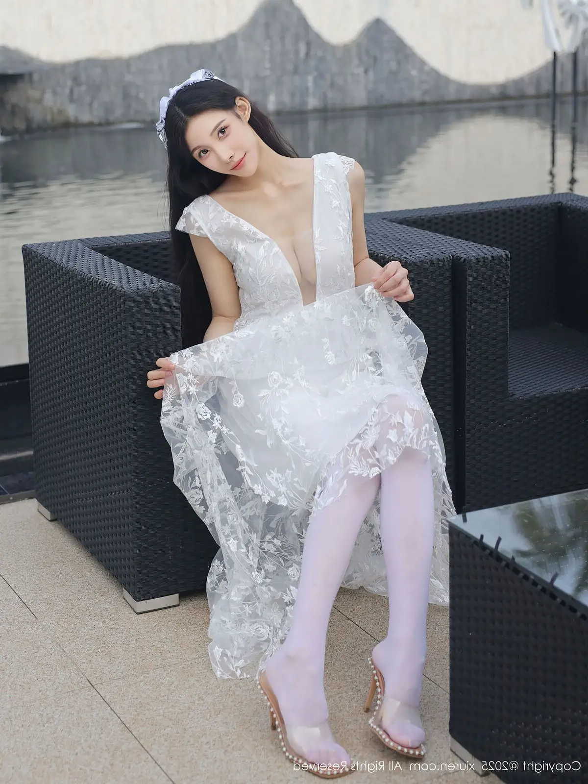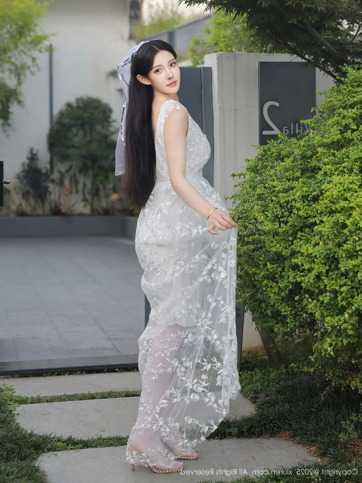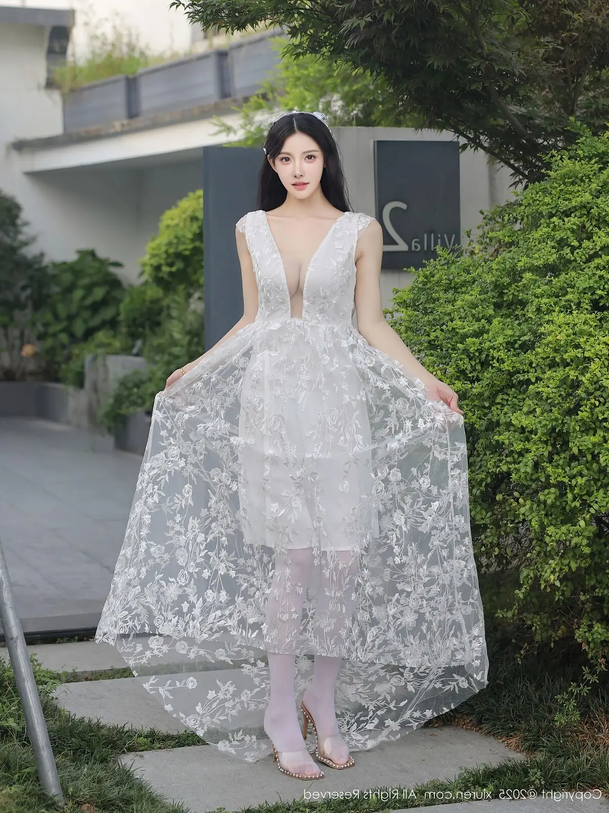 In this captivating XiuRen No.10661 collection model Li Shuang Er showcases her enchanting presence. She gracefully poses in a pristine white gown featuring an alluring design and delicate lace fabric. The flowing dress billows with her every step creating an elegant and refined silhouette. Li Shuang Er's long dark hair gently sways in the breeze highlighting her delicate features and an expressive gaze that draws viewers in. Against a backdrop of modern white architecture and reflective glass her pure beauty truly shines. This harmonious blend of fashion poise and setting crafts an enchanting visual narrative embodying Li Shuang Er's unique blend of allure and sophistication.#LiShuangEr #XiuRenNo10661 #SexyWhiteDress #ElegantModel #AlluringStyle