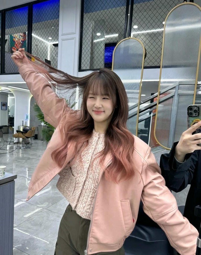 This image captures the radiant beauty of a young woman with stunning red pink ombre dyed hair. The long gently wavy hairstyle combined with a delicate color transition from light pink tones at the roots to vibrant red at the ends creates an incredibly striking and unique style. This is not just a fashionable haircut but also a statement of confidence and the owner's distinctive aesthetic taste. This red pink ombre hair will surely help you attract all eyes and assert your individual style. It is the perfect choice for anyone looking to refresh themselves and shine in a captivating way. The voluminous hair with lively colors brings a youthful and energetic appearance making the girl look charming and full of appeal.
