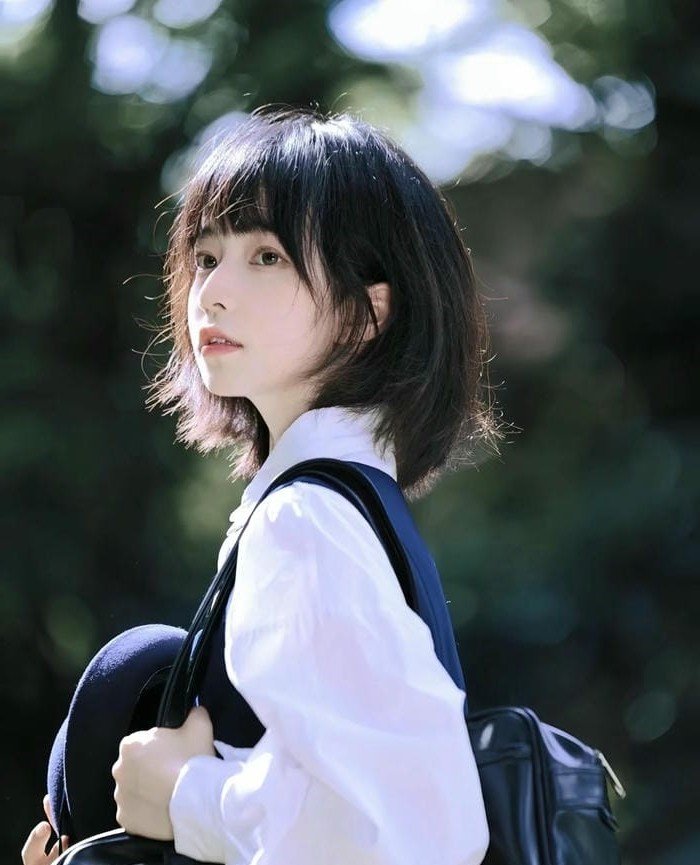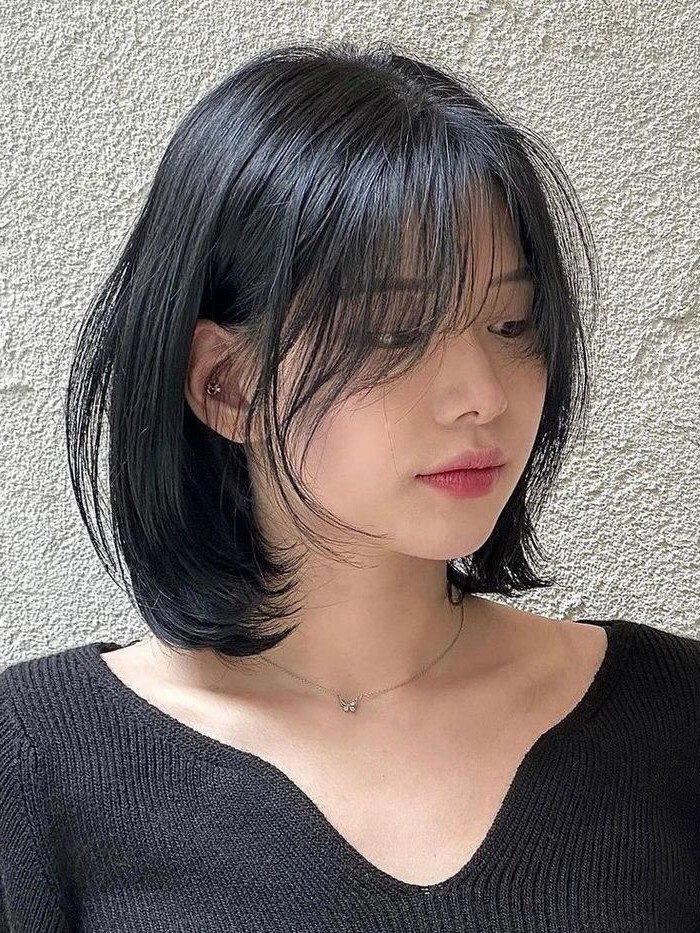 This captivating image features a young woman showcasing a skillfully layered bob haircut exuding a modern and charming appeal. This popular hairstyle not only accentuates her delicate facial features but also cleverly conceals imperfections making her face appear slimmer and more balanced especially ideal for those with round faces. With gently layered strands the hair creates natural volume offering a dynamic and youthful vibe. This style radiates a chic and confident personality making the woman stand out and capture every gaze. It is truly an excellent choice for anyone looking to transform their look towards a fashionable and stylish direction.