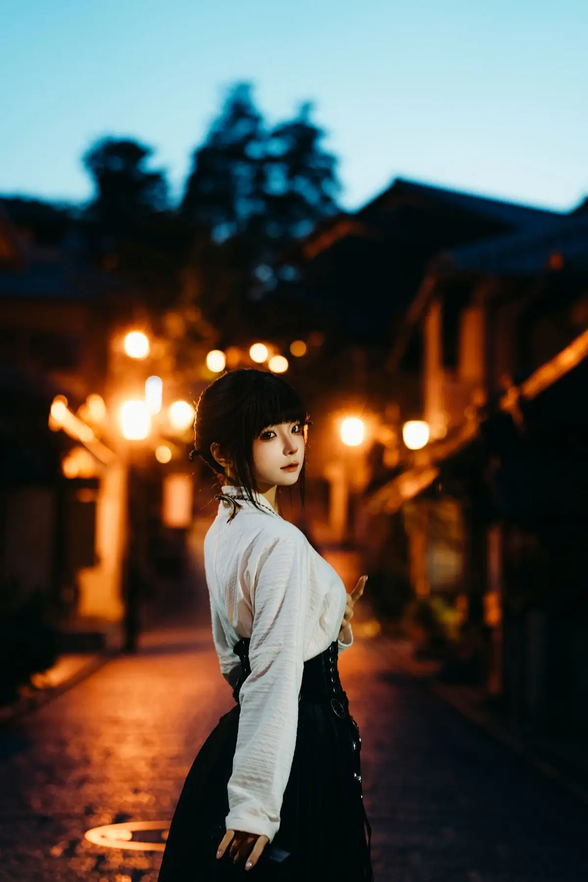 Immerse yourself in the mystical ambiance of an autumn night with Coser Chunmomo in her Autumn Quest Part02 photo set. This image beautifully captures her serene elegance in traditional-inspired attire, with intricately styled dark hair, standing gracefully beside an ancient wooden lattice wall under soft, ambient lighting. Chunmomo’s profound gaze and captivating demeanor create a poetic scene, evoking a sense of tranquility and nostalgic charm. This piece is part of her autumn journey, where traditional beauty and the coser’s grace blend seamlessly, offering an impressive and emotionally resonant visual experience.
