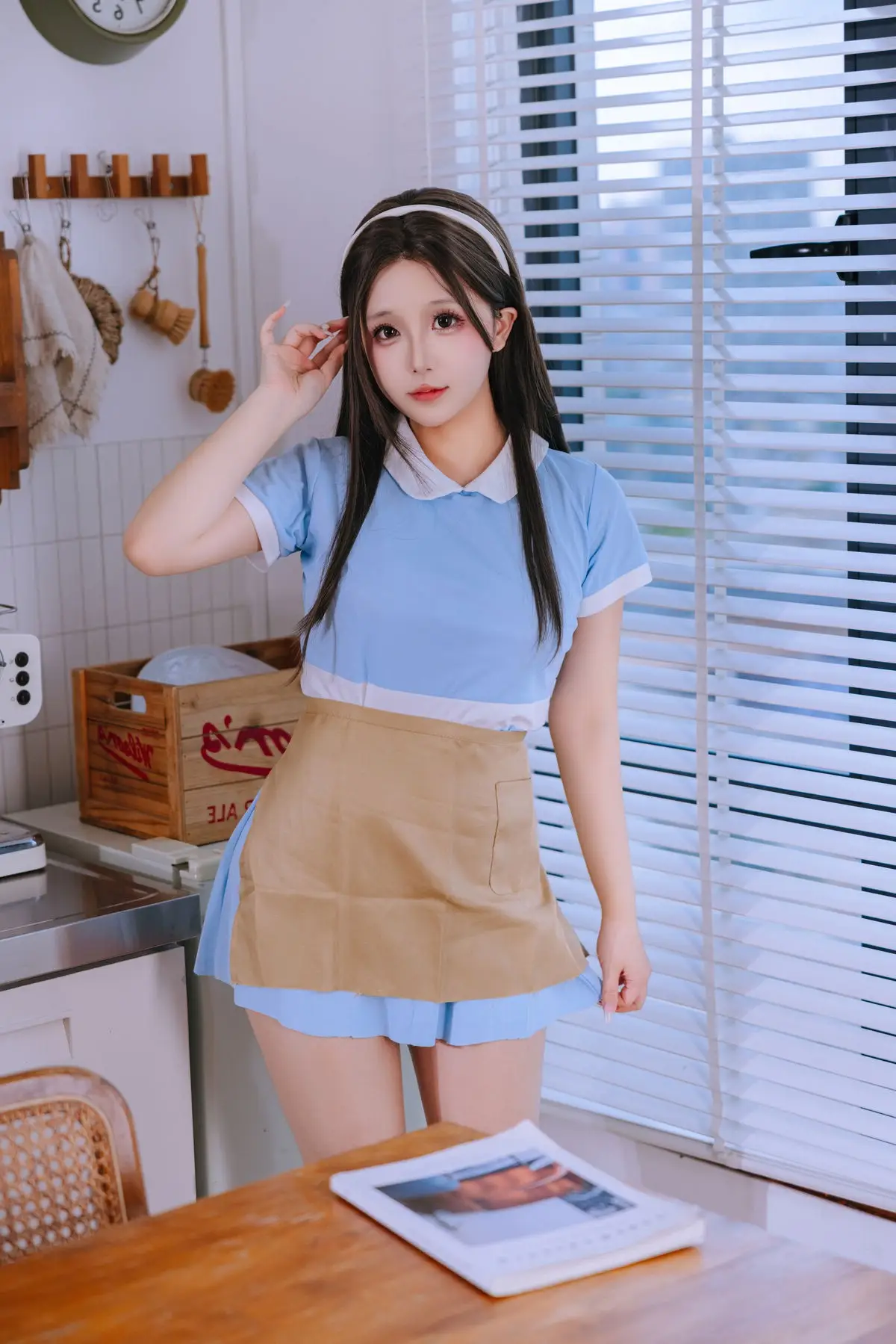 Immerse yourself in the sweet world with Coser Hina Jiao in the special photo series "Cake Salesperson Part02". In this picture, Hina Jiao transforms into a charming cake seller, donning a gentle light blue dress and a delicate brown apron. Her soft smile and clear eyes radiate a pure, inviting beauty that captivates every gaze. The window setting with natural light highlights her fair skin and long, silky hair, creating a cozy and romantic atmosphere. Hina Jiao not only faithfully recreates the character but also infuses it with sweetness and sophistication, making viewers feel as if they've stepped into a dream bakery. This photo collection promises delightful and unforgettable moments.#Coser #HinaJiao #CakeSalesperson #CosplayGirl #SweetCosplay #HinaJiaoPart02