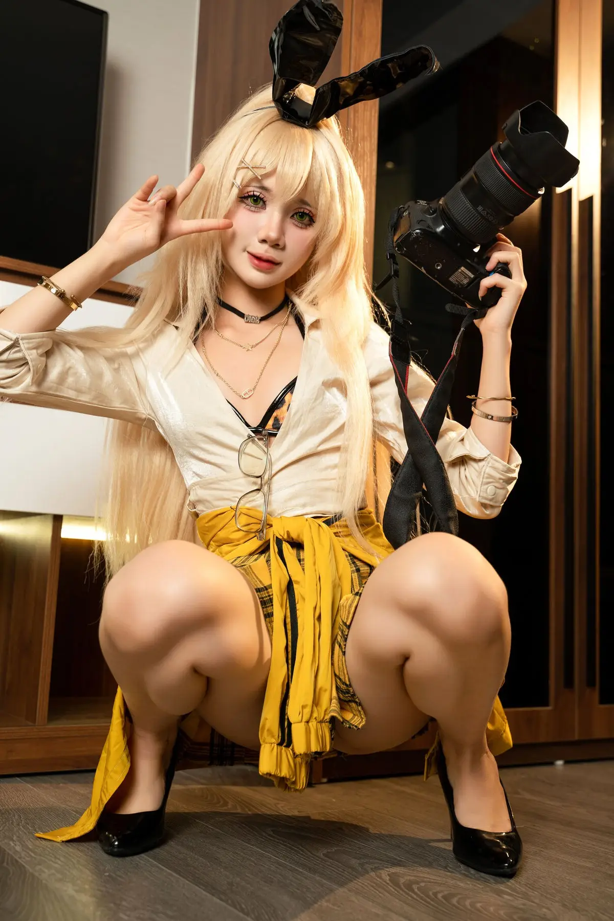 In this captivating Coser PoppaChan Rupee Part02 photoshoot PoppaChan masterfully embodies the enchanting character Rupee. Her radiant blonde hair and signature bunny ear headband perfectly capture Rupee's sweet yet vibrant essence. The yellow plaid skirt paired with a crisp white top and elegant black high heels creates a harmonious and alluring ensemble. Posed gracefully on the floor with her slender legs artfully displayed she exudes both confidence and charm. PoppaChan skillfully conveys Rupee's distinct personality offering a truly immersive and appealing cosplay experience. This collection is a must-see for fans of both Rupee and PoppaChan delivering exceptional artistry and captivating visuals.#Coser #PoppaChan #RupeeCosplay #NikkeGoddessOfVictory #CosplayGirl #AnimeCosplay