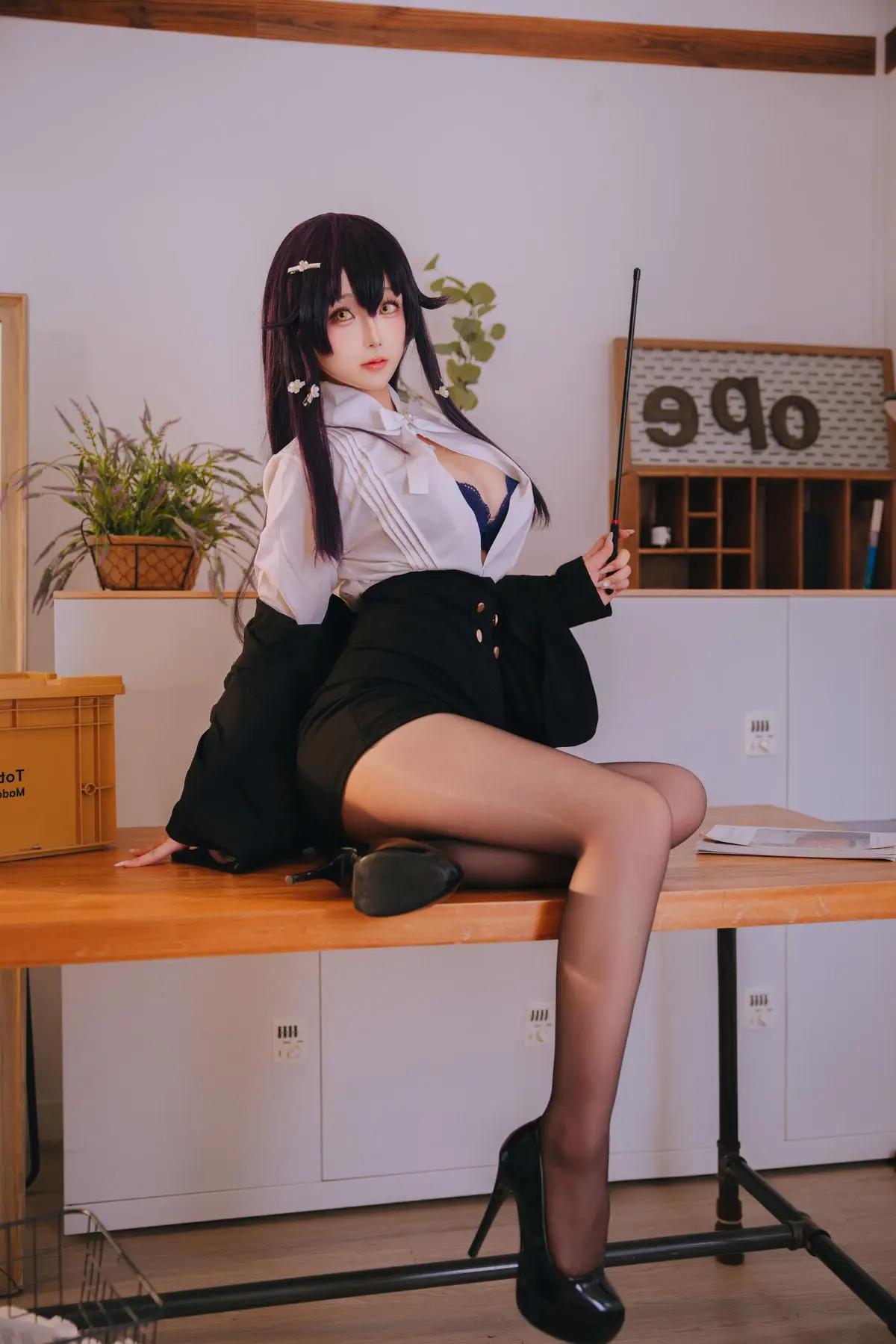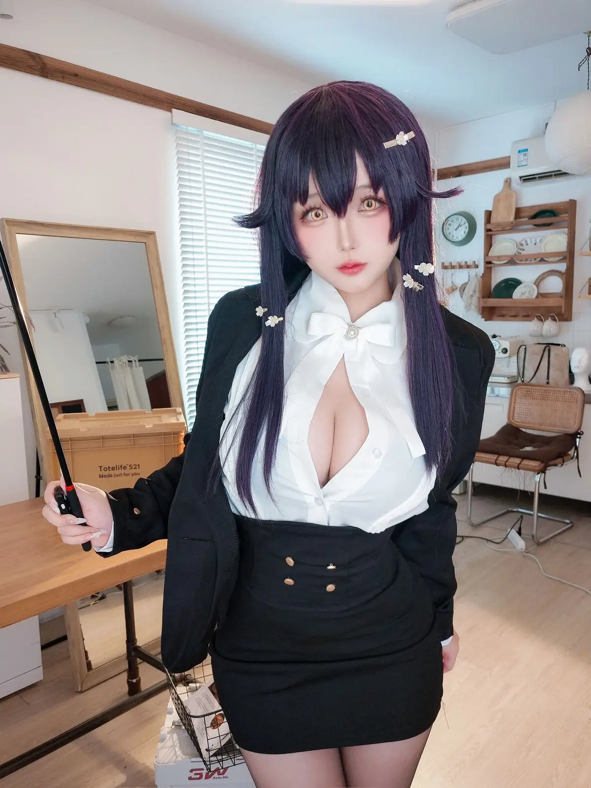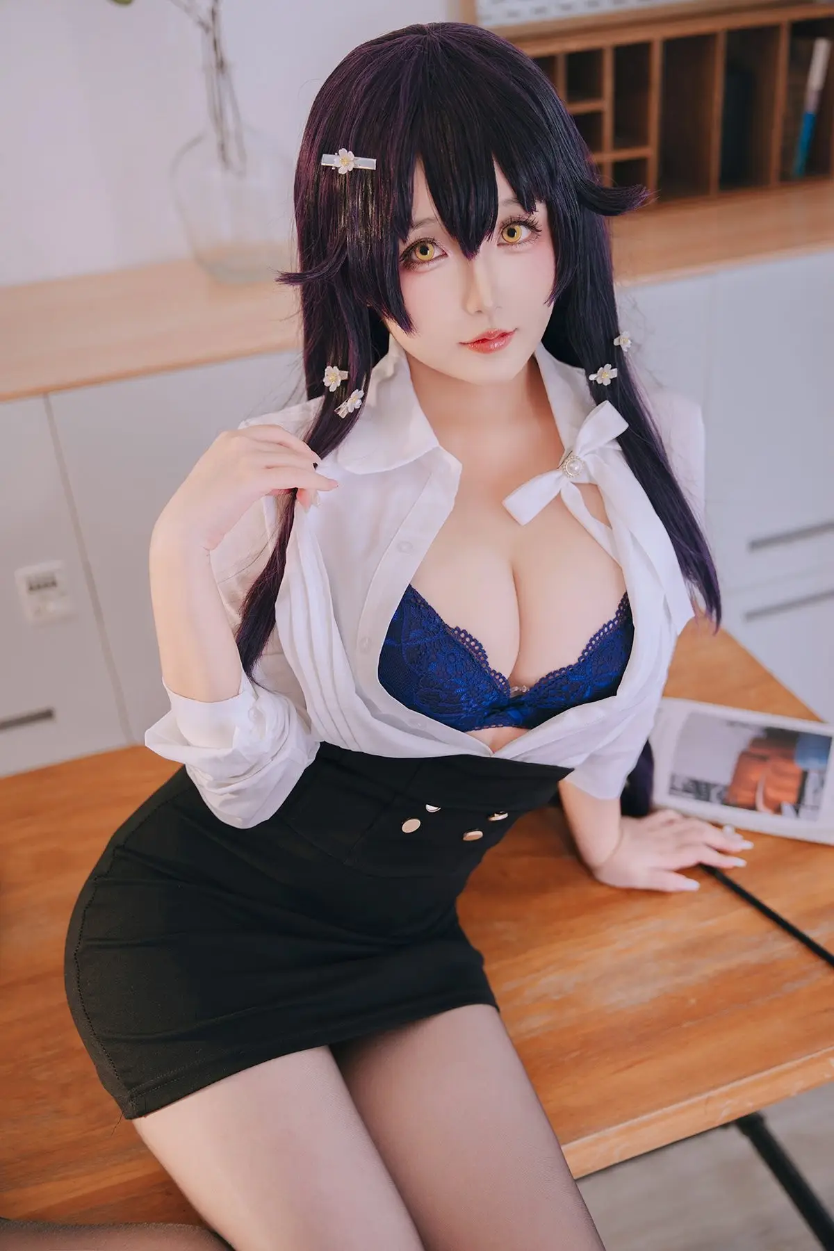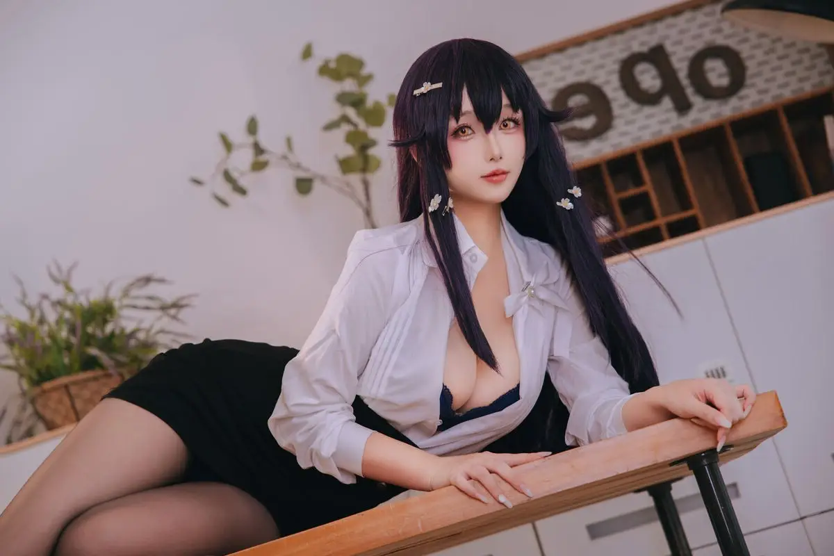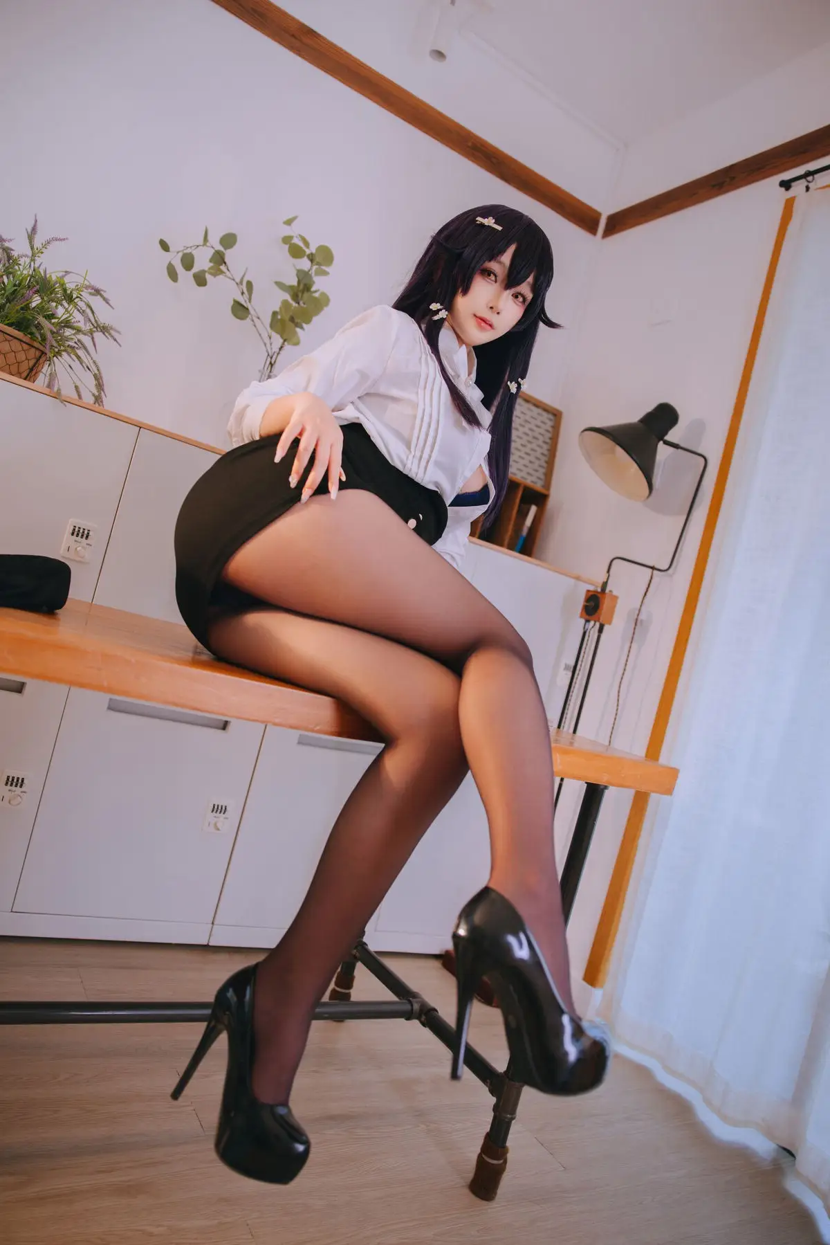 Immerse yourself in the captivating world of cosplay with Coser Hina Jiao in the 'My Wife's Guidance Class Part01' photo set. This image features Hina Jiao in elegant office attire, a pristine white shirt paired with a form-fitting black skirt, complemented by her signature purple hair and mesmerizing gaze. She appears to be preparing for a special guidance session, exuding a professional yet undeniably alluring aura. The simple yet cozy office backdrop further highlights Hina Jiao's confident and enigmatic presence. This is undoubtedly a 'class' that will keep viewers spellbound, where guidance comes not only from knowledge but also from the enchanting demeanor of the 'teacher'.#Coser #HinaJiao #CosplayGirl #MyWifesGuidanceClass #ElegantTeacher #OfficeCosplay