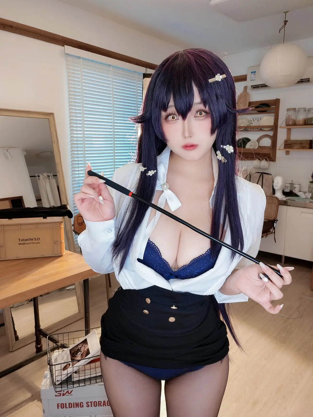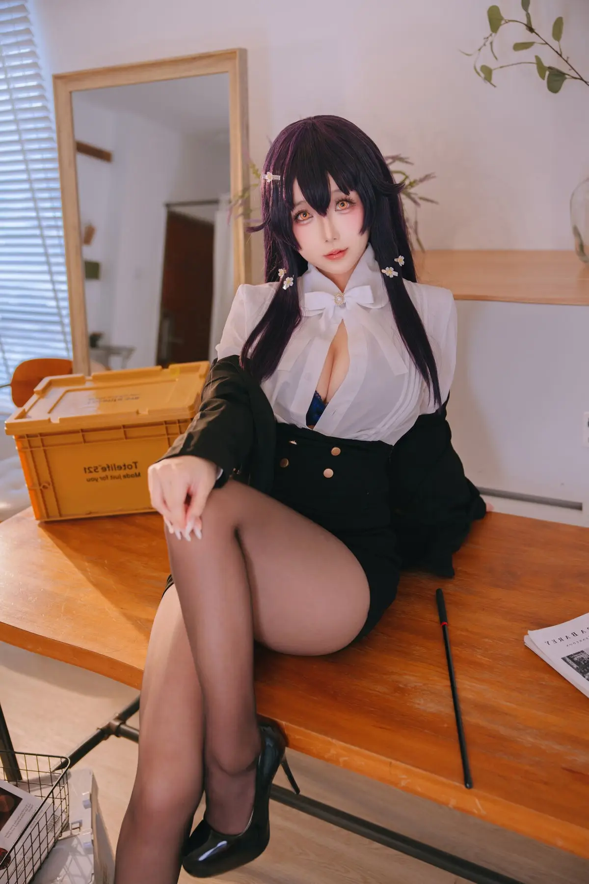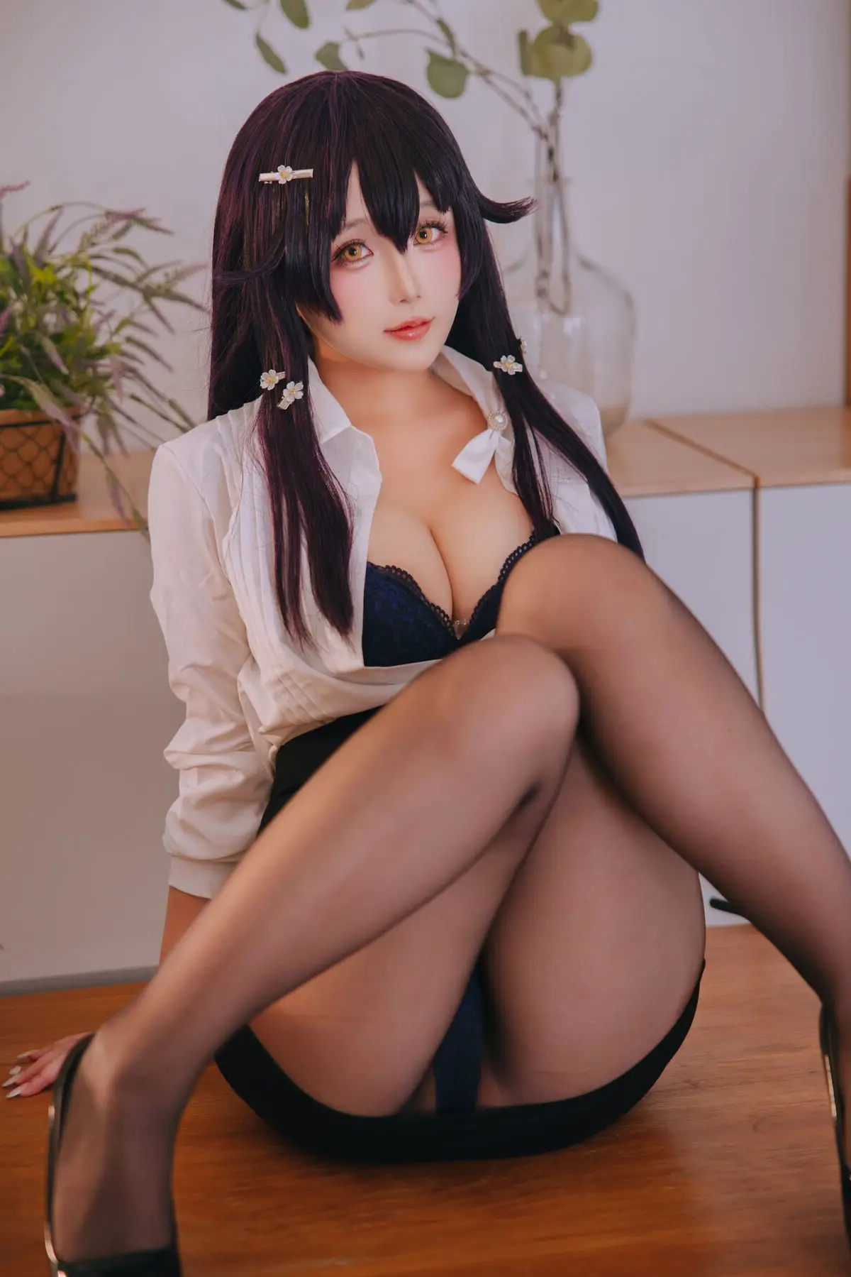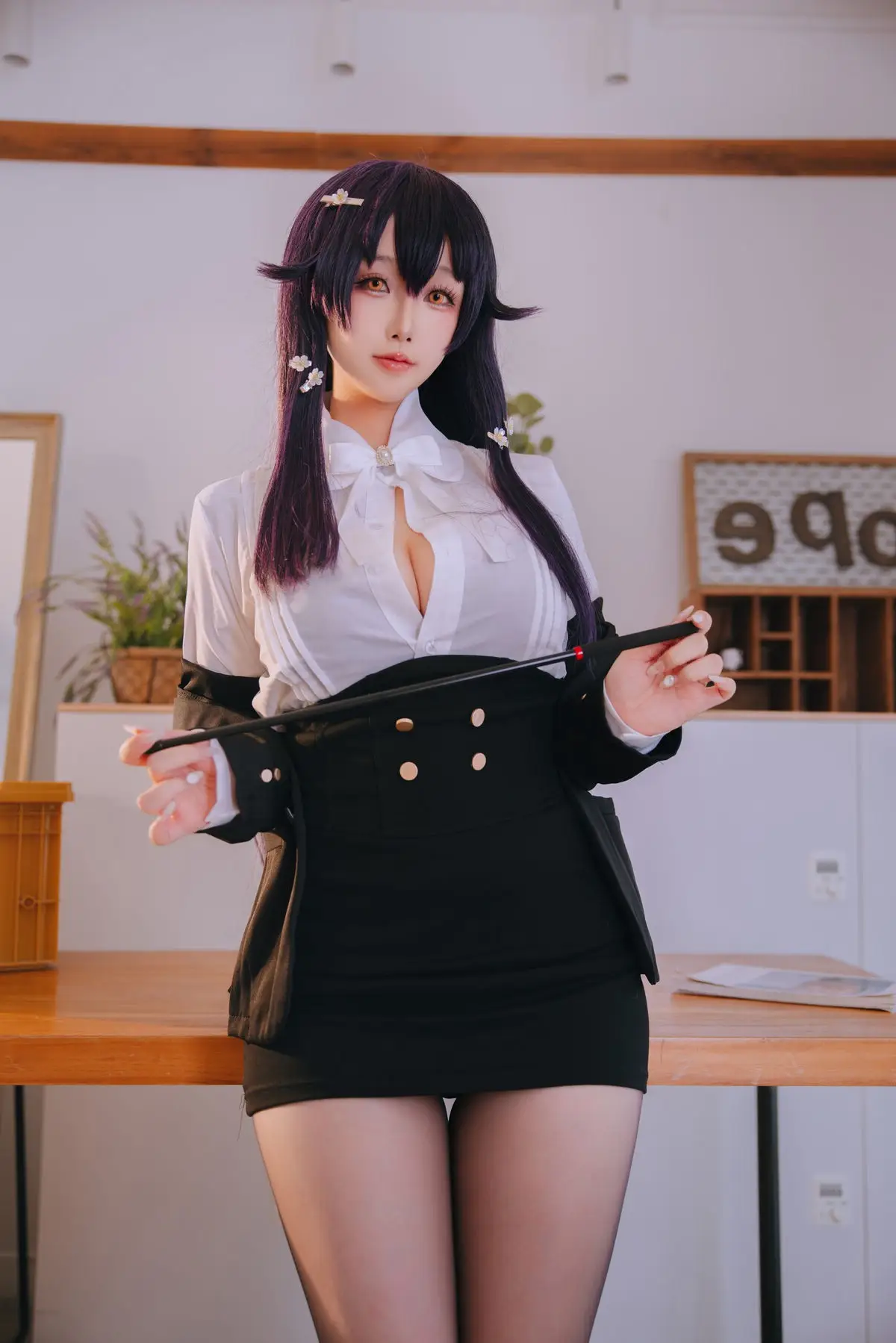 Immerse yourself in the captivating world of cosplay with Coser Hina Jiao in the 'My Wife's Guidance Class Part01' photo set. This image features Hina Jiao in elegant office attire, a pristine white shirt paired with a form-fitting black skirt, complemented by her signature purple hair and mesmerizing gaze. She appears to be preparing for a special guidance session, exuding a professional yet undeniably alluring aura. The simple yet cozy office backdrop further highlights Hina Jiao's confident and enigmatic presence. This is undoubtedly a 'class' that will keep viewers spellbound, where guidance comes not only from knowledge but also from the enchanting demeanor of the 'teacher'.#Coser #HinaJiao #CosplayGirl #MyWifesGuidanceClass #ElegantTeacher #OfficeCosplay