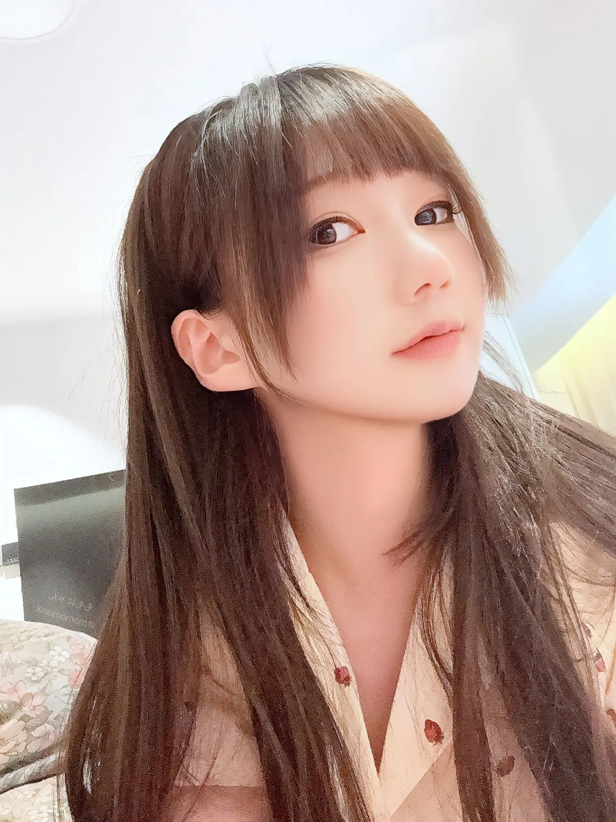 In this stunning Coser 蠢沫沫 Chunmomo Owari Part01 collection the model masterfully embodies the character with an alluring and mysterious aura. She gracefully reclines on a wooden floor adorned in an exquisitely detailed costume from the white corset top to the seductive fishnet stockings and unique hair accessories. The distinctly East Asian setting featuring shoji screens further enhances Chunmomo's elegant and captivating beauty. Every gesture and gaze reflects her professionalism and passion for character transformation.#Coser #Chunmomo #ChunmomoOwari #CosplayGirl #AsianCosplay #OwariCosplay