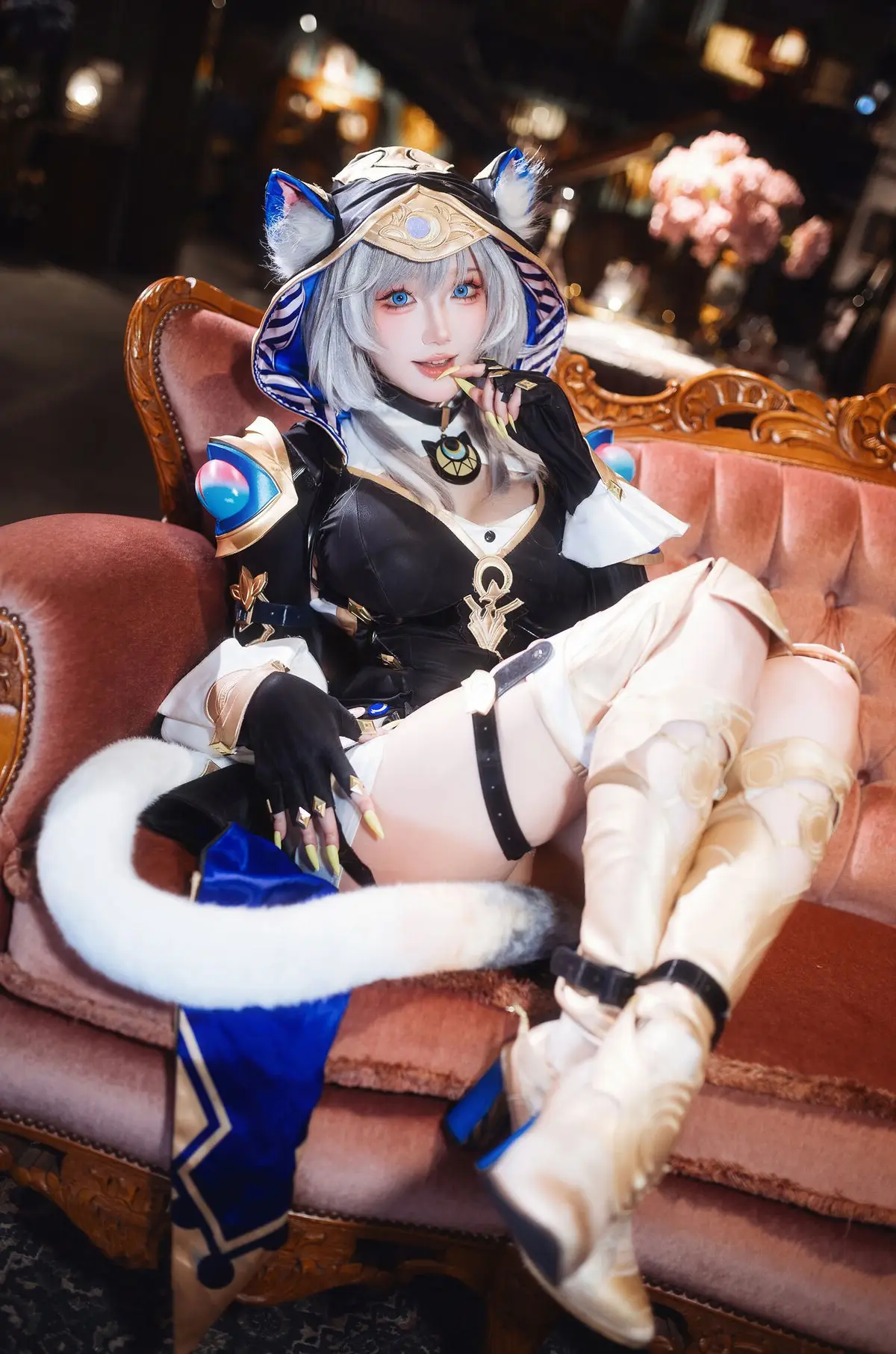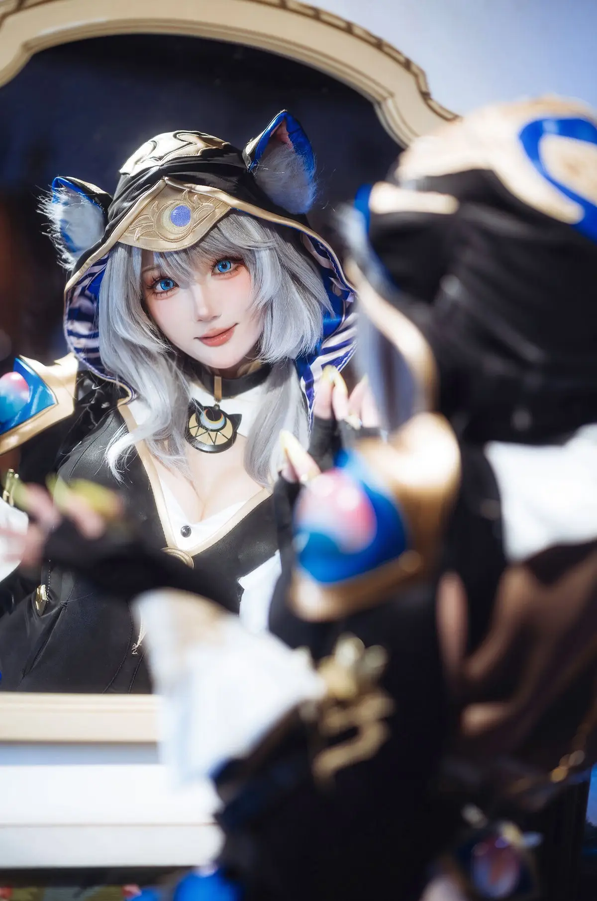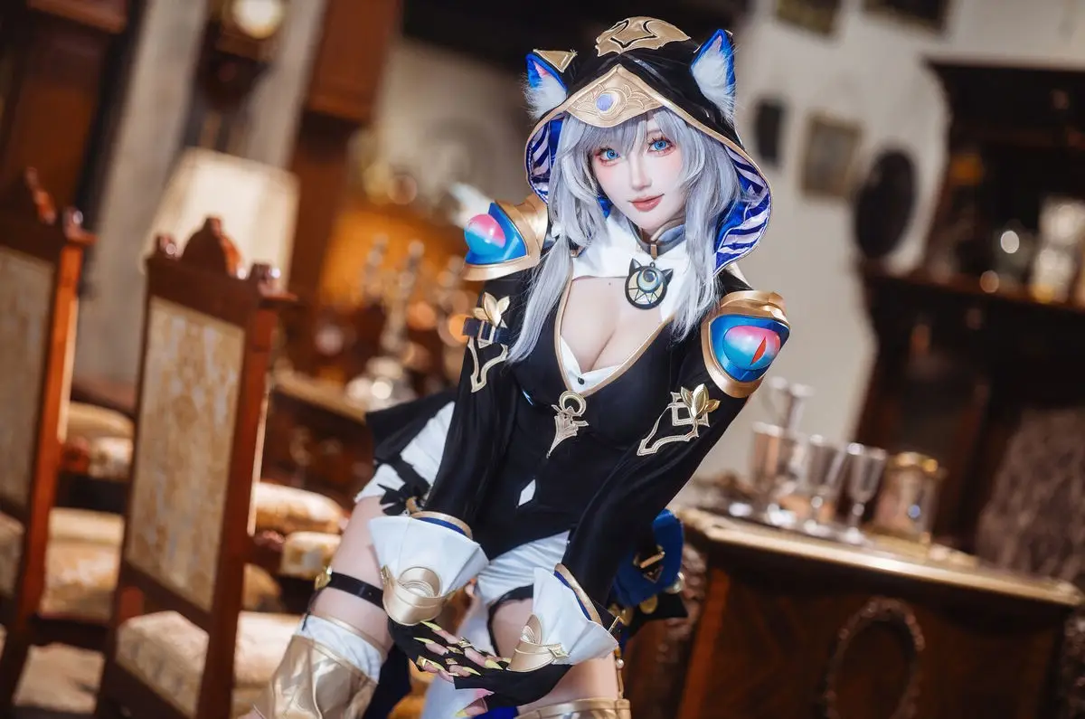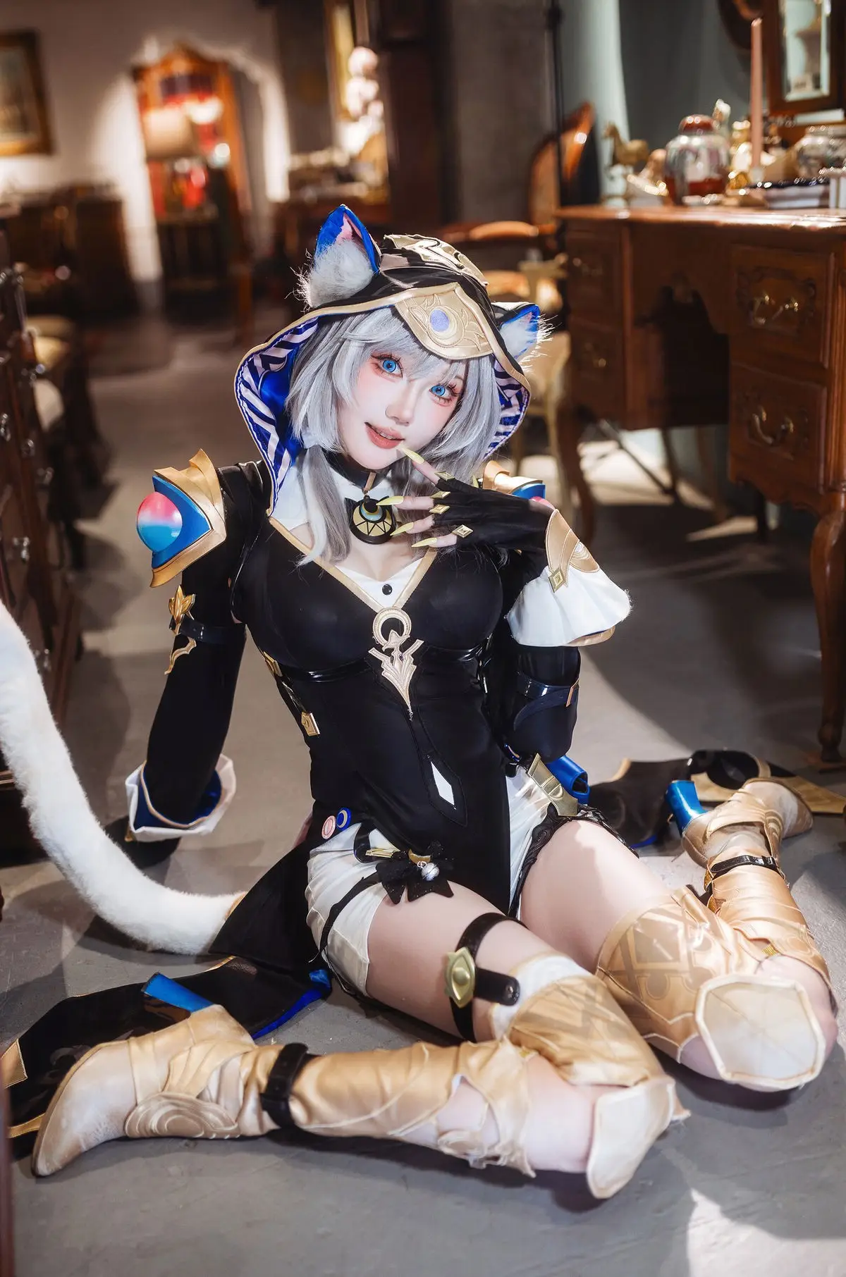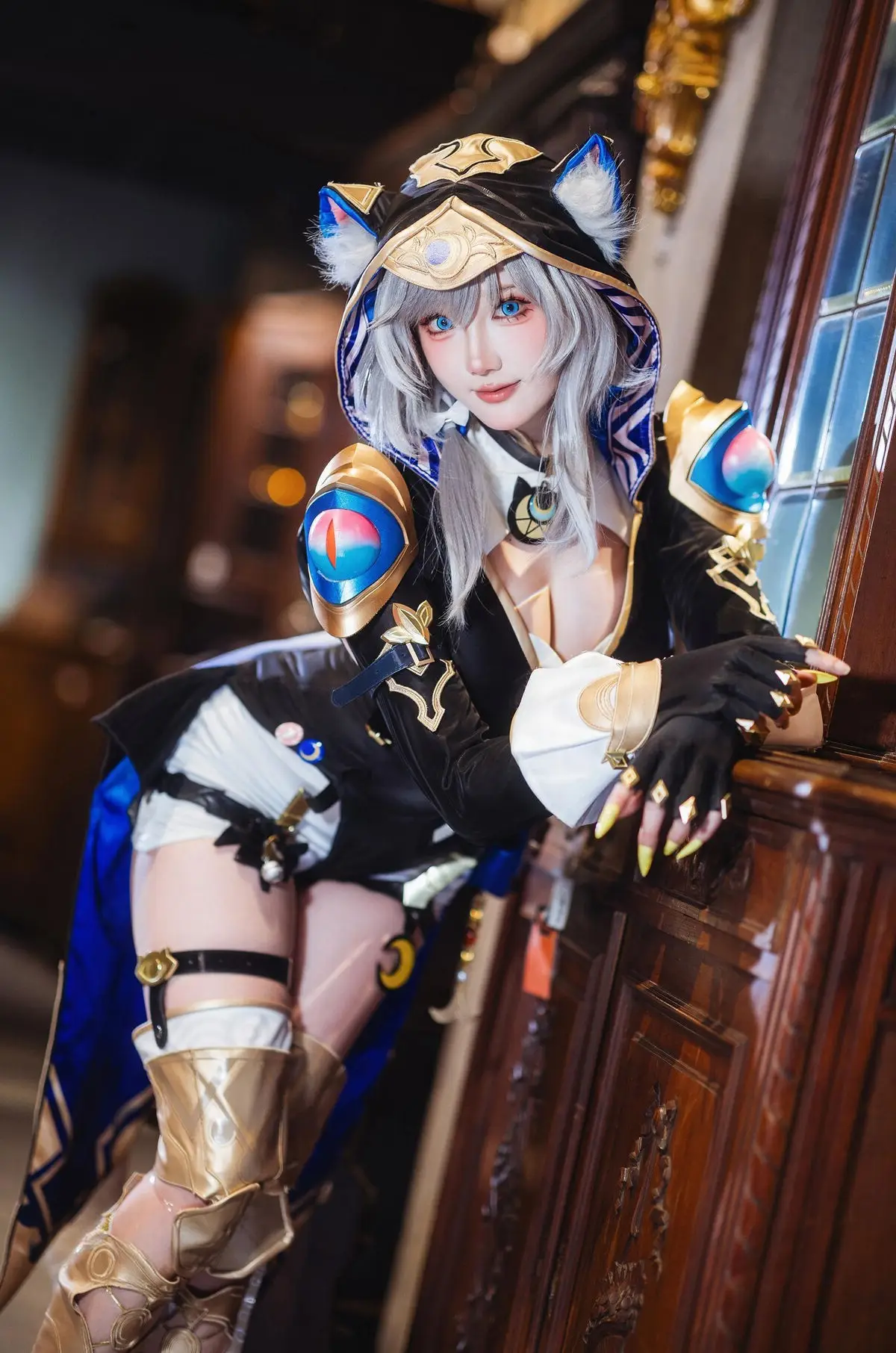 Coser Guaxi Jiang delivers a truly impressive transformation into the captivating universe of Honkai Star Rail. Adorned in a magnificent black and gold ensemble, elegantly complemented by striking blue accents, she masterfully brings to life a beloved character from this acclaimed game. Her platinum blonde hair and adorable cat ears create an aesthetic that is both mysterious and alluring. Every gesture and gaze from Guaxi Jiang exudes confidence and captivating charisma, showcasing meticulous attention to detail in her cosplay. This photo set is sure to mesmerize fans, inviting them to explore the unique beauty and charm of the Honkai Star Rail universe through an artistic lens.#Honkai #StarRail #Cosplay #GuaxiJiangCosplay #AstaCosplay #GameCosplay #CosplayGirl