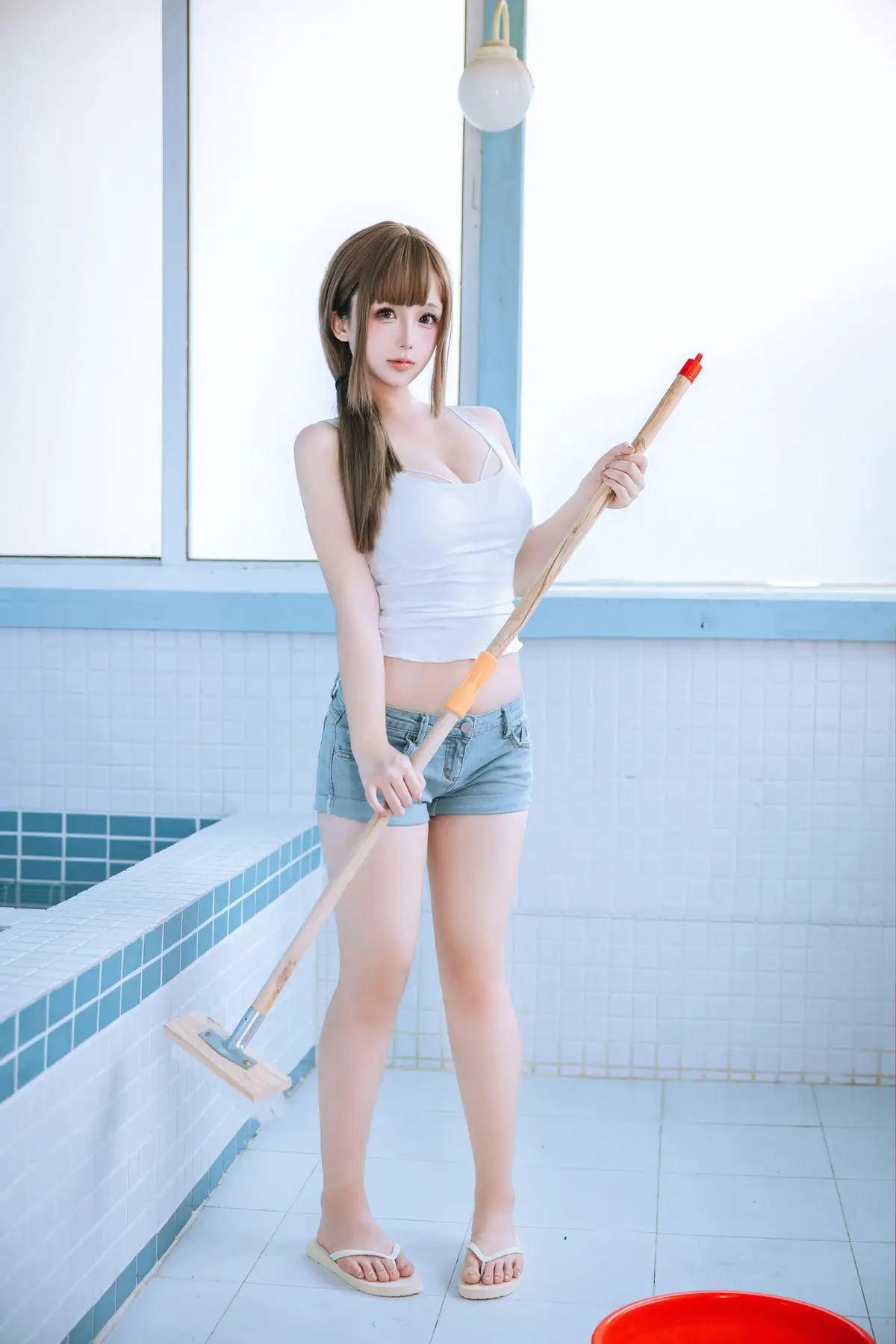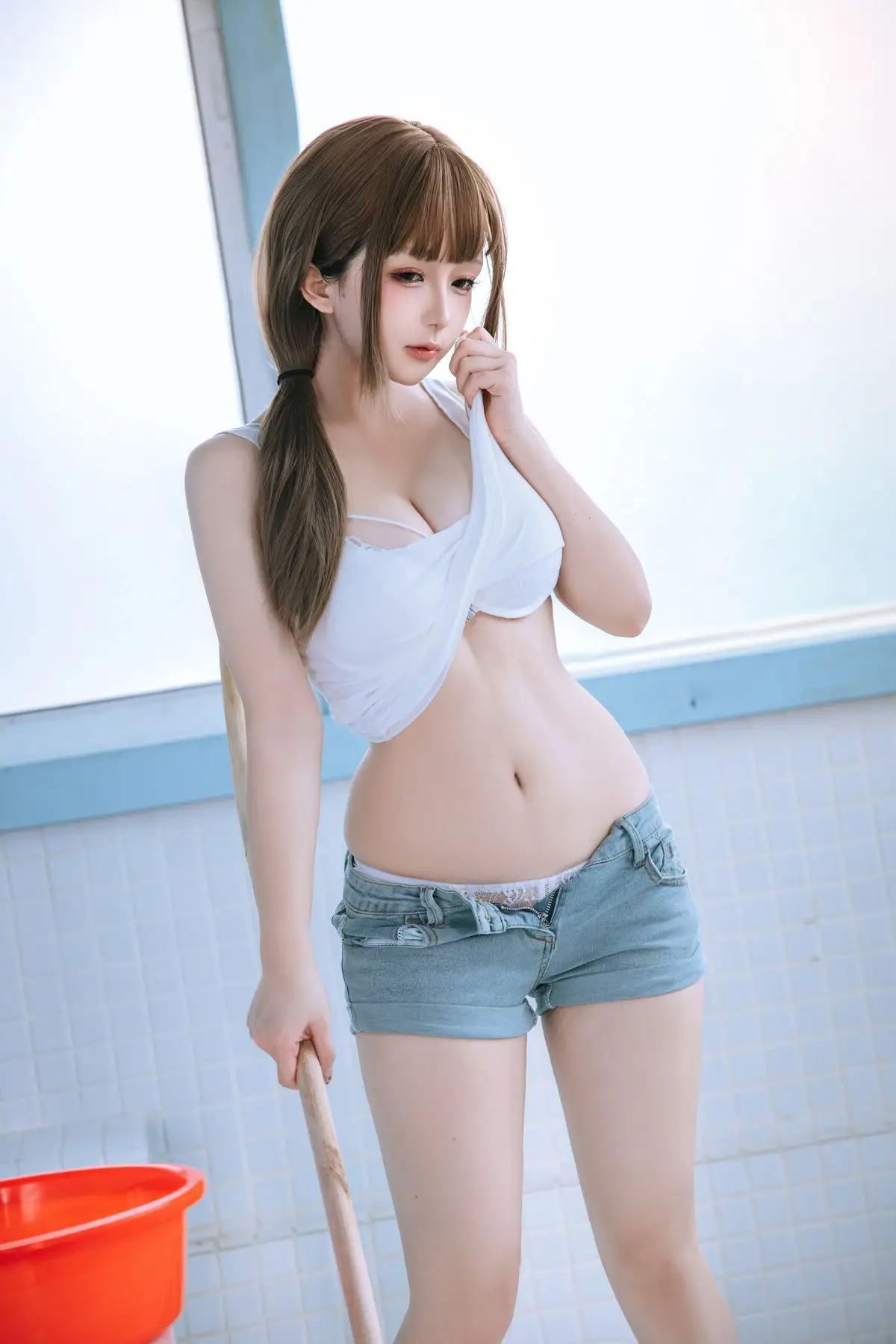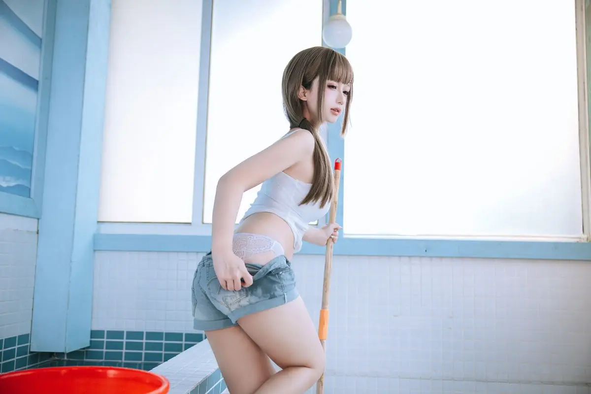 Step into the captivating world of Coser Ri Nai Jiao as she transforms into a charming male bathroom cleaner in Part02 of this stunning photo series. In this picture Ri Nai Jiao radiates freshness and vibrant energy. Her simple yet elegant outfit featuring a tank top and denim shorts gracefully highlights her slender figure. Holding a cleaning tool Ri Nai Jiao embodies the professional demeanor of a maintenance worker. The brightly lit bathroom setting with natural sunlight accentuates the pristine cleanliness of the space. Her gentle smile and captivating gaze are sure to enthrall viewers. This photo collection not only showcases creative cosplay but also offers a refreshing perspective on the intriguing role of a cleaner. Discover the unique moments of Coser Ri Nai Jiao in this special portrayal.#Coser #RiNaiJiao #BathroomCleanerCosplay #CosplayGirl #RiNaiJiao #UniqueCosplay