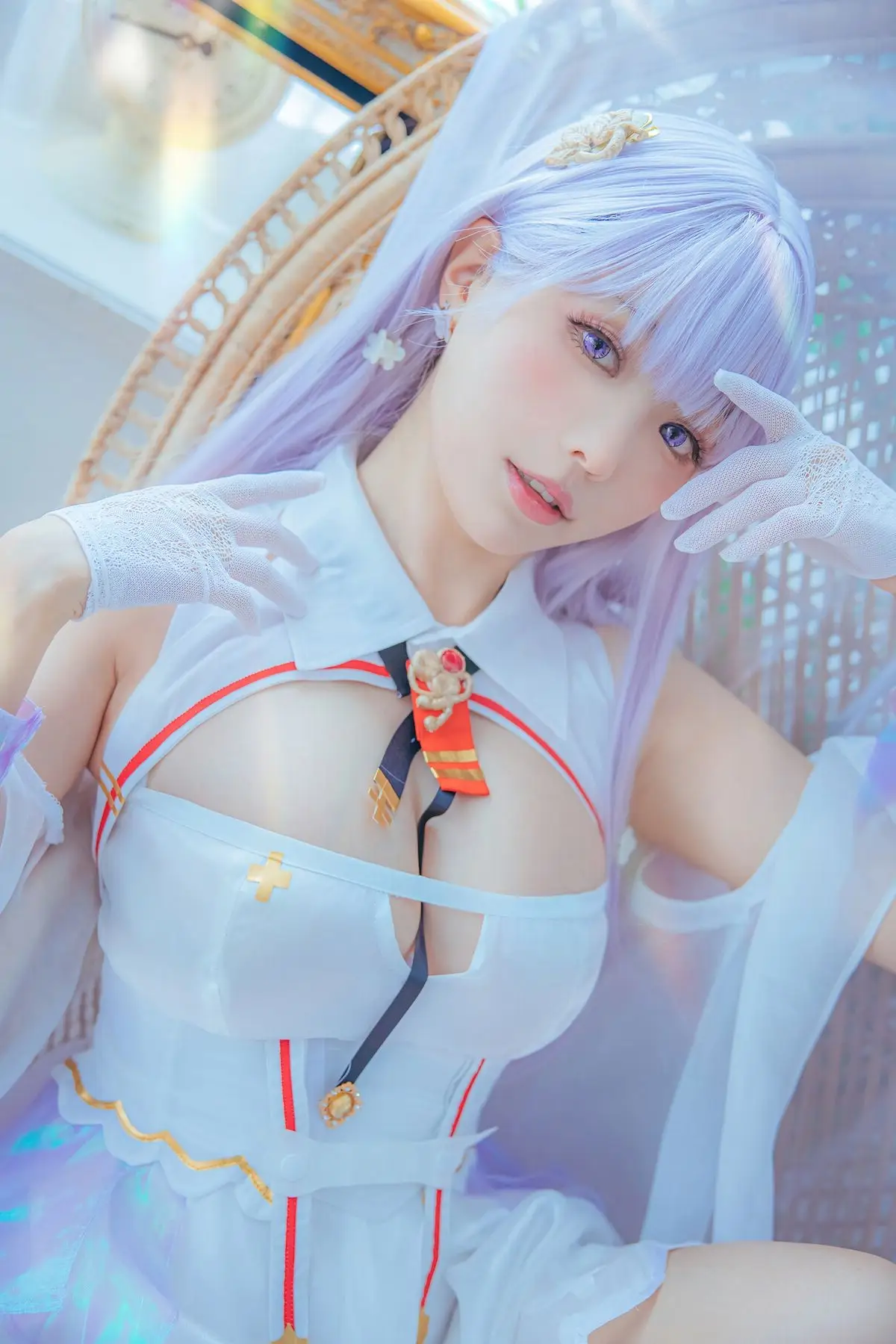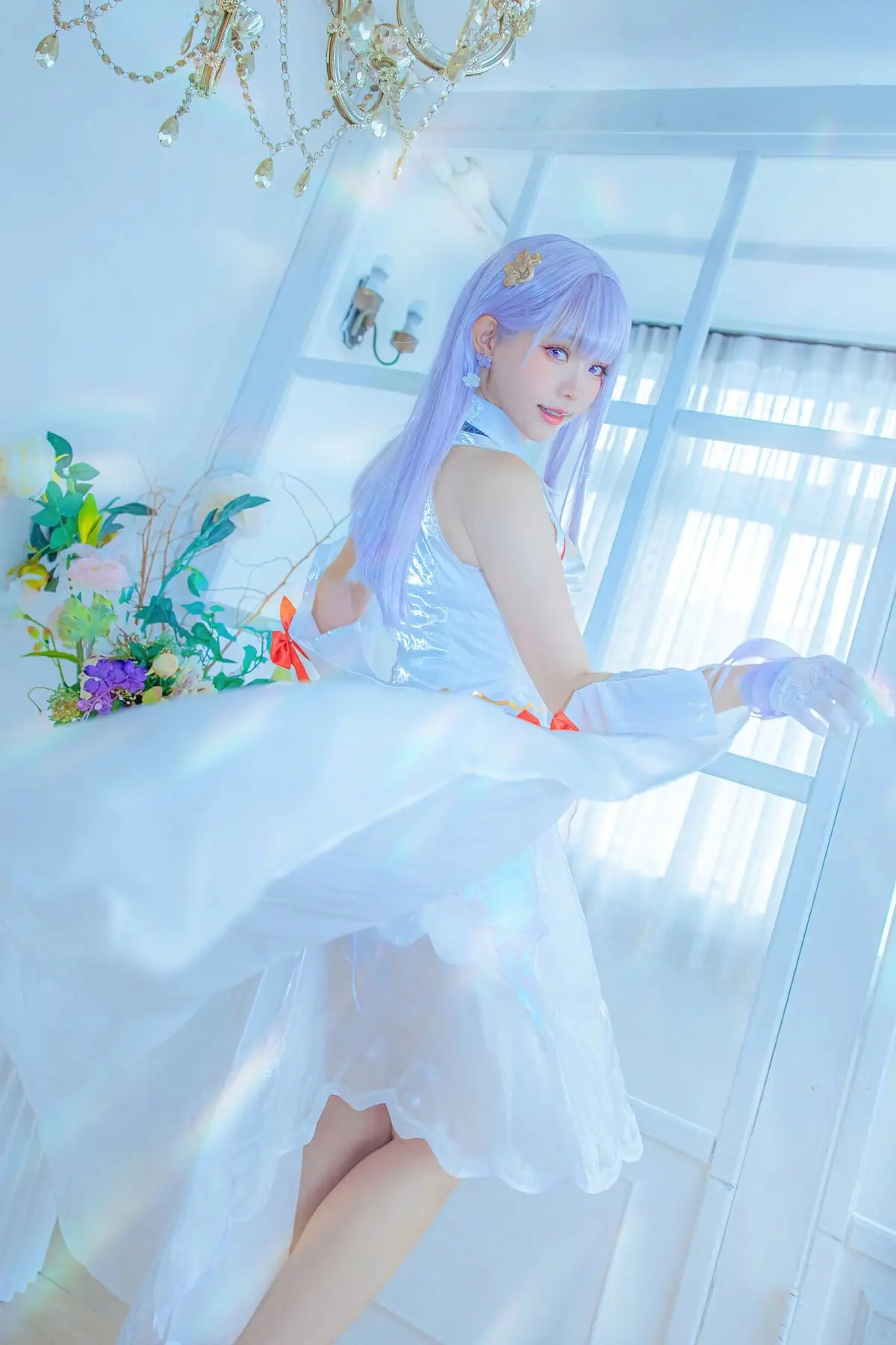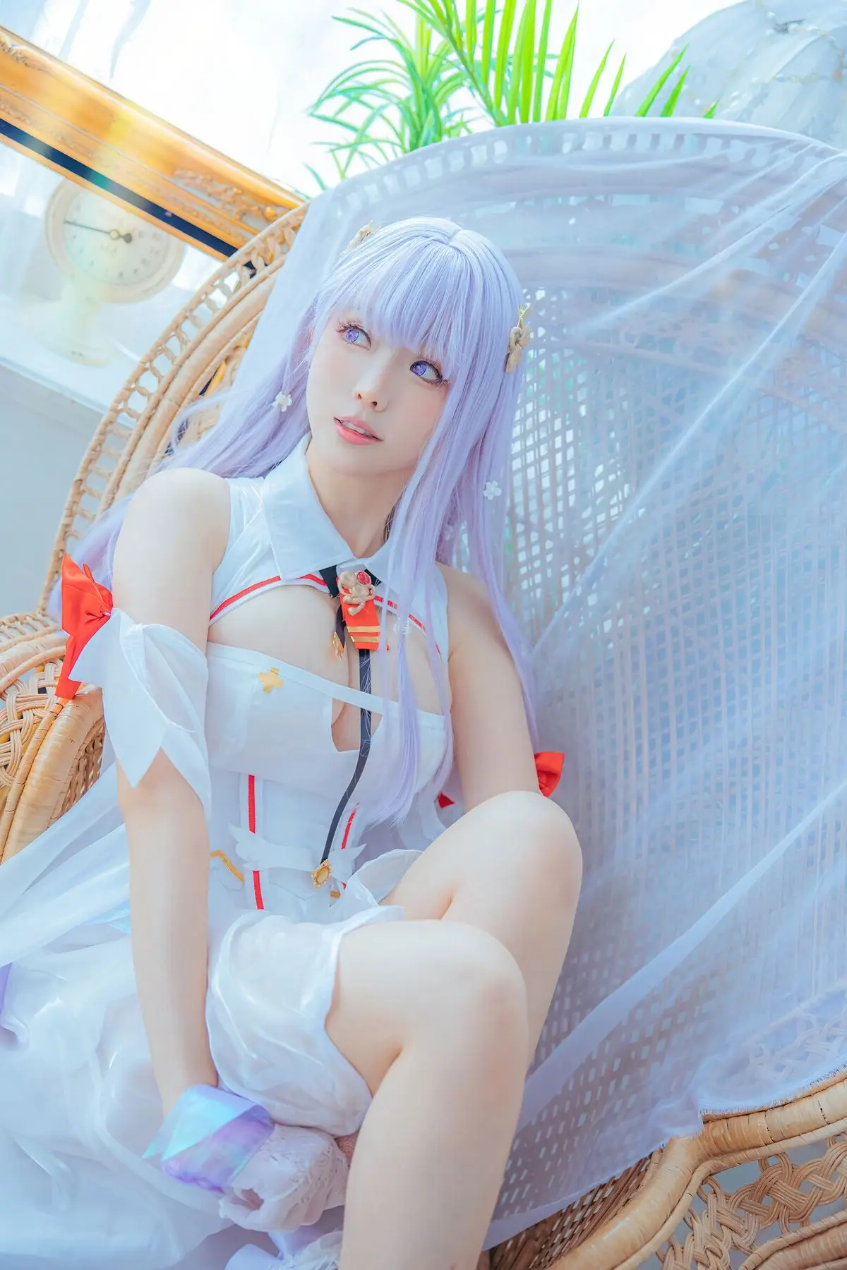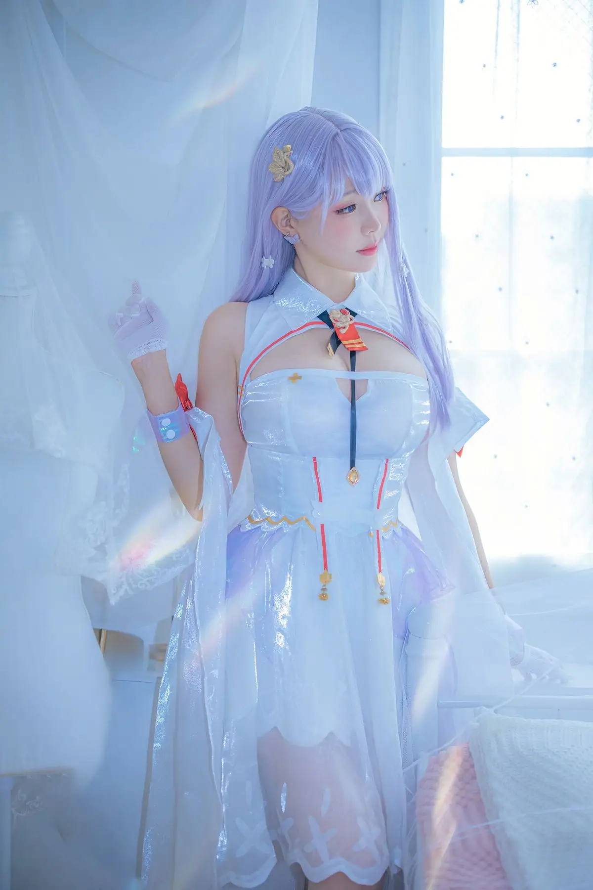 Immerse yourself in a dreamlike world with Coser Ely_eee in her stunning Plymouth photoshoot. Dressed in a pristine white gown adorned with delicate purple accents, Ely_eee transforms into an enchanting character, exuding an elegant and refined beauty. Her flowing purple hair and captivating gaze enhance the mystical aura. The meticulously designed studio backdrop, with its soft lighting, white curtains, and romantic floral arrangements, creates a fairy-tale setting where Ely_eee's beauty is perfectly showcased. Every gesture and pose radiates grace and fluidity, as if she were a muse stepping out of a classic fairy tale. This Plymouth collection promises to captivate all eyes, offering an impressive visual experience of the harmonious blend between cosplay art and photography.#CoserElyeee #ElyEE #PlymouthCosplay #EtherealBeauty #CosplayGirl