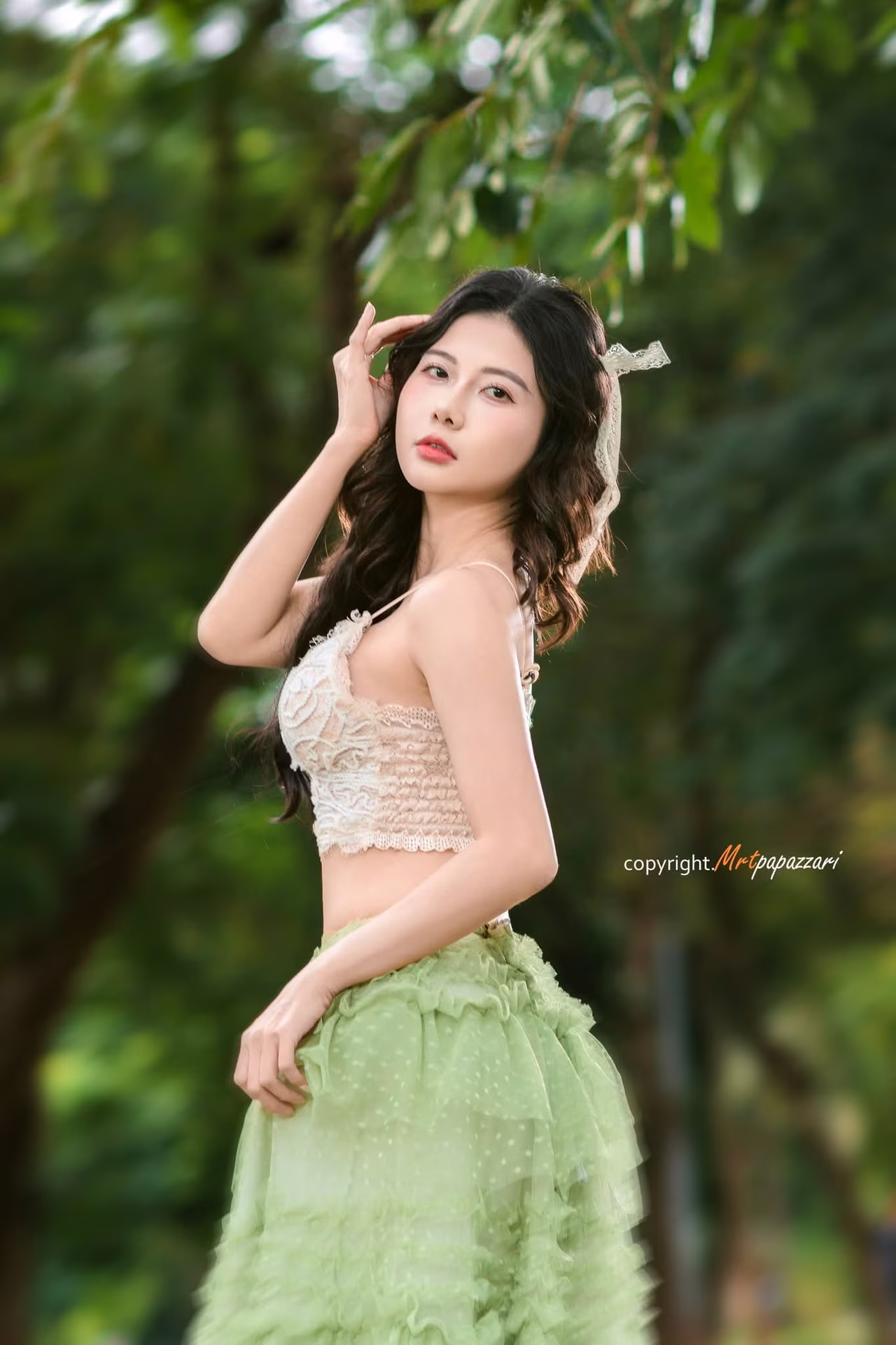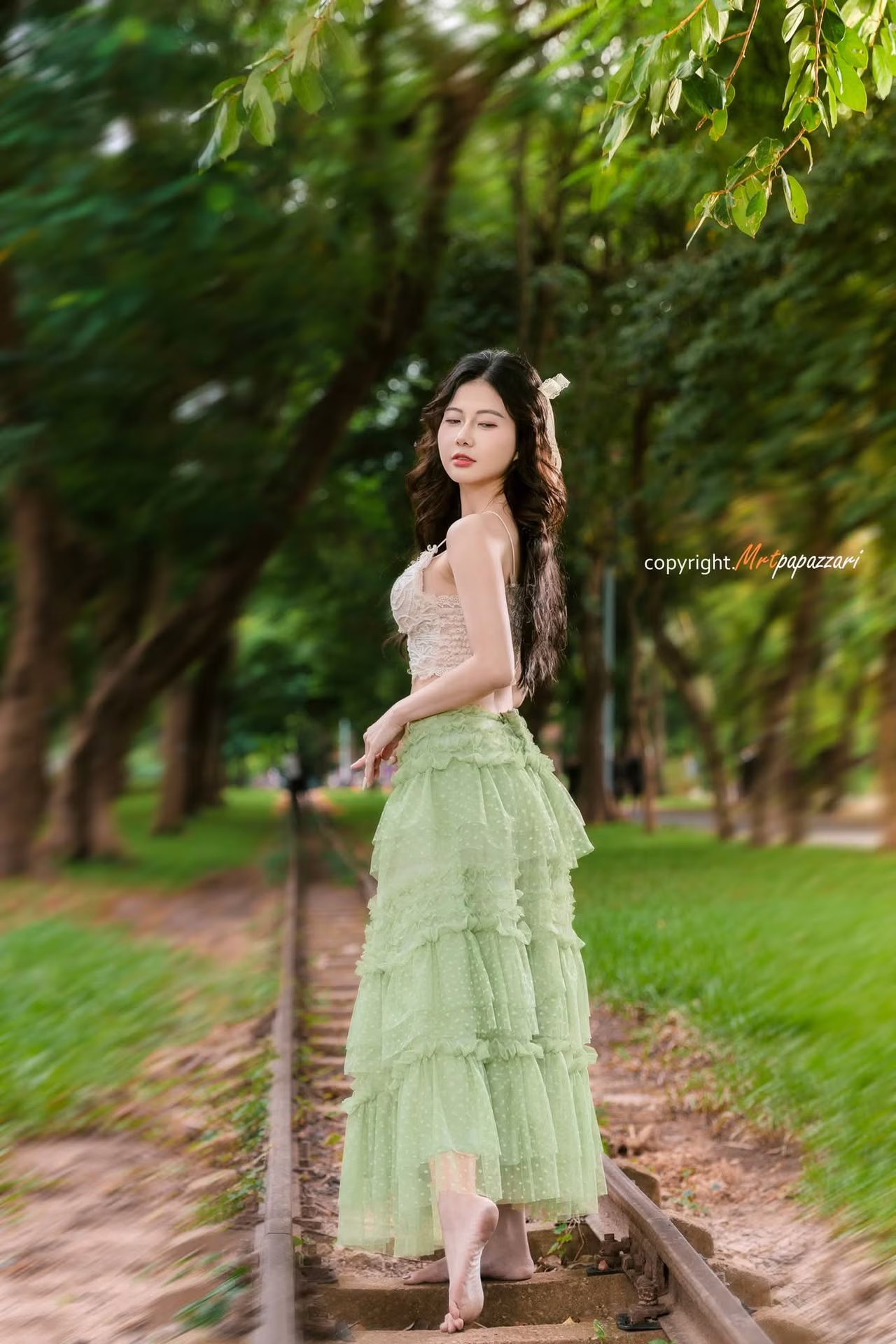 The VGU No75 image captures two youthful and beautiful women exuding captivating grace. They are adorned in elegant fashion attire featuring soft pastel hues of pink and white. Their pleated mini skirts paired with delicate long-sleeved tops create a sweet feminine style perfectly suited for bright summer days. Each woman possesses her own unique charm yet together they form a harmonious and attractive ensemble. This photograph not only showcases a refined aesthetic in clothing choices but also evokes a sense of freshness and vibrant youthful energy. It serves as wonderful inspiration for enthusiasts of feminine and elegant fashion. #Vietnamese #pretty #charmVGU No.74: Vietnamese Dreamy Beauty in a Serene Green Landscape
