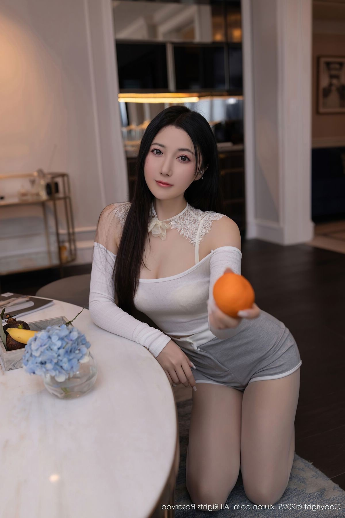 In this stunning XiuRen No10261 photoshoot model Yu Zi Jiang Fish exudes an ethereal and captivating beauty She is gracefully adorned in a pristine white off shoulder top paired with stylish grey shorts creating a harmonious blend of elegance and youthful energy The image beautifully captures Yu Zi Jiang Fish kneeling delicately holding a vibrant orange fruit her gaze direct and alluring The modern indoor setting complemented by a subtle blue floral arrangement further enhances her natural charm and sophisticated appeal Her poised demeanor and confident expression make this a truly enchanting visual experience This collection showcases Yu Zi Jiang Fishs unique allure delivering a memorable and artistic portrayal that is both graceful and mesmerizing