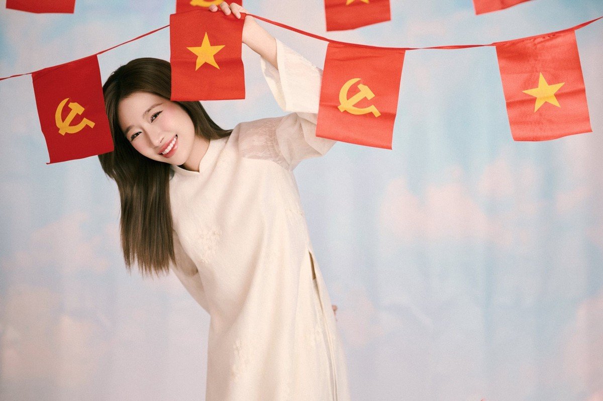In her latest photo series Hot girl World Cup Linh Kul captivates with her gentle and elegant beauty donning the traditional white Ao Dai She skillfully conveys the meaningful message of beautiful peace through her radiant image alongside the sacred red and yellow star flag This picture not only honors the graceful charm of Vietnamese women in Ao Dai but also expresses deep love and national pride for the country With a sunny smile and clear eyes Linh Kul subtly communicates patriotism and the aspiration for a peaceful and prosperous Vietnam This serves as a meaningful gift ahead of National Day September 2nd reminding everyone of the values of peace independence and the beauty of national culture