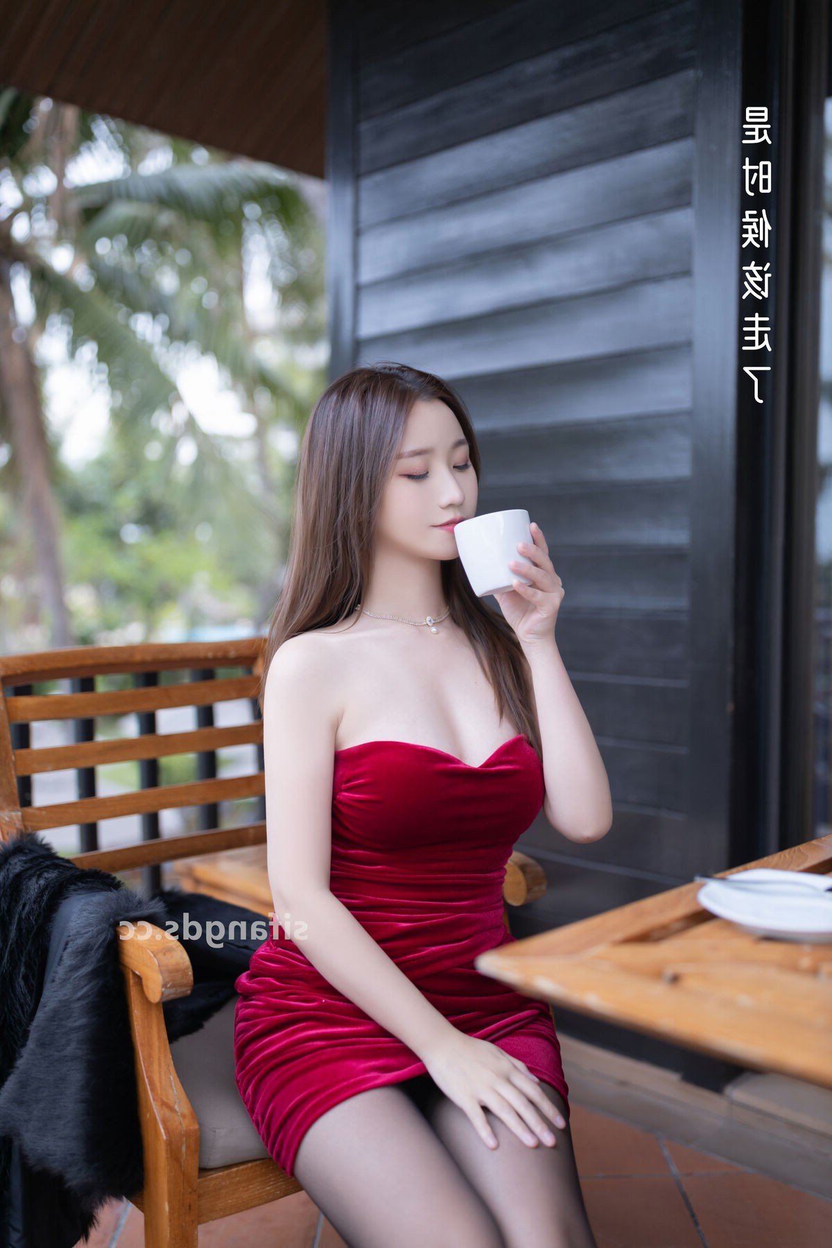 This stunning image showcases XiuRen model Kyoko Yada 杏子Yada in a captivating moment She gracefully sits at an outdoor wooden table adorned in a striking strapless red dress that highlights her elegant and alluring charm Kyoko Yada's gaze directly meets the camera conveying confidence and magnetism The natural outdoor lighting beautifully illuminates her smooth skin and lustrous hair A cup of coffee and some fruits on the table create a relaxed and inviting backdrop The delicate Asian beauty of Kyoko Yada is evident in every detail from her refined facial features to her captivating aura This is an impressive photograph celebrating the style and grace of the XiuRen model evoking a sense of peaceful and vibrant morning The image is not merely a snapshot but an artistic expression of beauty
