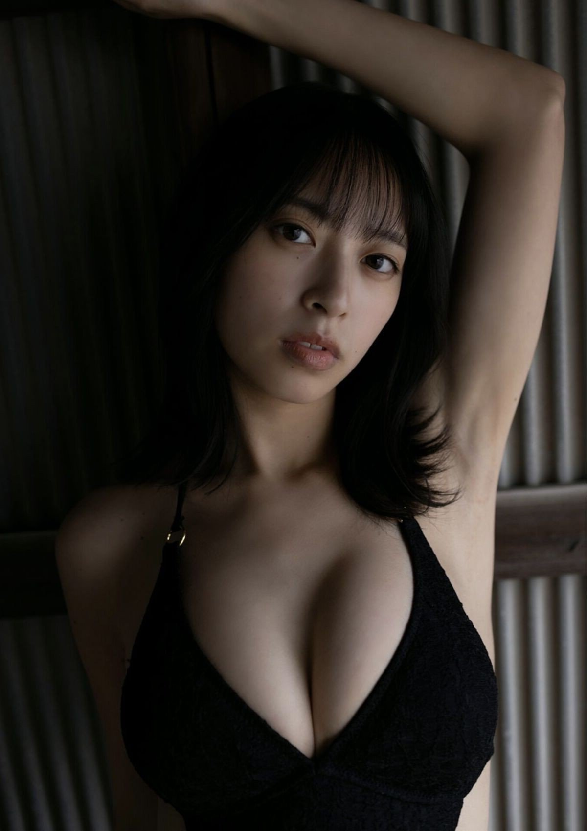 This portrait captures a youthful girl with sleek, short black hair, prominently featuring a neatly trimmed blunt fringe. This blunt bangs style frames her forehead, accentuating her delicate face and large, round eyes, creating a look that is both innocent and captivating. Combined with a modern bob haircut, these short blunt bangs exude a dynamic, youthful, and highly individualistic charm. It's an excellent choice for those who love innovation and wish to express confidence and uniqueness through their hairstyle. This image showcases the undeniable appeal of blunt bangs, especially when paired with short hair, offering a fresh and adorable appearance that aligns with current hair fashion trends. This blunt fringe style not only makes you look younger but also serves as a distinctive highlight for your personal style.