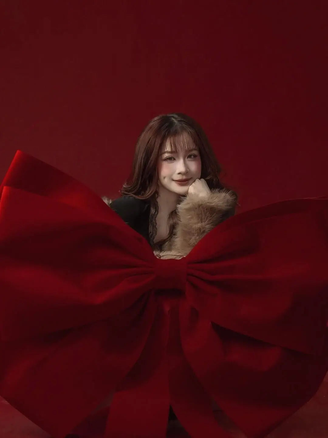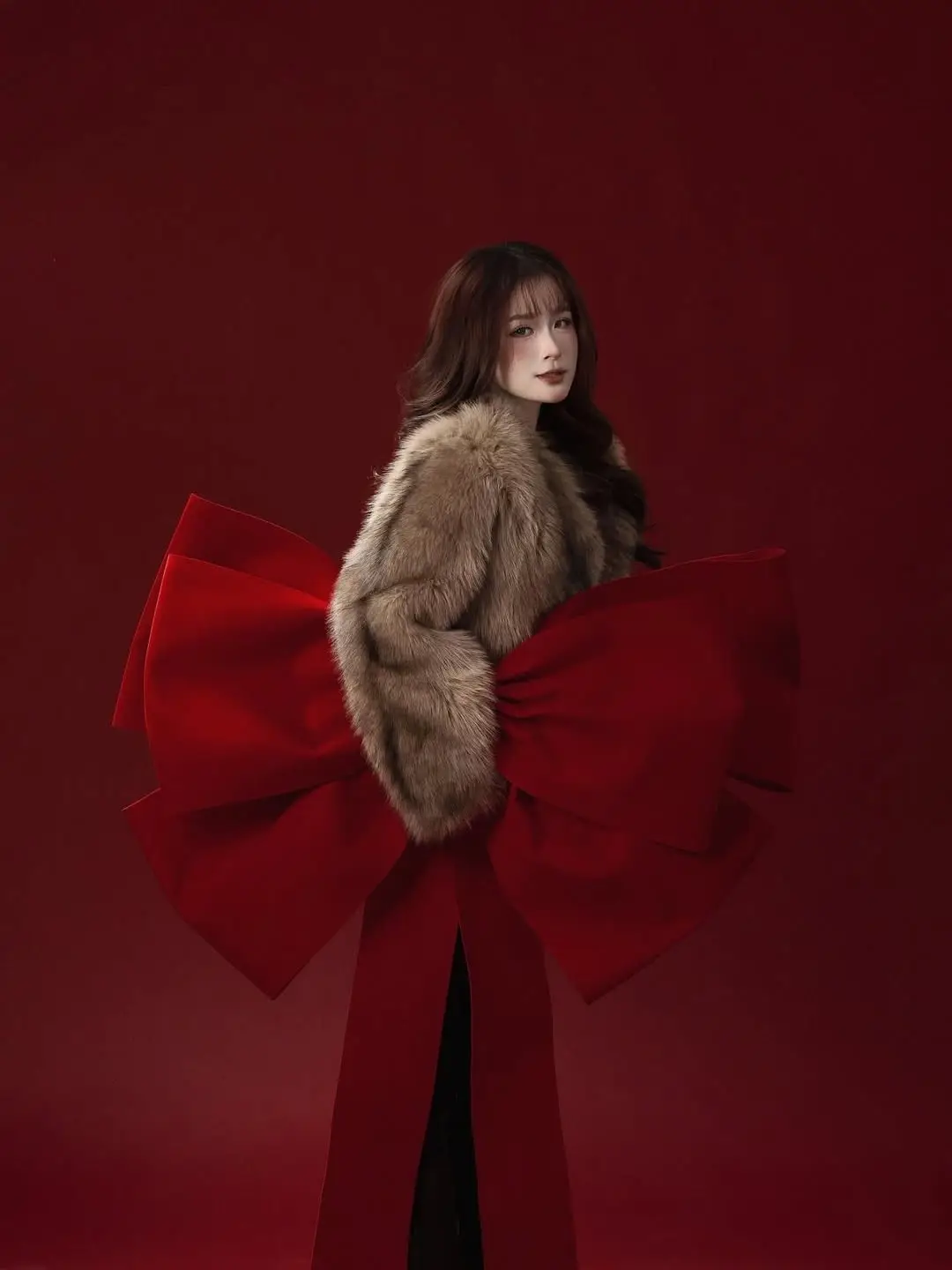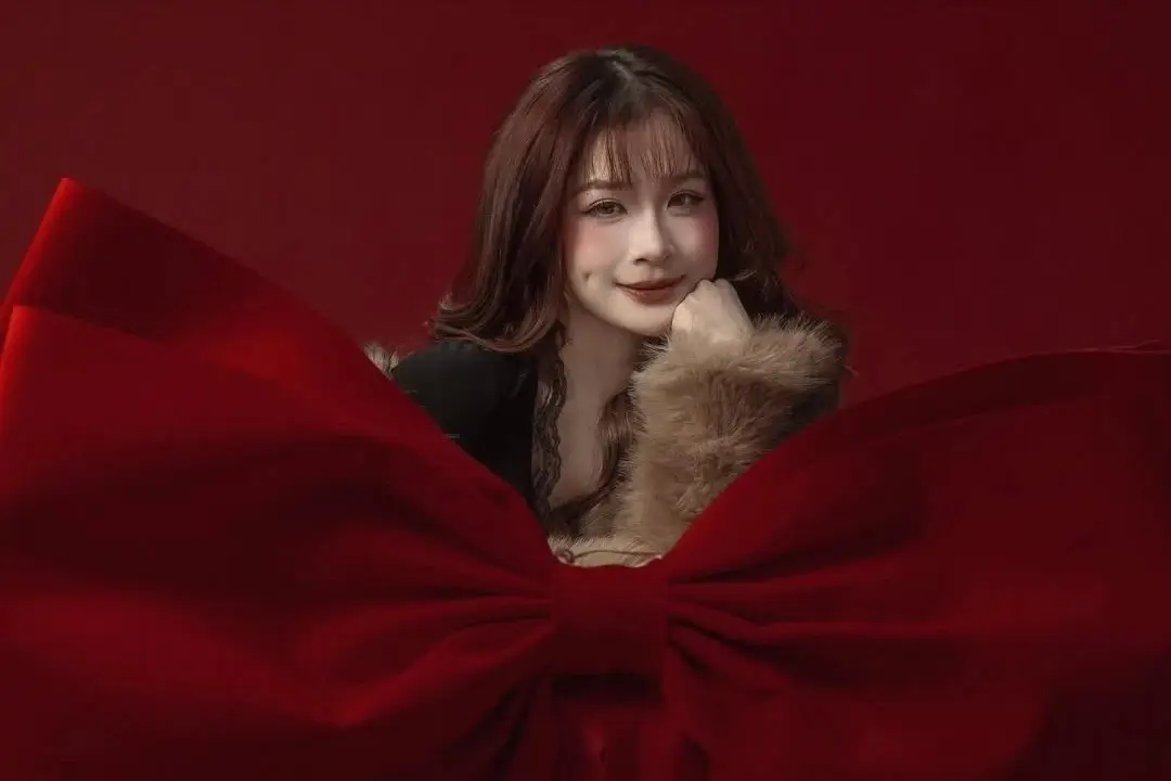 Rich kid Chao once again asserts her beauty and class through a series of striking close-up photos. Against a vibrant red background symbolizing power and luxury, Chao appears with a sweet yet equally captivating beauty. Her delicate face, sparkling eyes, and gentle smile create an irresistible allure. The soft, warm fur coat is not only a fashion highlight but also enhances her noble demeanor. Every detail, from her wavy hair to her delicate makeup, contributes to a harmonious and sophisticated overall look, leaving fans in awe and admiration.#RichKidChao #ChaoBeauty #CloseUpPortrait #LuxuryFashion #ElegantStyle