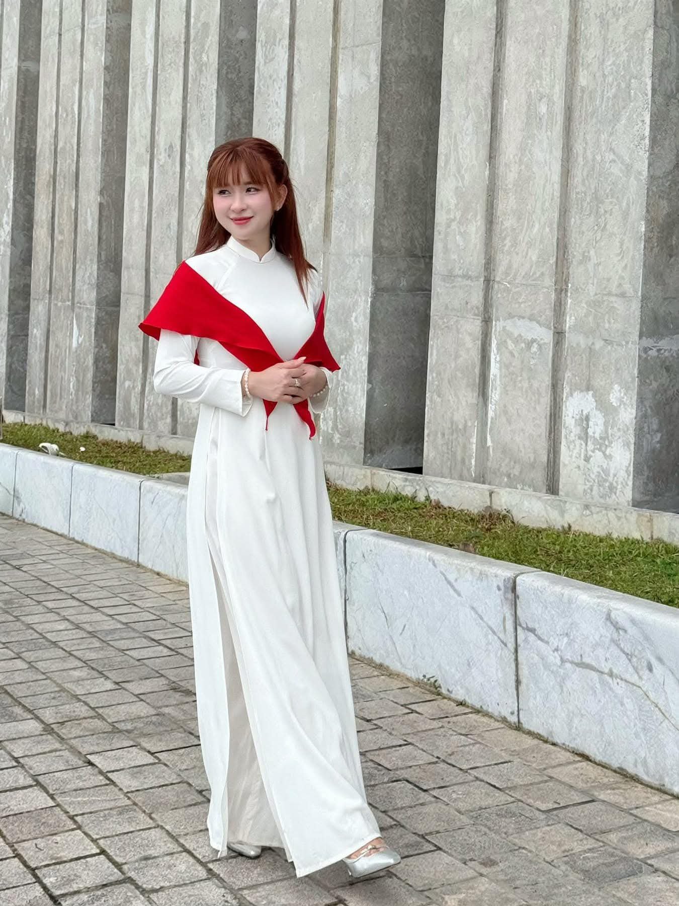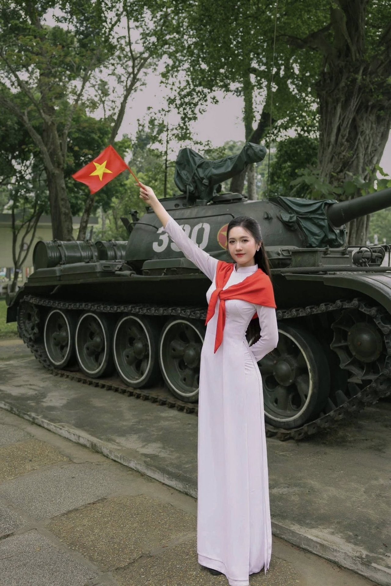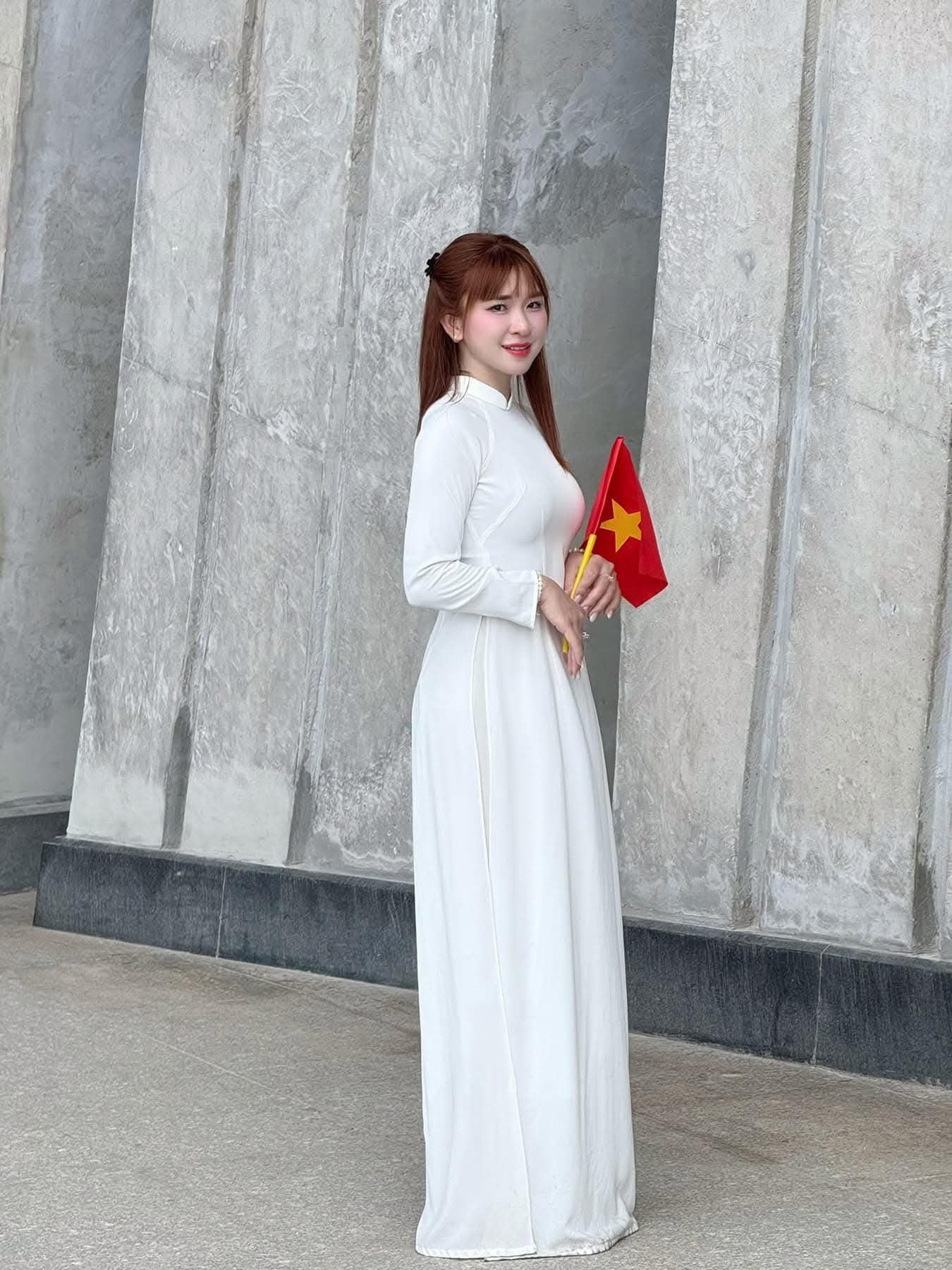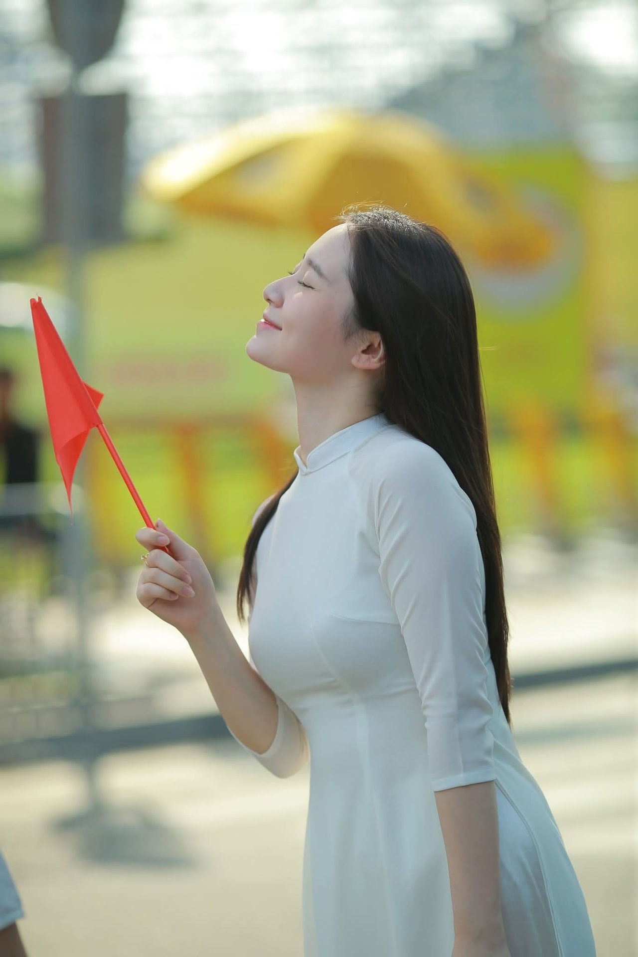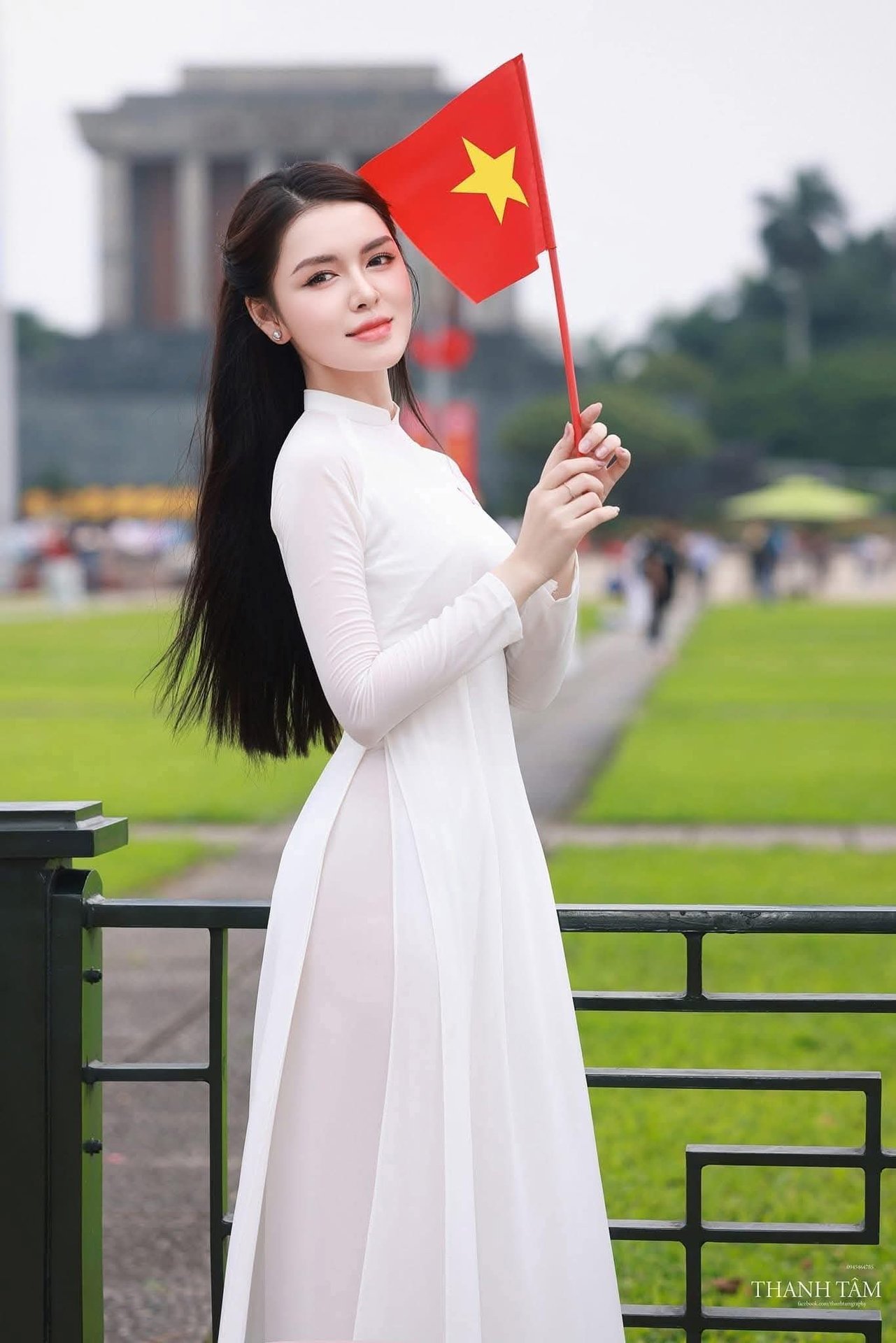 Nét đẹp dịu dàng với áo dài trắng trong không khí đại lễ của toàn dân tộc, em đẹp như mùa thu Hà Nội