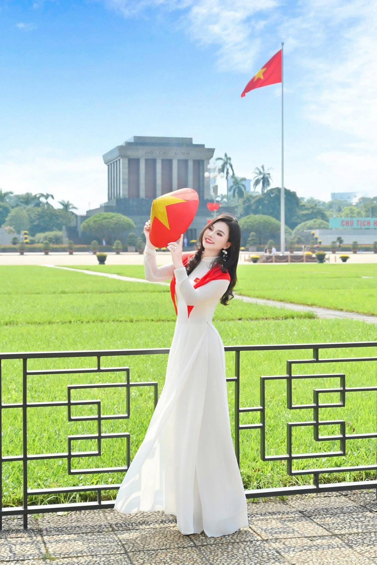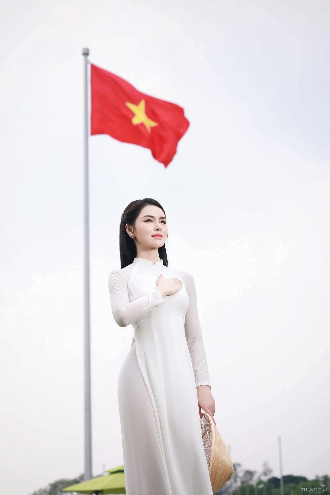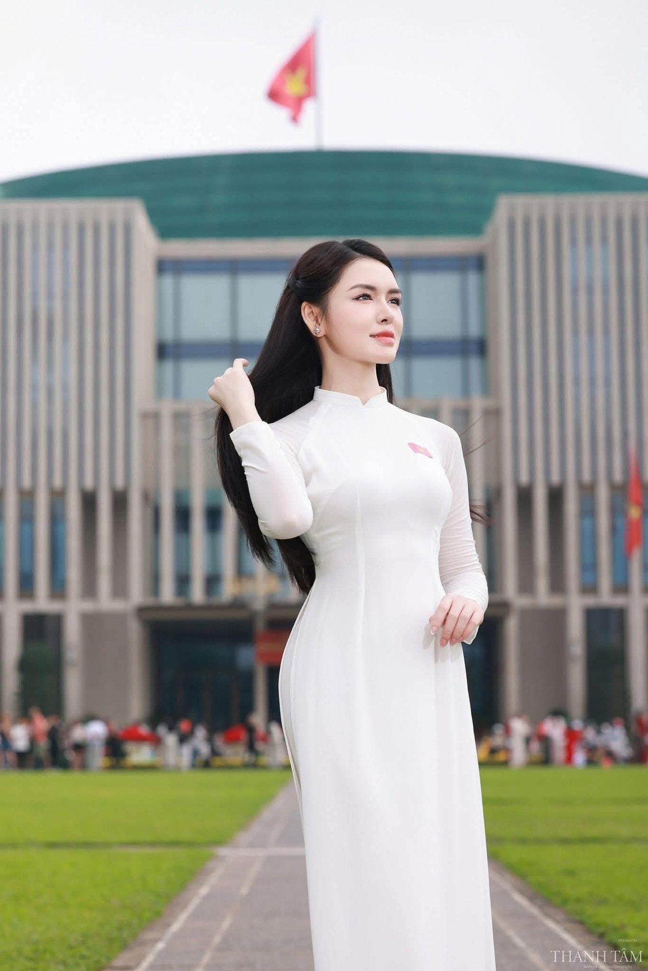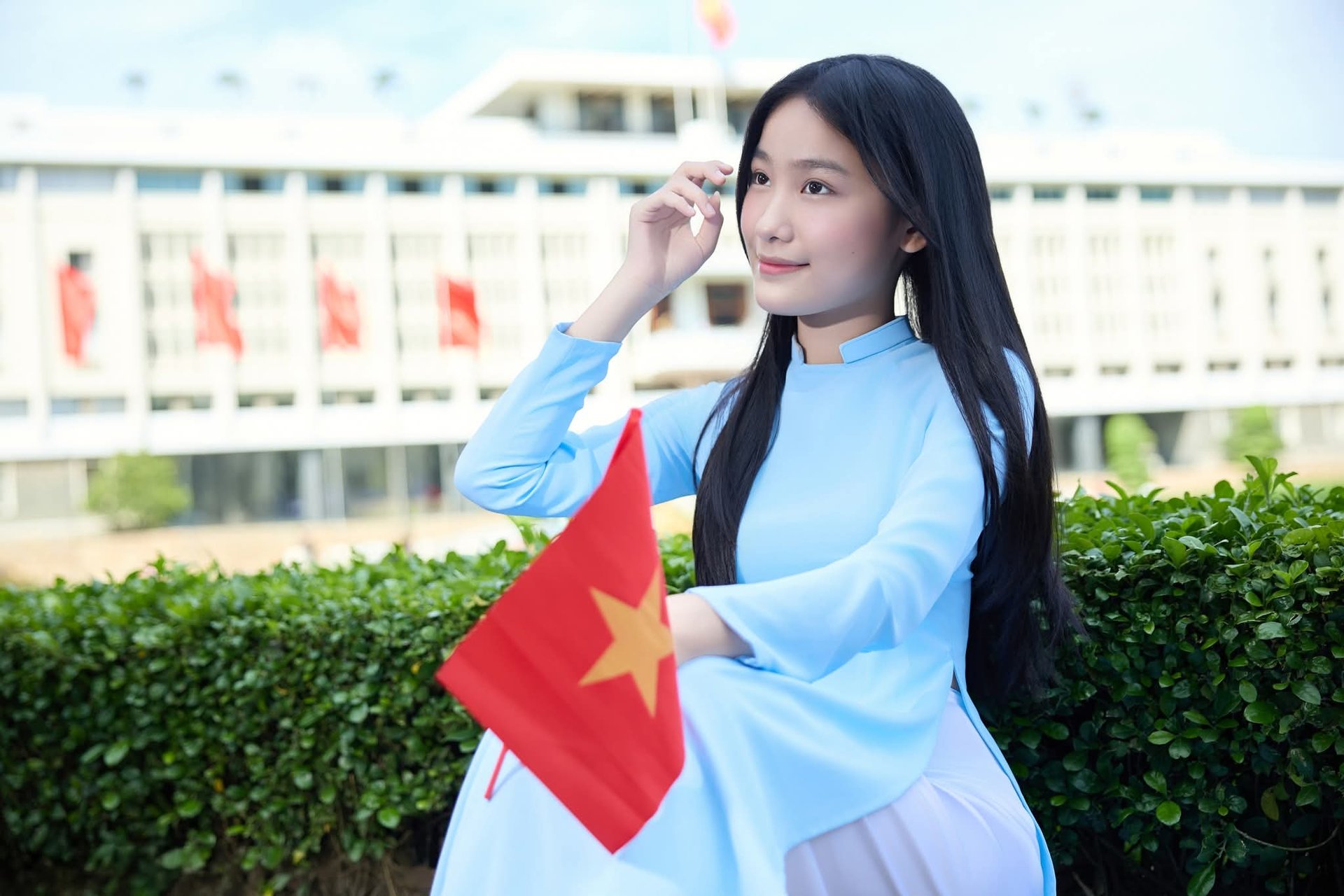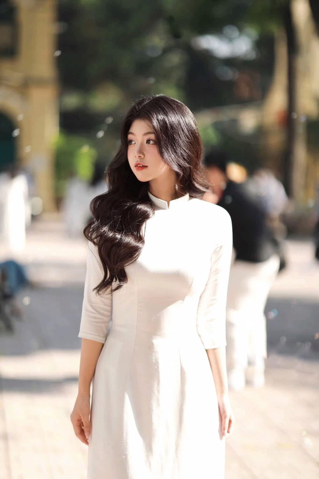 Nét đẹp dịu dàng với áo dài trắng trong không khí đại lễ của toàn dân tộc, em đẹp như mùa thu Hà Nội
